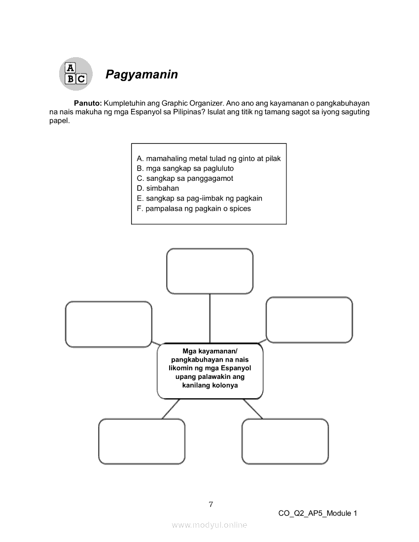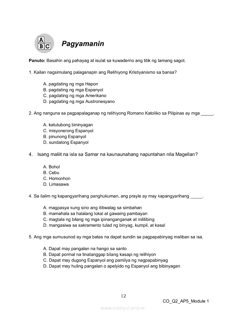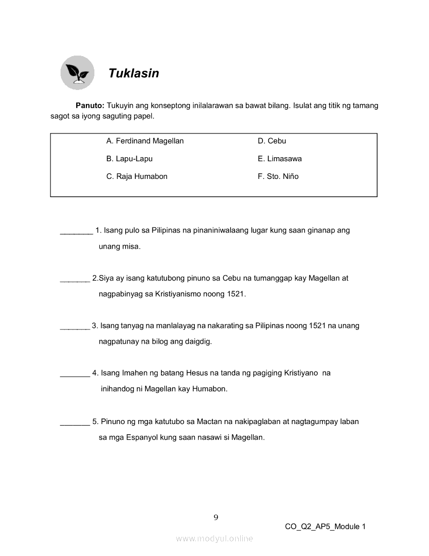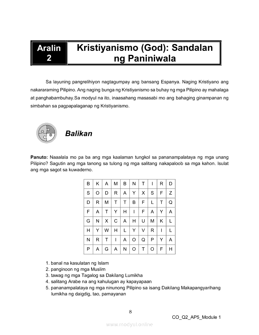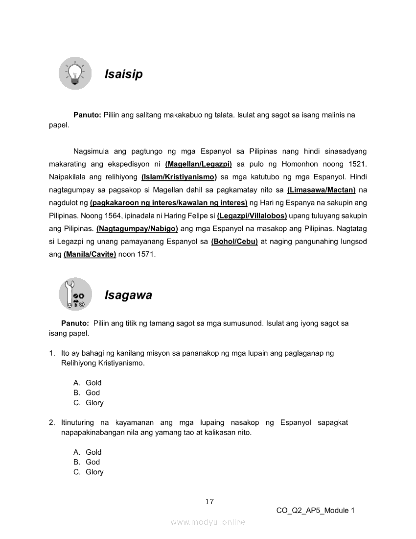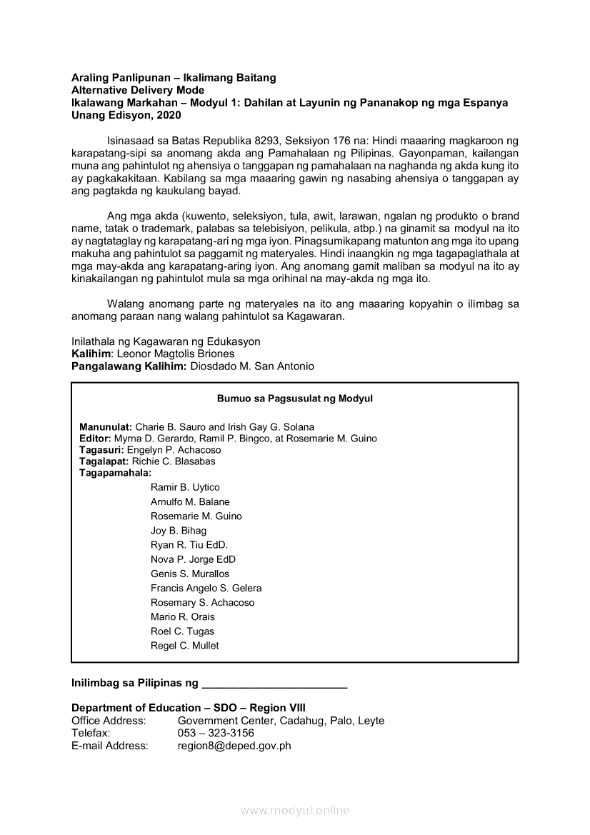 Araling Panlipunan 5 Modyul 1: Dahilan at Layunin ng Pananakop ng mga EspanyolApr 22, 2021 Grade 5Kiumo M901 Tablet for Kids — comprehensive protection in learning, safety, and entertainment for as low as **₱2,399!. Araling Panlipunan 5RelatedAraling Panlipunan Ikaapat na Markahan – Modyul 6: Ang Partisipasyon ng Iba’t ibang Rehiyon at Sektor (katutubo at kababaihan) sa pakikibaka ng bayanAraling Panlipunan Ikaapat na Markahan – Modyul 2: PAG-USBONG NG KAMALAYANG FILIPINO SA SEKULARISASYONAraling Panlipunan Ikaapat na Markahan – Modyul 4: Pananaw at Paniniwala ng mga Sultanato sa Pagpapanatili ng Kanilang Kalayaan (Ikalawang Bahagi)Araling Panlipunan Ikaapat na Markahan – Modyul 5: Mga Naunang Pag-aalsa Laban sa mga EspanyolAraling Panlipunan Ikaapat na Markahan – Modyul 8: Partisipasyon ng mga Kababaihan sa Pagsulong ng Kamalayang Pambansa