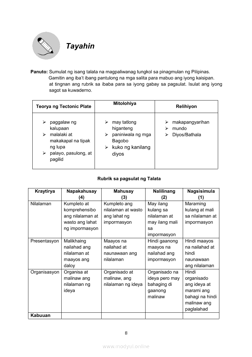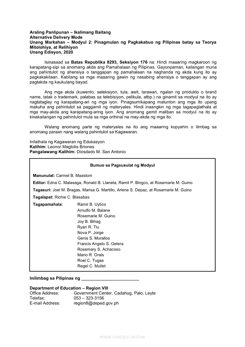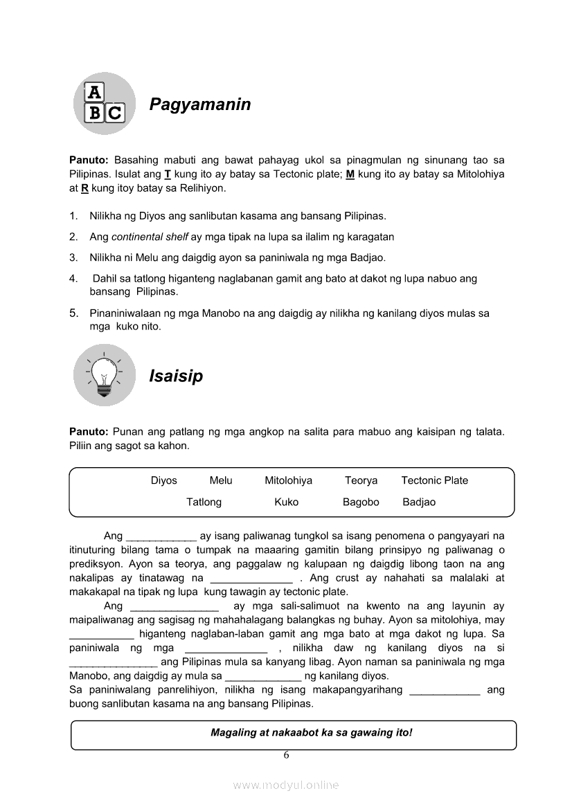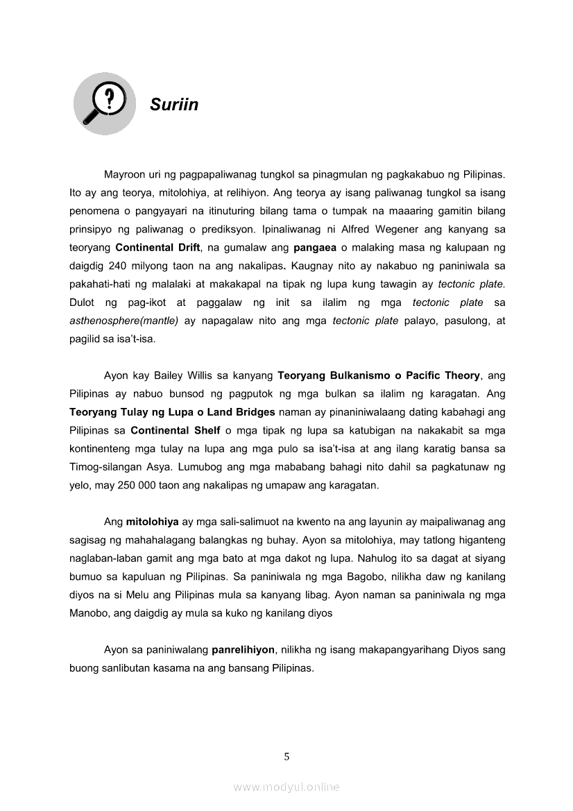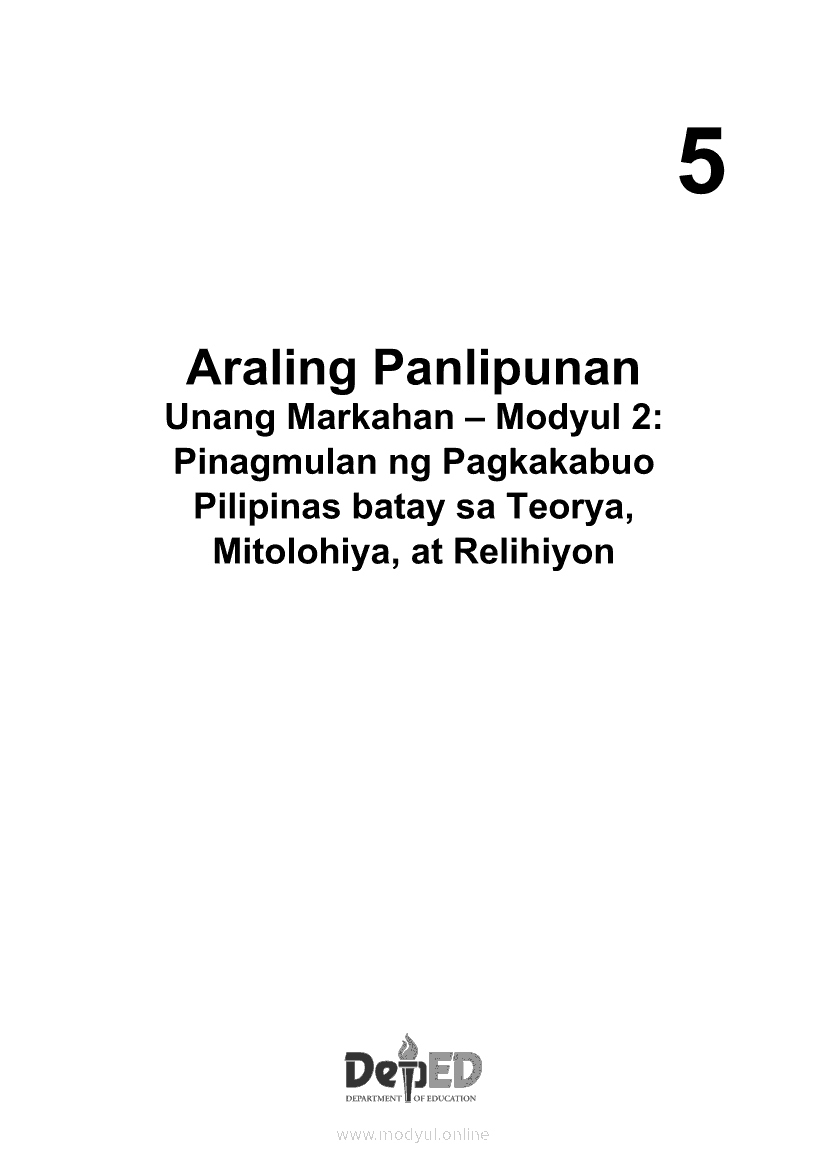 Araling Panlipunan 5 Modyul 2: Pinagmulan ng Pagkakabuo ng Pilipinas batay sa Teorya, Mitolohiya, at RelihiyonApr 22, 2021 Grade 5Kiumo M901 Tablet for Kids — comprehensive protection in learning, safety, and entertainment for as low as **₱2,399!. Araling Panlipunan 5RelatedAraling Panlipunan Ikaapat na Markahan – Modyul 8: Partisipasyon ng mga Kababaihan sa Pagsulong ng Kamalayang PambansaAraling Panlipunan Ikaapat na Markahan – Modyul 4: Pananaw at Paniniwala ng mga Sultanato sa Pagpapanatili ng Kanilang Kalayaan (Ikalawang Bahagi)Araling Panlipunan Ikaapat na Markahan – Modyul 6: Ang Partisipasyon ng Iba’t ibang Rehiyon at Sektor (katutubo at kababaihan) sa pakikibaka ng bayanAraling Panlipunan Ikaapat na Markahan – Modyul 2: PAG-USBONG NG KAMALAYANG FILIPINO SA SEKULARISASYONAraling Panlipunan Ikaapat na Markahan – Modyul 5: Mga Naunang Pag-aalsa Laban sa mga Espanyol