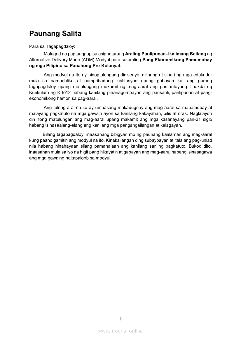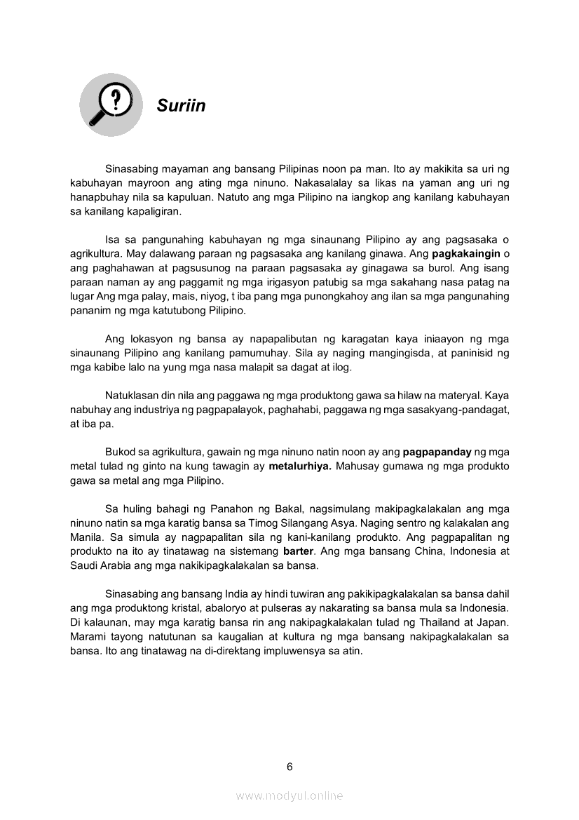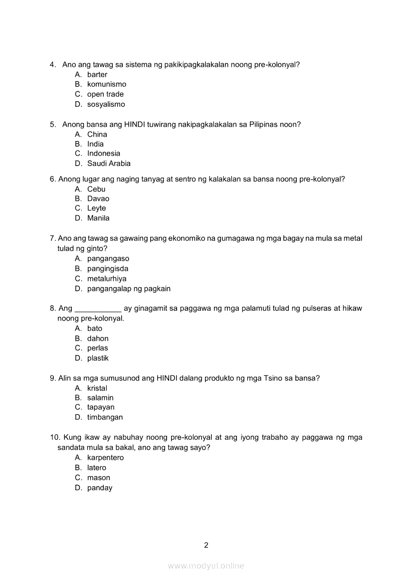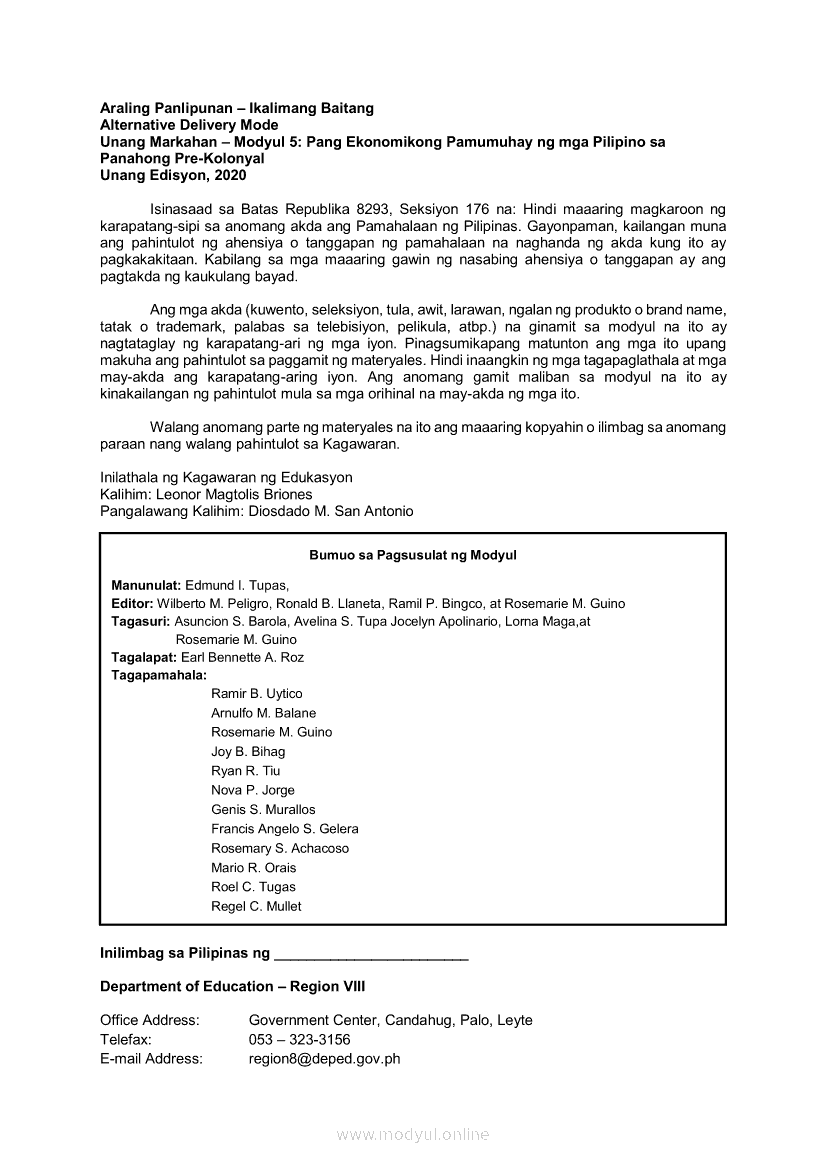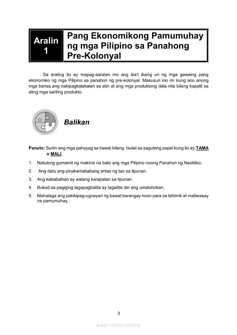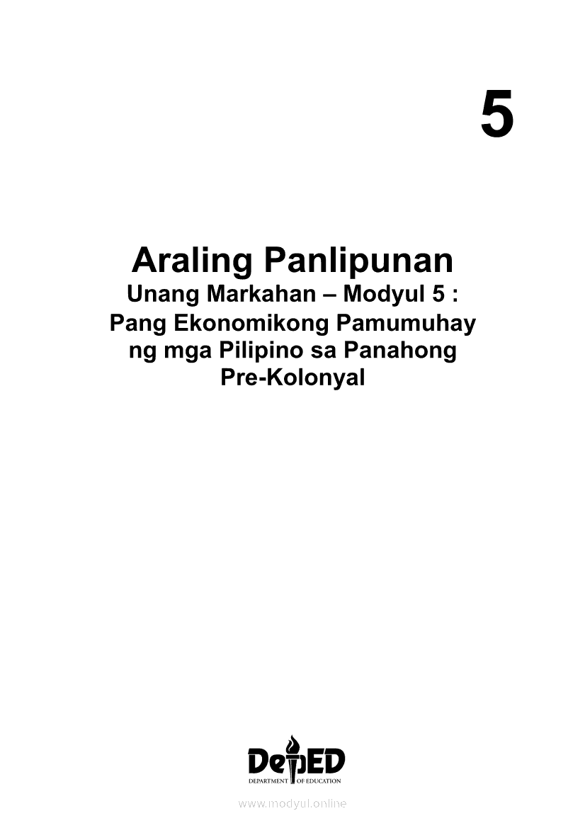 Araling Panlipunan 5 Modyul 5: Pang Ekonomikong Pamumuhay ng mga Pilipino sa Panahong Pre-KolonyalApr 22, 2021 Grade 5Kiumo M901 Tablet for Kids — comprehensive protection in learning, safety, and entertainment for as low as **₱2,399!. Araling Panlipunan 5RelatedAraling Panlipunan Ikaapat na Markahan – Modyul 7 Kahalagahan ng Pakikilahok ng Iba’t - Ibang Rehiyon at Sektor ng mga KatutuboAraling Panlipunan Ikaapat na Markahan – Modyul 2: PAG-USBONG NG KAMALAYANG FILIPINO SA SEKULARISASYONAraling Panlipunan Ikaapat na Markahan – Modyul 5: Mga Naunang Pag-aalsa Laban sa mga EspanyolAraling Panlipunan Ikaapat na Markahan – Modyul 6: Ang Partisipasyon ng Iba’t ibang Rehiyon at Sektor (katutubo at kababaihan) sa pakikibaka ng bayanAraling Panlipunan Ikaapat na Markahan – Modyul 3 Pananaw at Paniniwala ng mga Sultanato (Katutubong Muslim) sa Pagpapanatili ng Kanilang Kalayaan