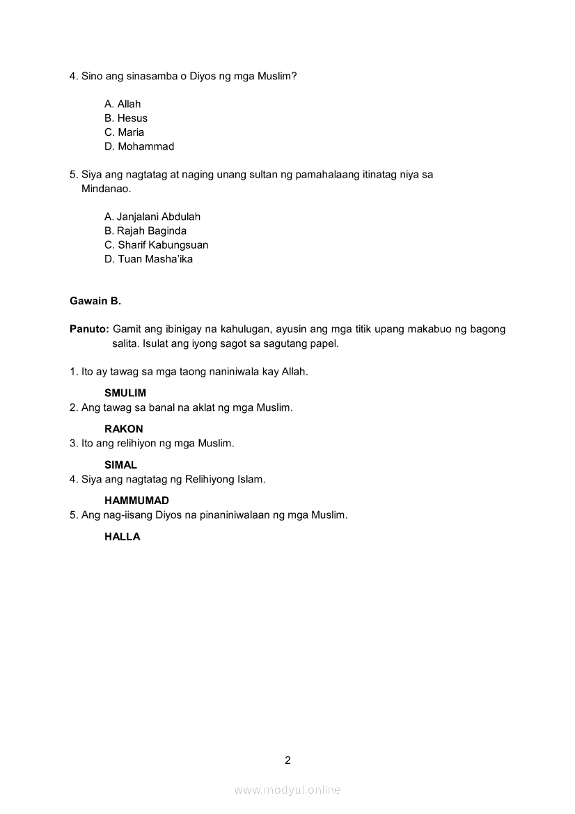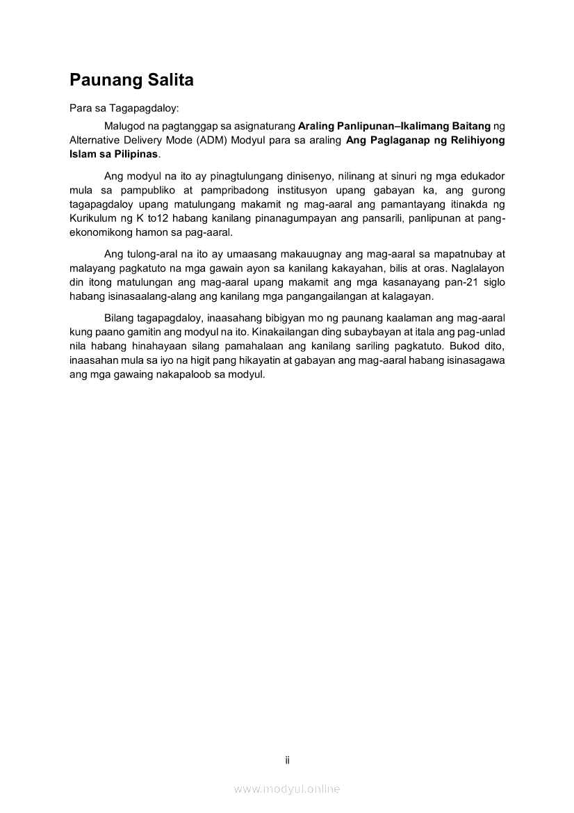 Araling Panlipunan 5 Modyul 7: Ang Paglaganap ng Relihiyong Islam sa PilipinasApr 22, 2021 Grade 5Kiumo M901 Tablet for Kids — comprehensive protection in learning, safety, and entertainment for as low as **₱2,399!. Araling Panlipunan 5RelatedAraling Panlipunan Ikaapat na Markahan – Modyul 4: Pananaw at Paniniwala ng mga Sultanato sa Pagpapanatili ng Kanilang Kalayaan (Ikalawang Bahagi)Araling Panlipunan Ikaapat na Markahan Modyul 1: Mga Salik na Nagbigay- Daan sa Pagusbong ng Nasyonalismong PilipinoAraling Panlipunan Ikaapat na Markahan – Modyul 8: Partisipasyon ng mga Kababaihan sa Pagsulong ng Kamalayang PambansaAraling Panlipunan Ikaapat na Markahan – Modyul 7 Kahalagahan ng Pakikilahok ng Iba’t - Ibang Rehiyon at Sektor ng mga KatutuboAraling Panlipunan Ikaapat na Markahan – Modyul 5: Mga Naunang Pag-aalsa Laban sa mga Espanyol