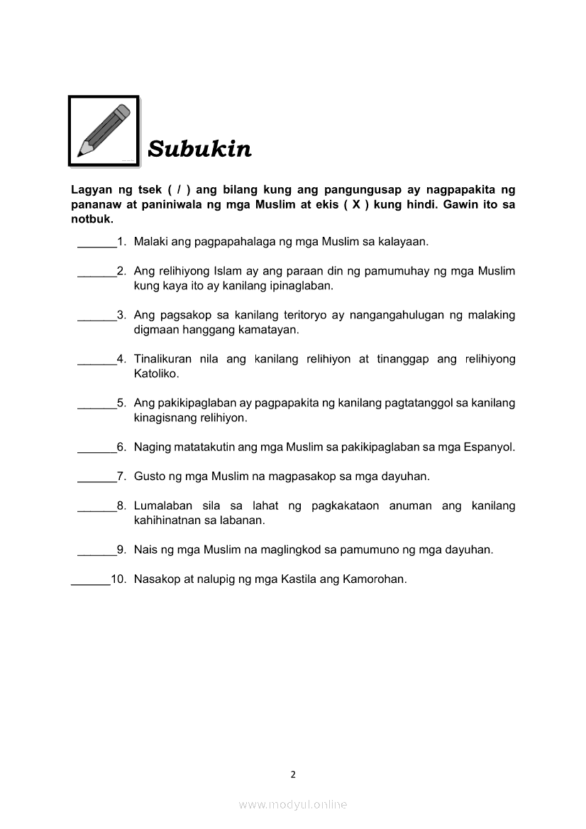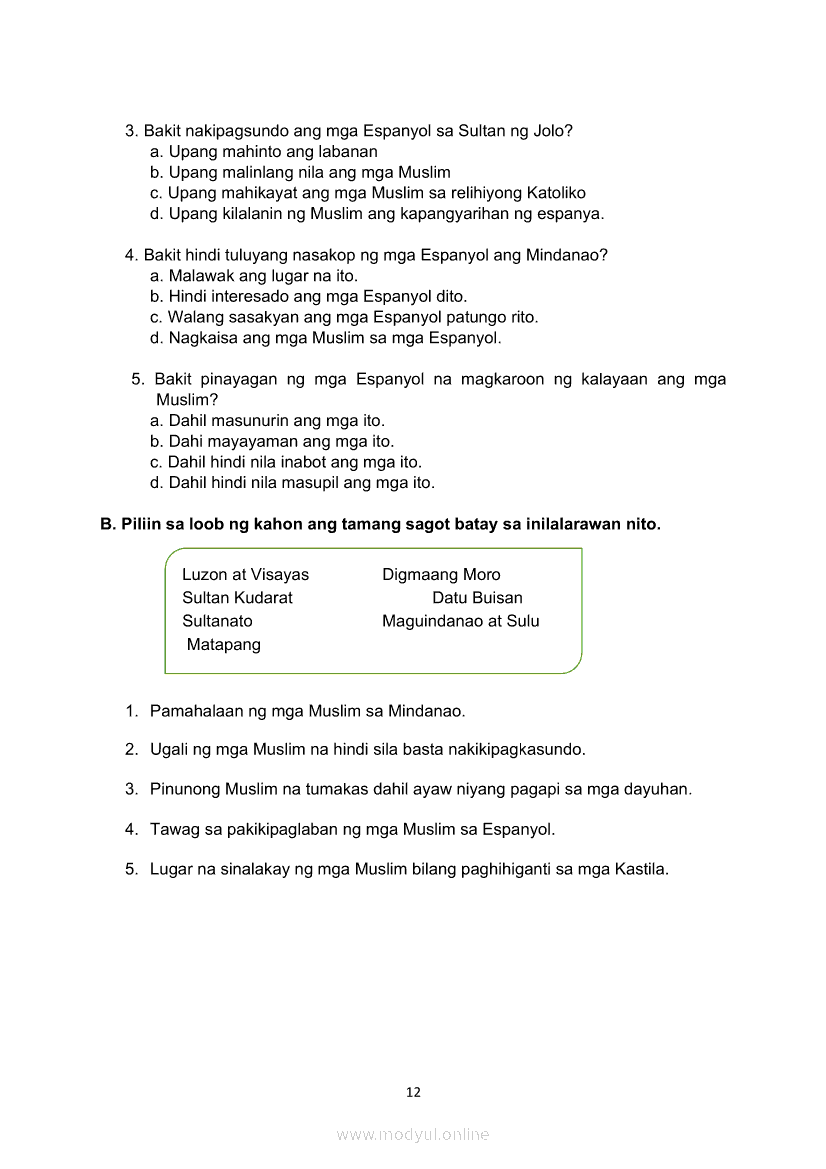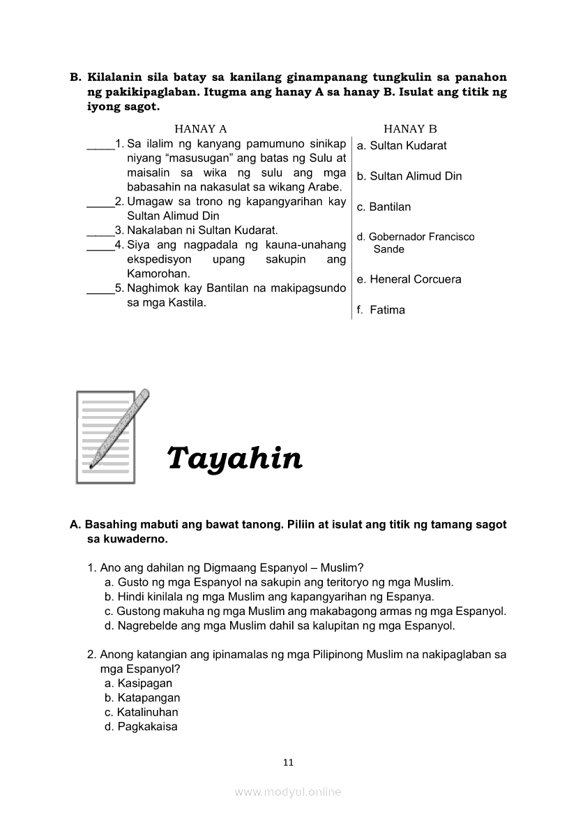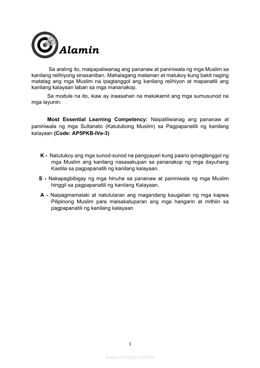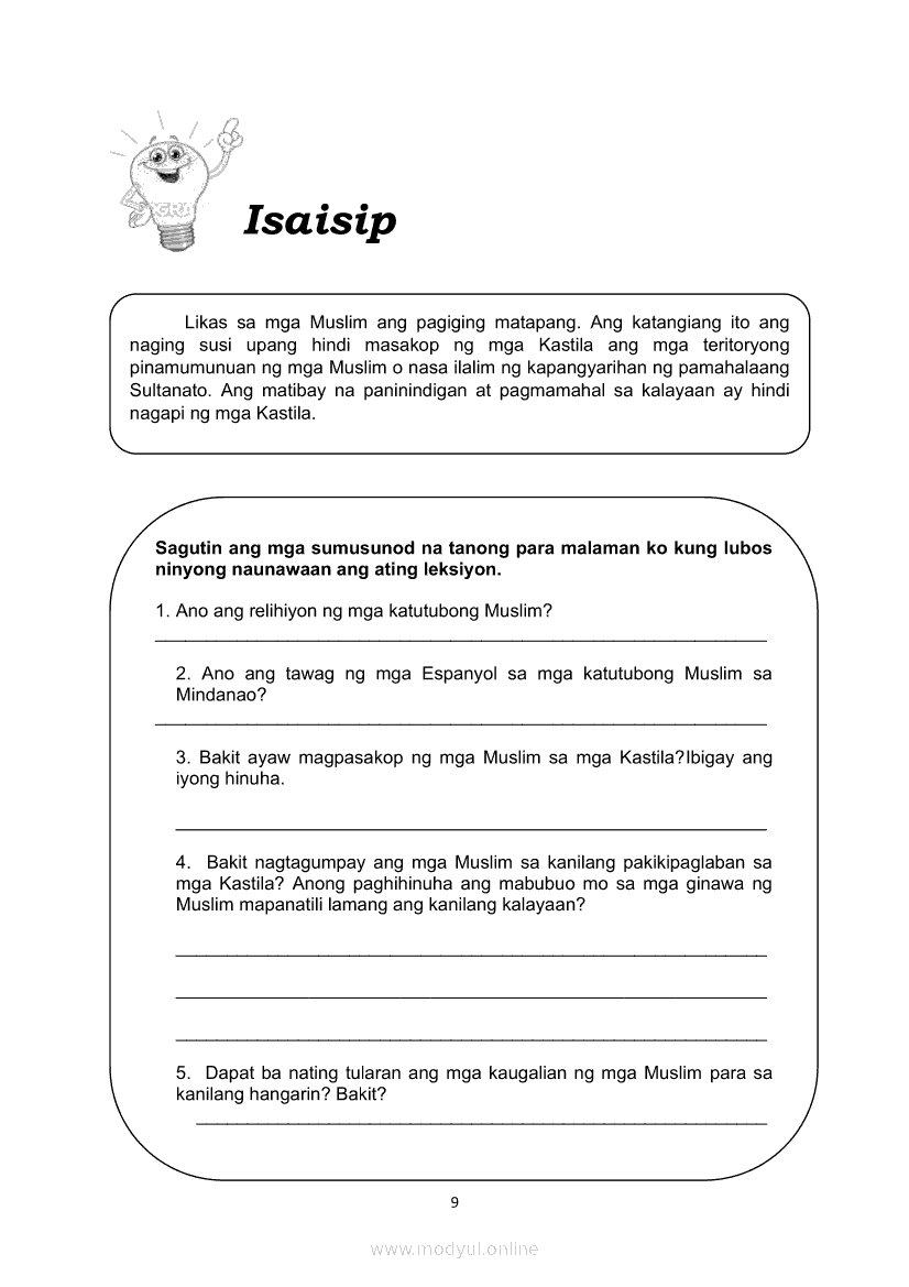 Araling Panlipunan Ikaapat na Markahan – Modyul 4: Pananaw at Paniniwala ng mga Sultanato sa Pagpapanatili ng Kanilang Kalayaan (Ikalawang Bahagi)May 26, 2021 Grade 5Kiumo M901 Tablet for Kids — comprehensive protection in learning, safety, and entertainment for as low as **₱2,399!. Araling Panlipunan 5 4th QuarterRelatedAraling Panlipunan Ikaapat na Markahan – Modyul 5: Mga Naunang Pag-aalsa Laban sa mga EspanyolAraling Panlipunan Ikaapat na Markahan – Modyul 7 Kahalagahan ng Pakikilahok ng Iba’t - Ibang Rehiyon at Sektor ng mga KatutuboAraling Panlipunan Ikaapat na Markahan Modyul 1: Mga Salik na Nagbigay- Daan sa Pagusbong ng Nasyonalismong PilipinoAraling Panlipunan Ikaapat na Markahan – Modyul 3 Pananaw at Paniniwala ng mga Sultanato (Katutubong Muslim) sa Pagpapanatili ng Kanilang KalayaanAraling Panlipunan Ikaapat na Markahan – Modyul 2: PAG-USBONG NG KAMALAYANG FILIPINO SA SEKULARISASYON