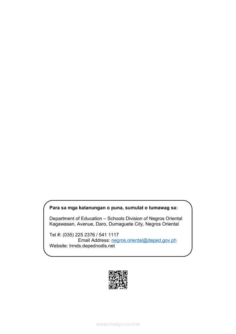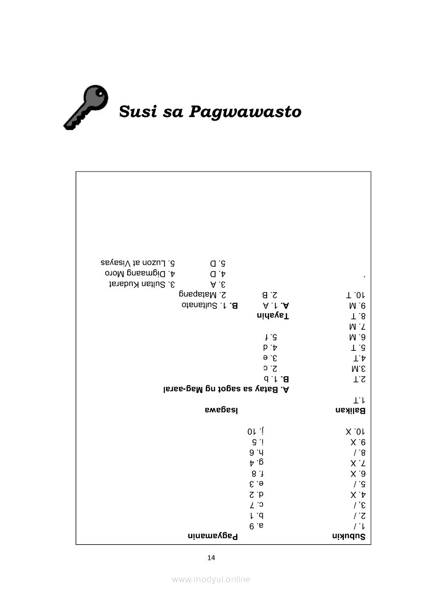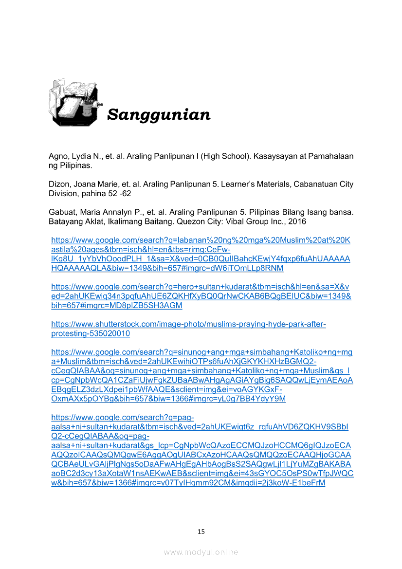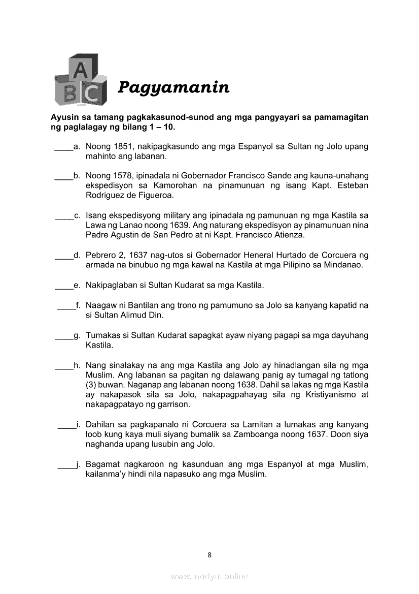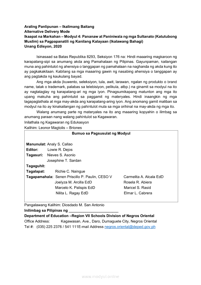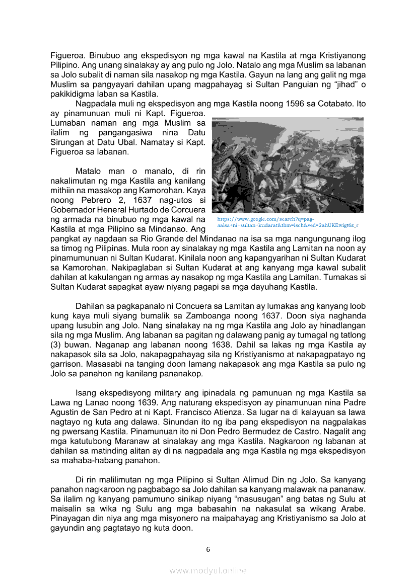 Araling Panlipunan Ikaapat na Markahan – Modyul 4: Pananaw at Paniniwala ng mga Sultanato sa Pagpapanatili ng Kanilang Kalayaan (Ikalawang Bahagi)May 26, 2021 Grade 5Kiumo M901 Tablet for Kids — comprehensive protection in learning, safety, and entertainment for as low as **₱2,399!. Araling Panlipunan 5 4th QuarterRelatedAraling Panlipunan Ikaapat na Markahan – Modyul 5: Mga Naunang Pag-aalsa Laban sa mga EspanyolAraling Panlipunan Ikaapat na Markahan – Modyul 7 Kahalagahan ng Pakikilahok ng Iba’t - Ibang Rehiyon at Sektor ng mga KatutuboAraling Panlipunan Ikaapat na Markahan Modyul 1: Mga Salik na Nagbigay- Daan sa Pagusbong ng Nasyonalismong PilipinoAraling Panlipunan Ikaapat na Markahan – Modyul 3 Pananaw at Paniniwala ng mga Sultanato (Katutubong Muslim) sa Pagpapanatili ng Kanilang KalayaanAraling Panlipunan Ikaapat na Markahan – Modyul 2: PAG-USBONG NG KAMALAYANG FILIPINO SA SEKULARISASYON