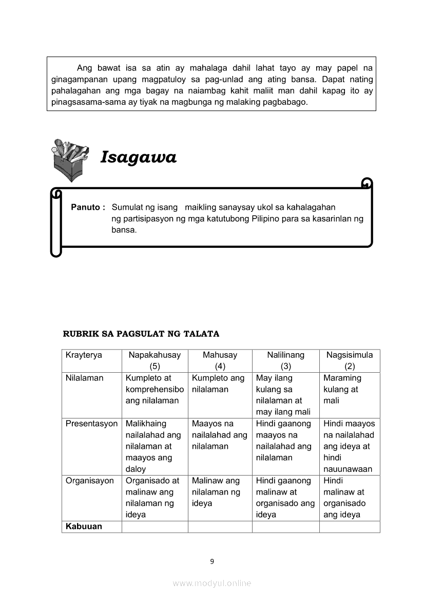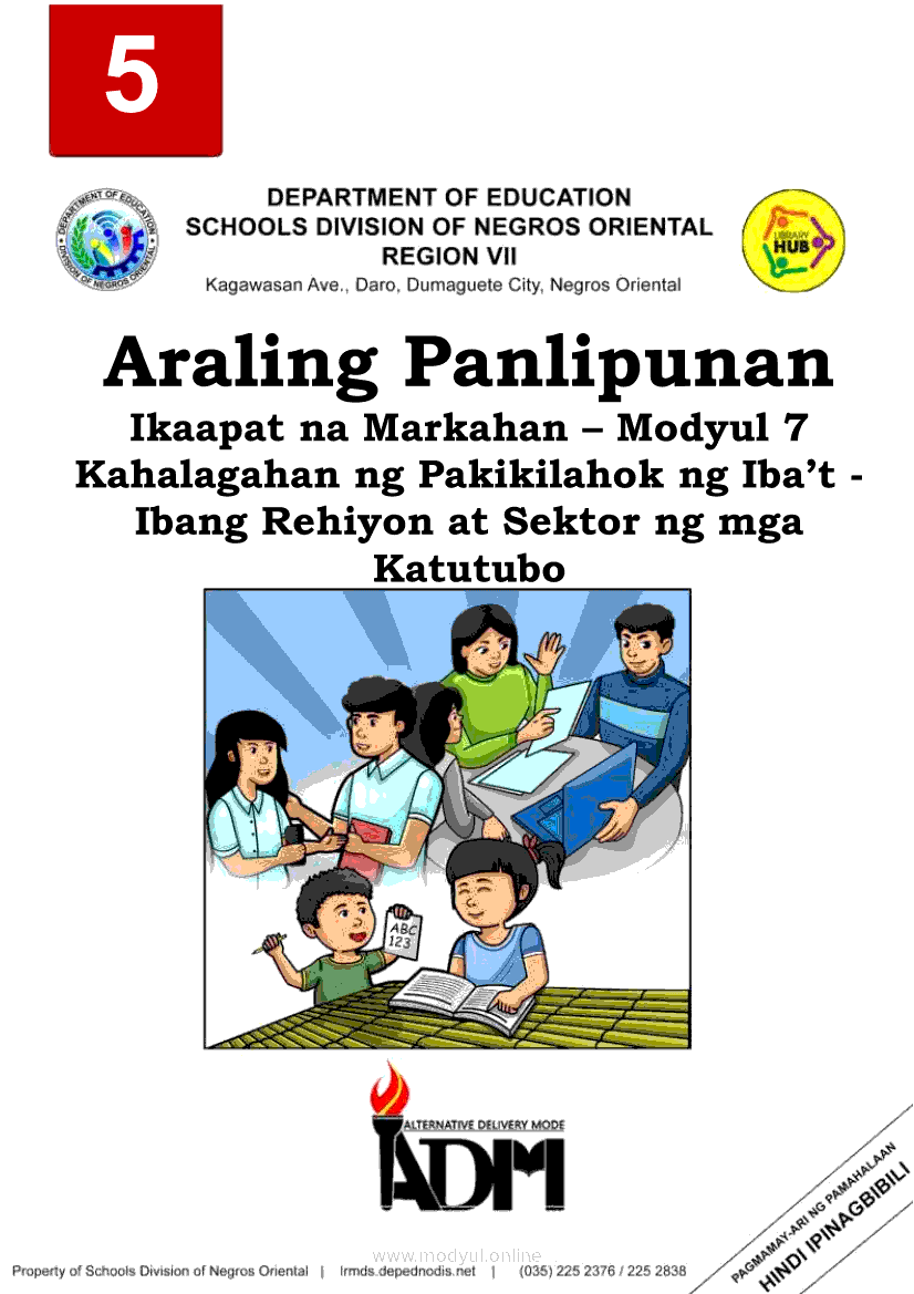 Araling Panlipunan Ikaapat na Markahan – Modyul 7 Kahalagahan ng Pakikilahok ng Iba’t - Ibang Rehiyon at Sektor ng mga KatutuboMay 26, 2021 Grade 5Kiumo M901 Tablet for Kids — comprehensive protection in learning, safety, and entertainment for as low as **₱2,399!. Araling Panlipunan 5 4th QuarterRelatedAraling Panlipunan Ikaapat na Markahan – Modyul 2: PAG-USBONG NG KAMALAYANG FILIPINO SA SEKULARISASYONAraling Panlipunan Ikaapat na Markahan – Modyul 8: Partisipasyon ng mga Kababaihan sa Pagsulong ng Kamalayang PambansaAraling Panlipunan Ikaapat na Markahan Modyul 1: Mga Salik na Nagbigay- Daan sa Pagusbong ng Nasyonalismong PilipinoAraling Panlipunan Ikaapat na Markahan – Modyul 6: Ang Partisipasyon ng Iba’t ibang Rehiyon at Sektor (katutubo at kababaihan) sa pakikibaka ng bayanAraling Panlipunan Ikaapat na Markahan – Modyul 5: Mga Naunang Pag-aalsa Laban sa mga Espanyol