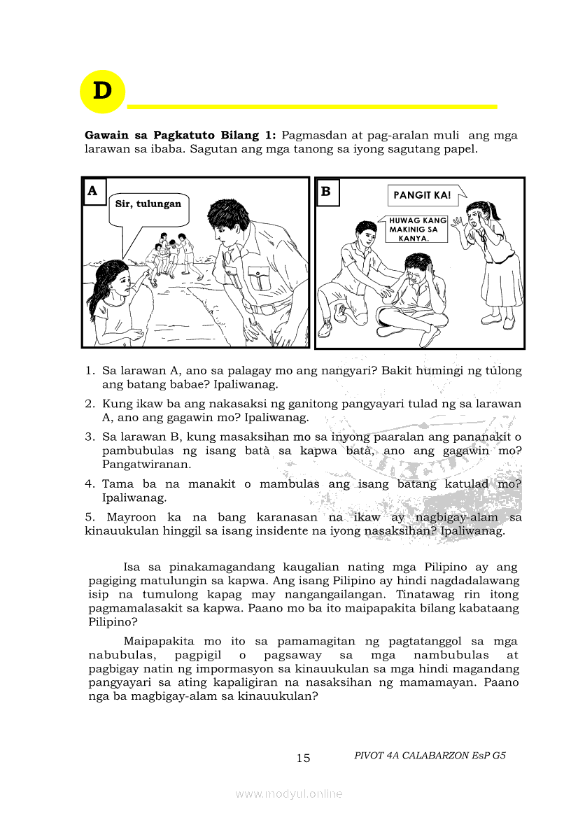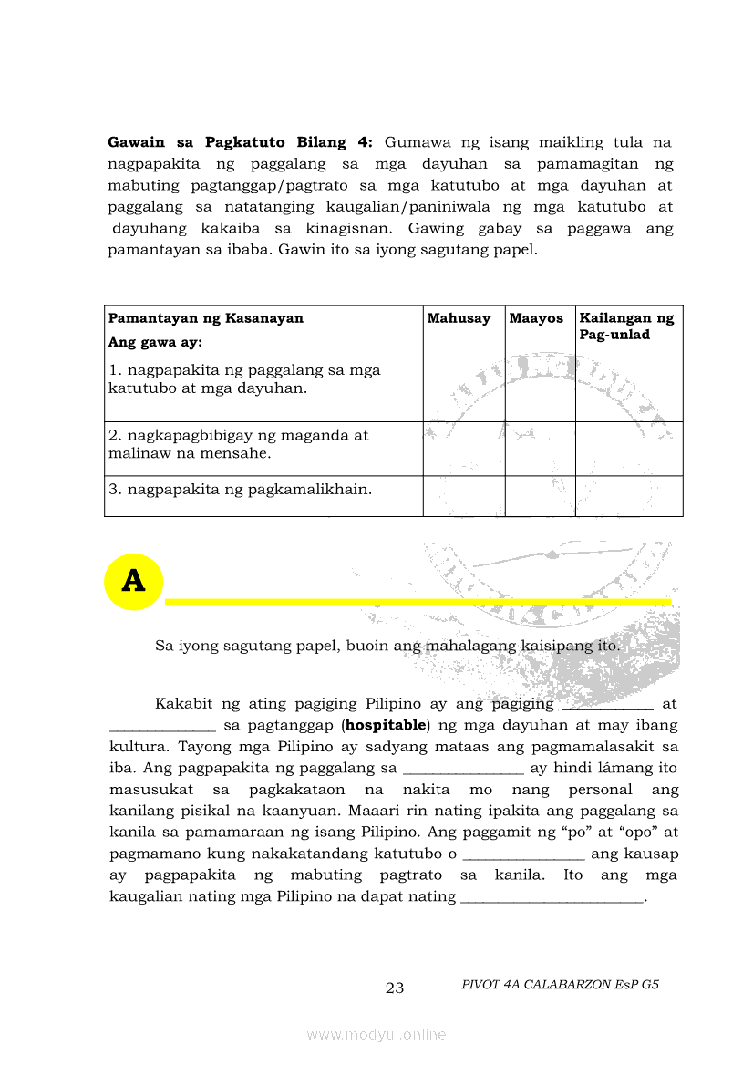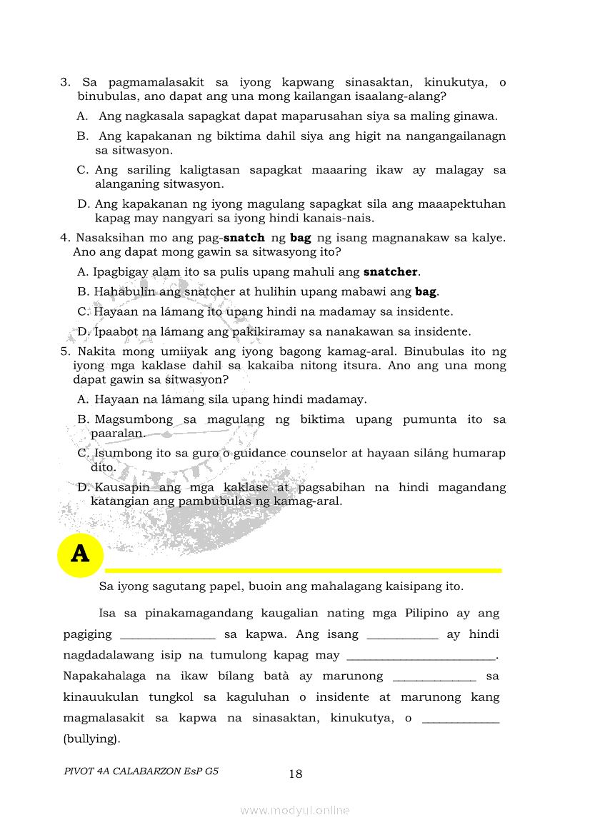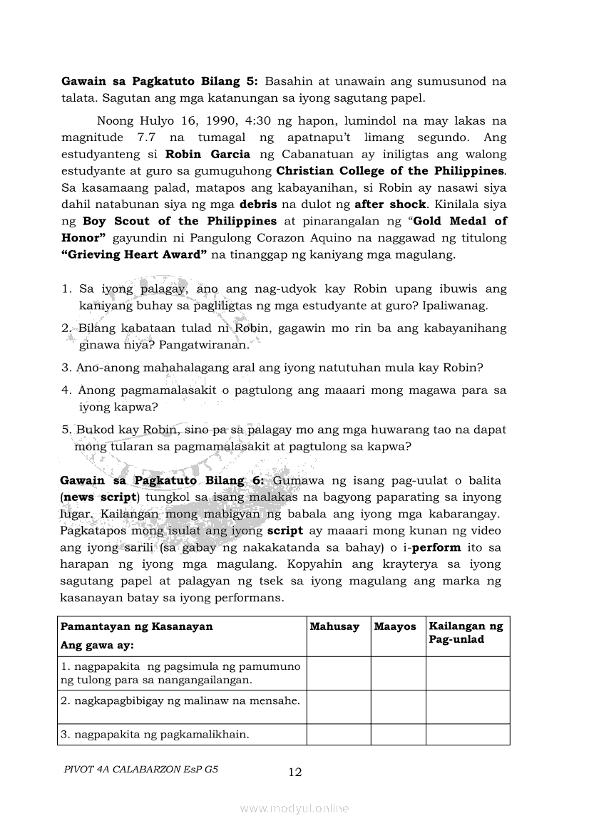 Arts 5 Modyul 5: Three – Dimensional (3D) Effects sa PagguhitApr 22, 2021 Grade 5Kiumo M901 Tablet for Kids — comprehensive protection in learning, safety, and entertainment for as low as **₱2,399!. Arts 5RelatedARTS Ikaapat na Markahan – Modyul 4b: Paggawa ng 3-Dimensional Crafts: Mobile Art, Paper Mache at Paper BeadsARTS Ikaapat na Markahan – Modyul 4a: 3D at Eskultura: Ang Tradisyon ng Sining sa PilipinasArts 5 Modyul 7: Payak na Exhibit: MakibahagiArts 5 Modyul para sa Ikalawang Markahan (PIVOT)Arts 5 Modyul 4: Sinaunang Bagay, Ating Italakay