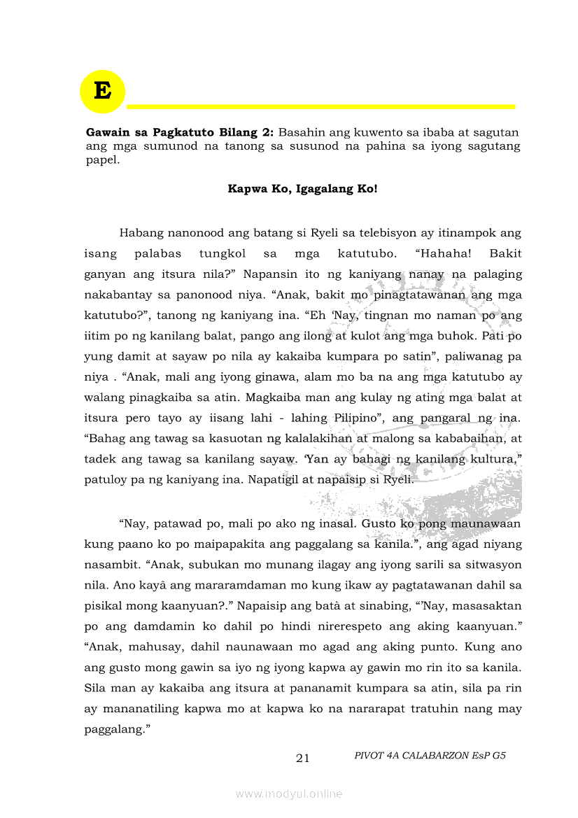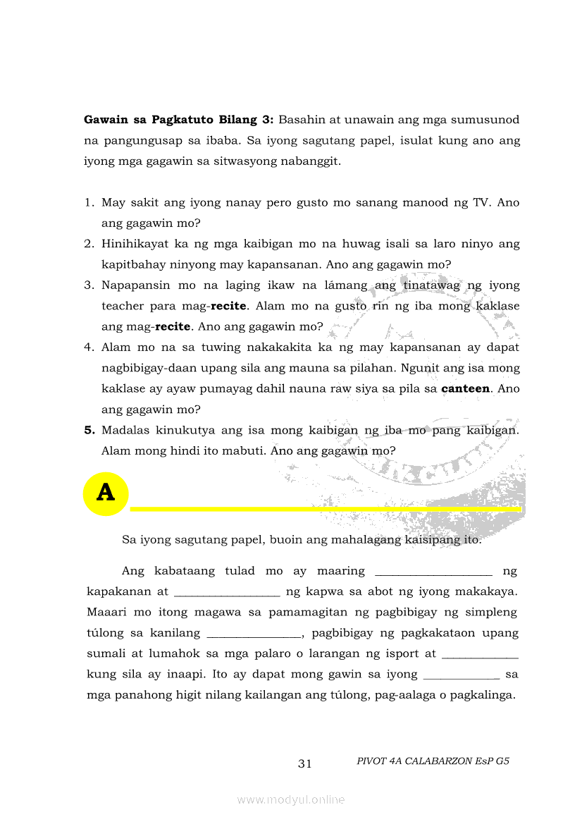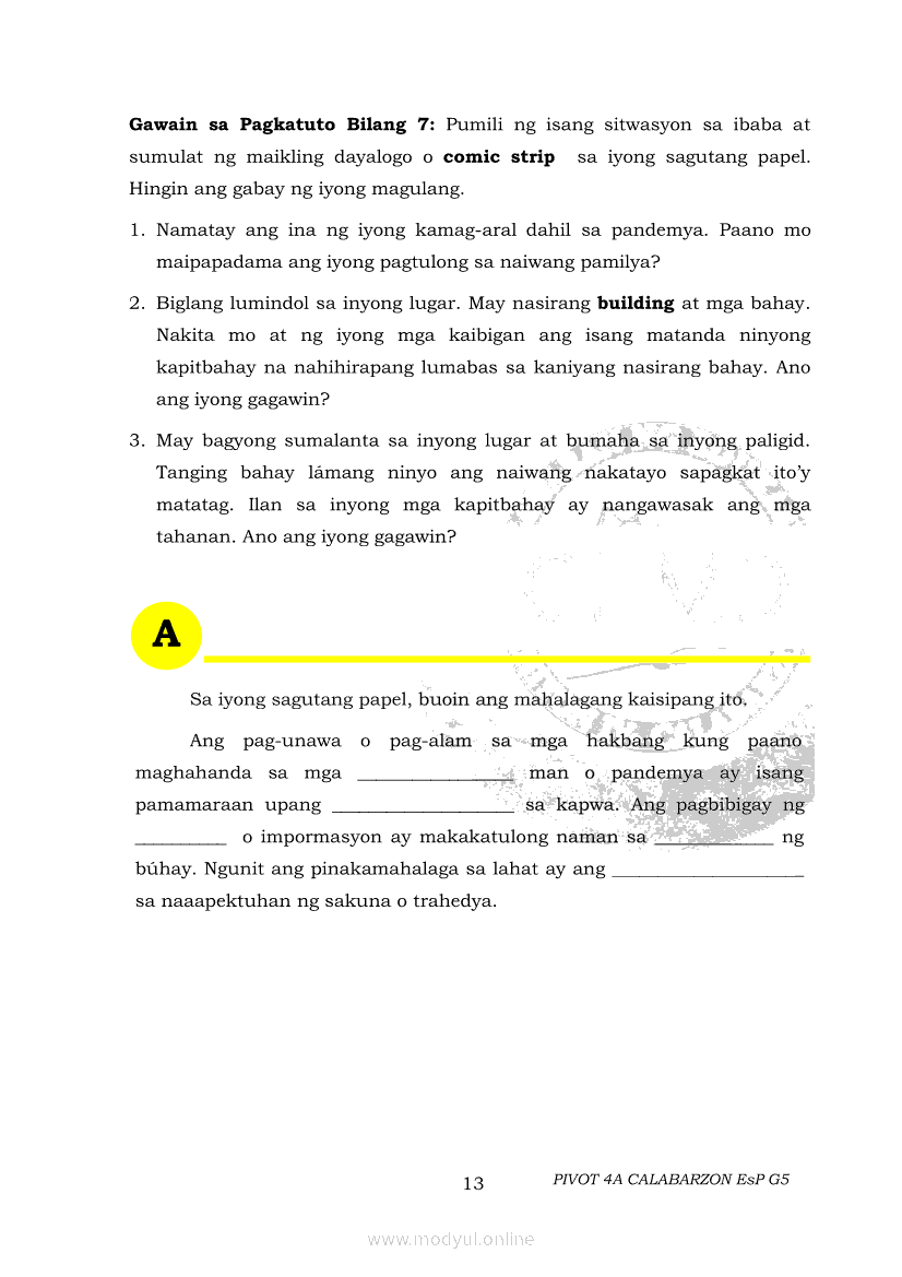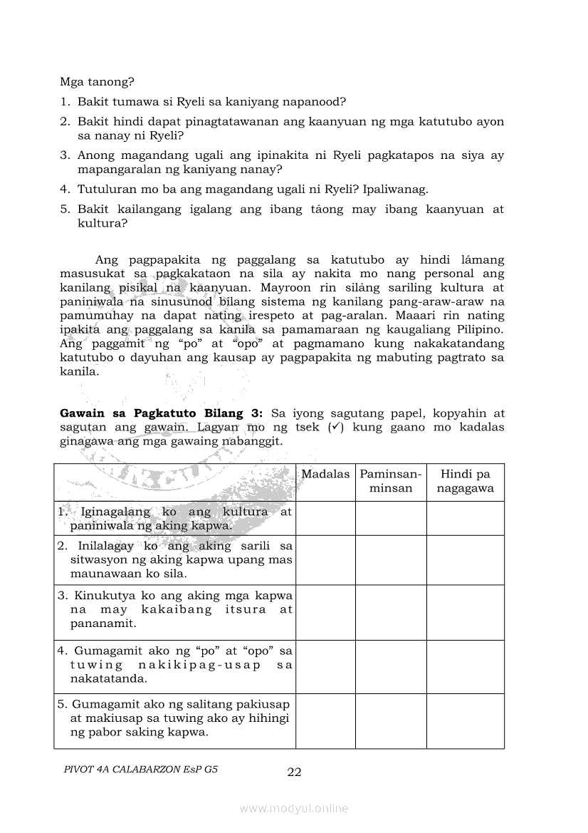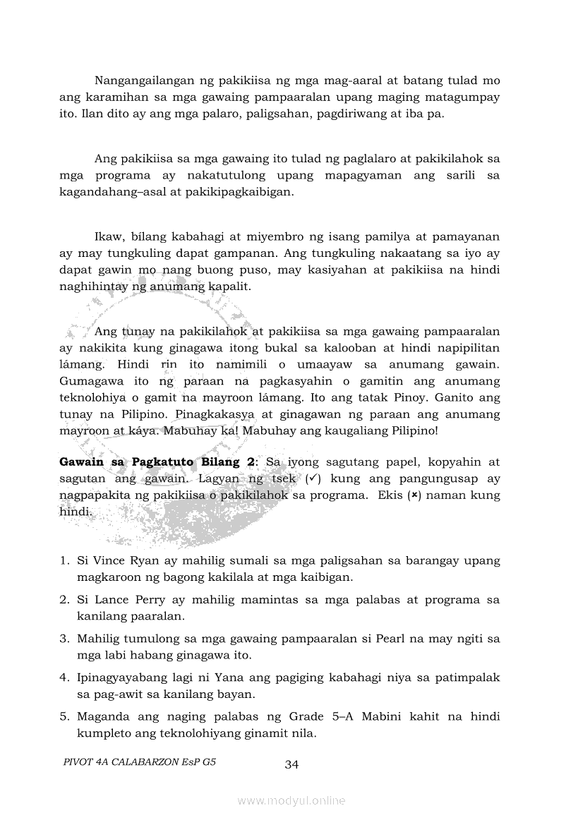 Arts 5 Modyul 5: Three – Dimensional (3D) Effects sa PagguhitApr 22, 2021 Grade 5Kiumo M901 Tablet for Kids — comprehensive protection in learning, safety, and entertainment for as low as **₱2,399!. Arts 5RelatedARTS Ikaapat na Markahan – Modyul 4b: Paggawa ng 3-Dimensional Crafts: Mobile Art, Paper Mache at Paper BeadsARTS Ikaapat na Markahan – Modyul 4a: 3D at Eskultura: Ang Tradisyon ng Sining sa PilipinasArts 5 Modyul 7: Payak na Exhibit: MakibahagiArts 5 Modyul para sa Ikalawang Markahan (PIVOT)Arts 5 Modyul 4: Sinaunang Bagay, Ating Italakay