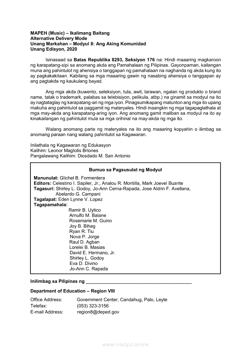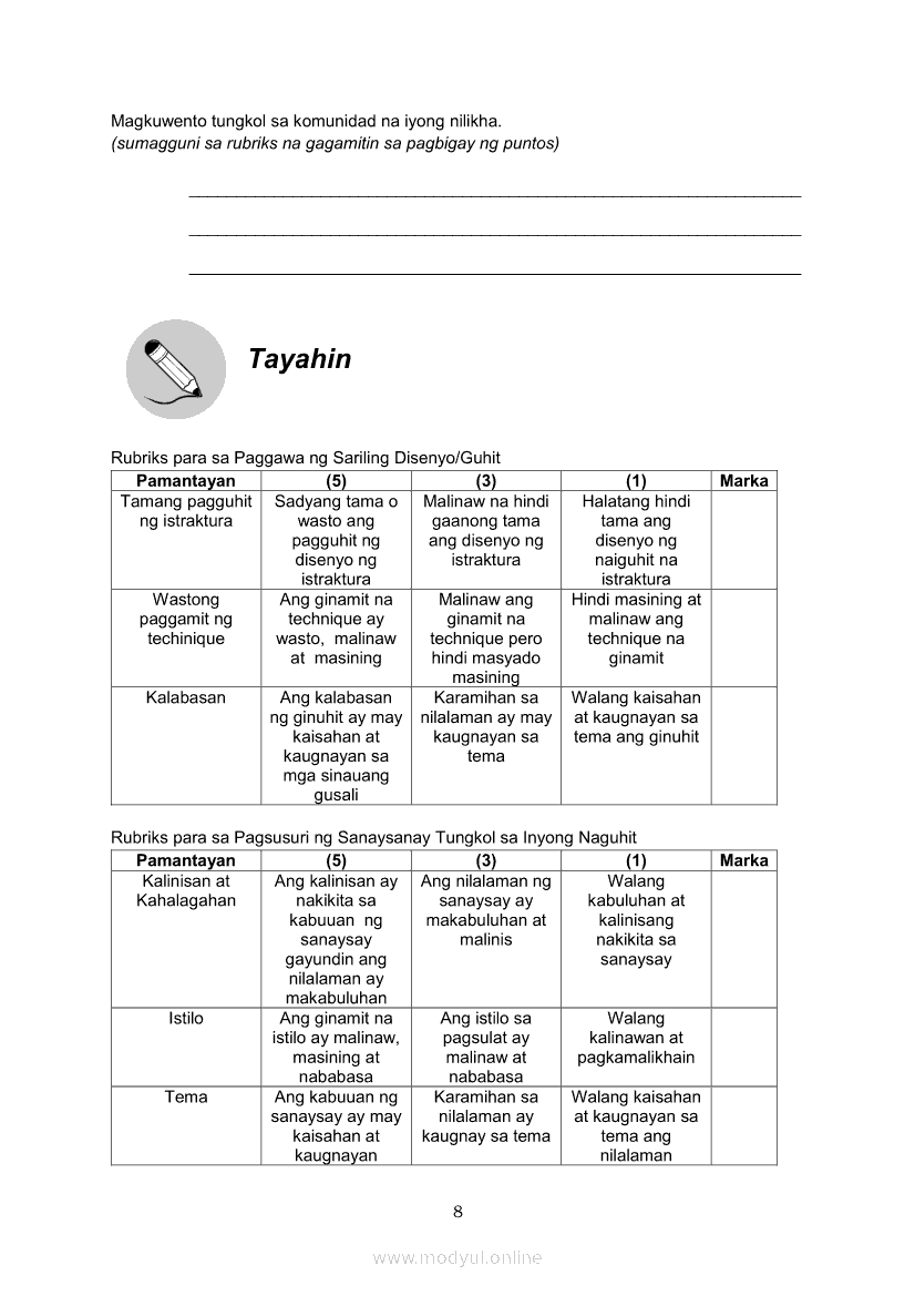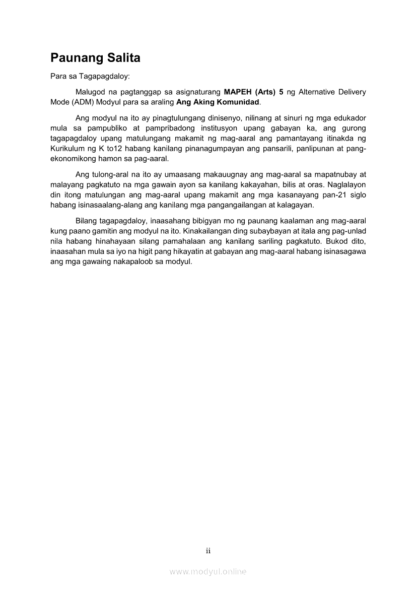 Arts 5 Modyul 8: Ang Aking KomunidadApr 22, 2021 Grade 5Kiumo M901 Tablet for Kids — comprehensive protection in learning, safety, and entertainment for as low as **₱2,399!. Arts 5RelatedARTS Ikaapat na Markahan – Modyul 4b: Paggawa ng 3-Dimensional Crafts: Mobile Art, Paper Mache at Paper BeadsARTS Ikaapat na Markahan – Modyul 4a: 3D at Eskultura: Ang Tradisyon ng Sining sa PilipinasArts 5 Modyul 1: Mga Selebrasyon sa PilipinasArts 5 Modyul 6: Paglikha ng Sariling SiningArts 5 Modyul 2: Gawa Kong Banga: Kahanga-hanga