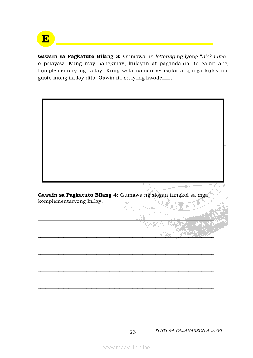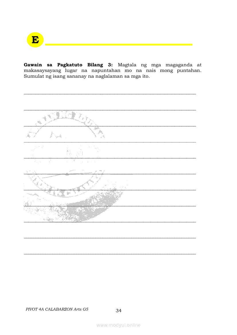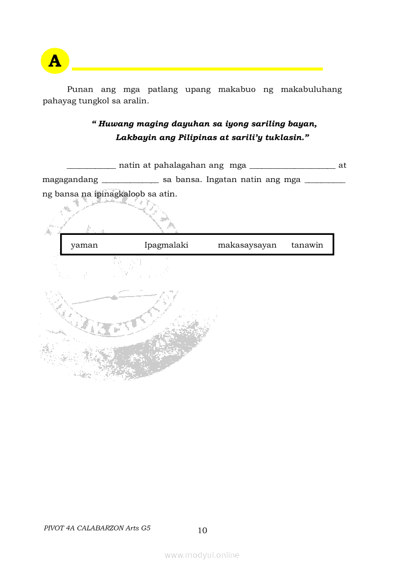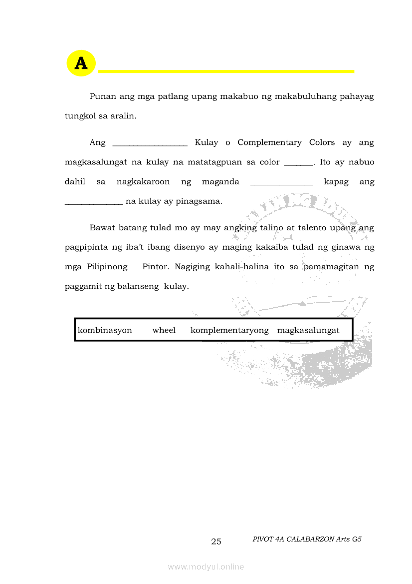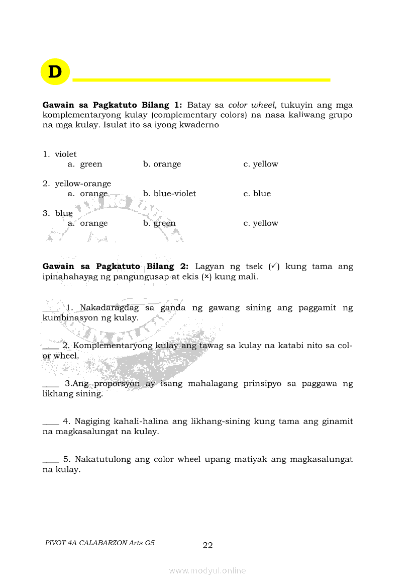 Arts 5 Modyul para sa Ikalawang Markahan (PIVOT)Apr 22, 2021 Grade 5Kiumo M901 Tablet for Kids — comprehensive protection in learning, safety, and entertainment for as low as **₱2,399!. Arts 5RelatedARTS Ikaapat na Markahan – Modyul 4a: 3D at Eskultura: Ang Tradisyon ng Sining sa PilipinasARTS Ikaapat na Markahan – Modyul 4b: Paggawa ng 3-Dimensional Crafts: Mobile Art, Paper Mache at Paper BeadsArts 5 Modyul 8: Ang Aking KomunidadArts 5 Modyul 7: Payak na Exhibit: MakibahagiArts 5 Modyul 3: Mga Sinaunang Gusali sa Bansa