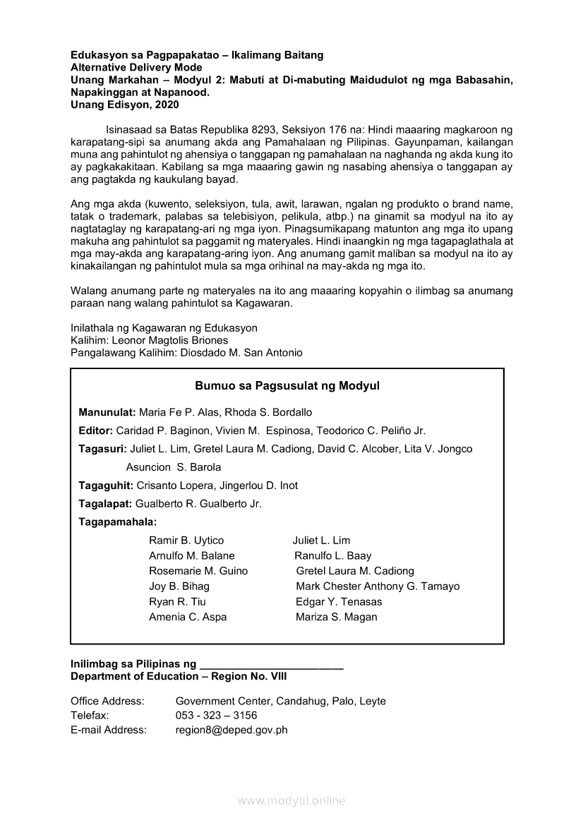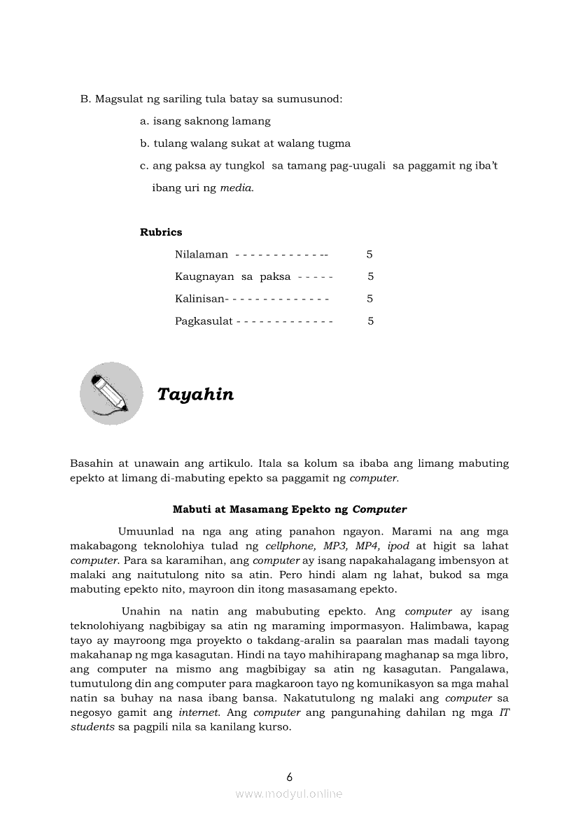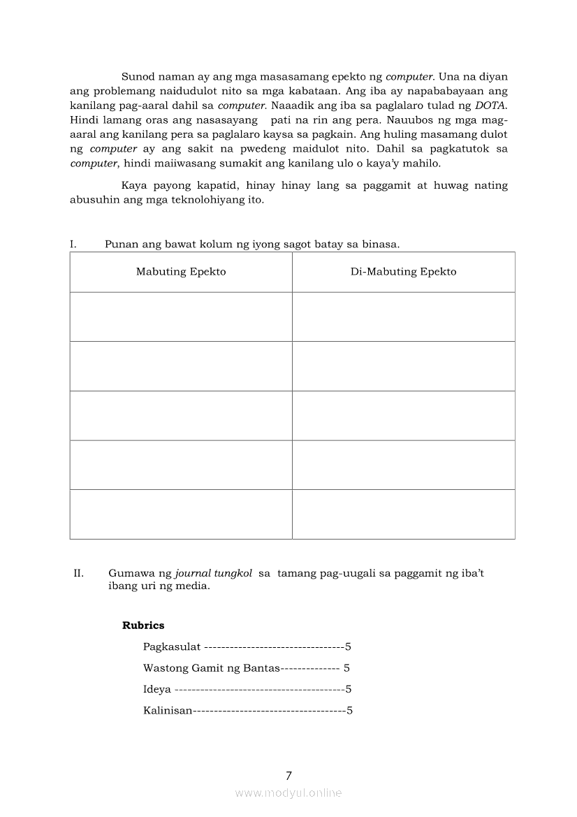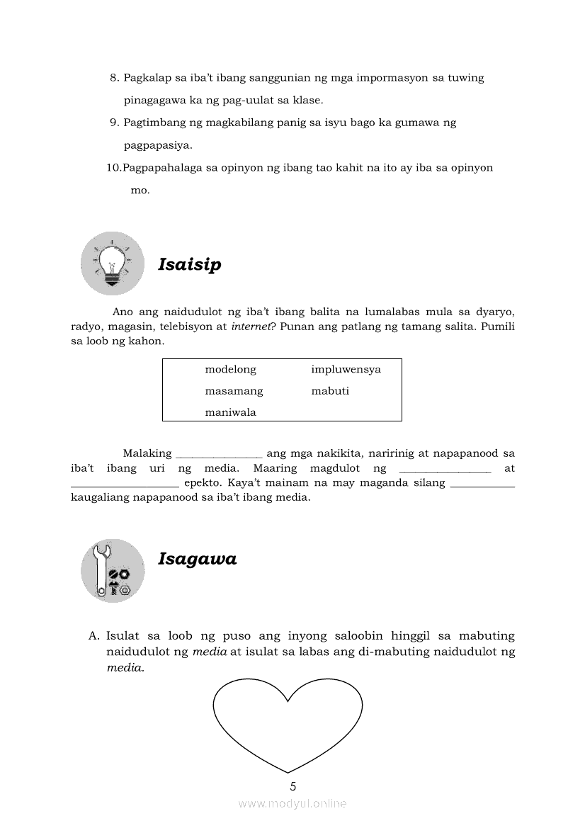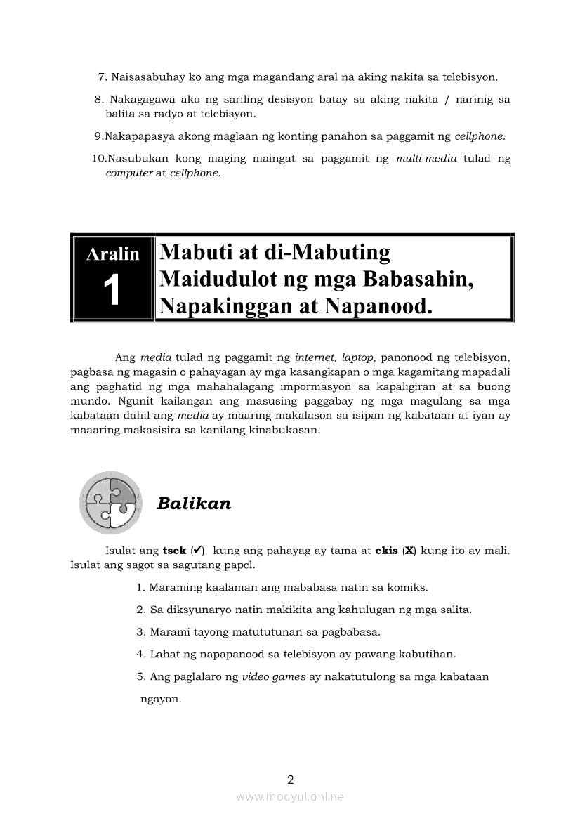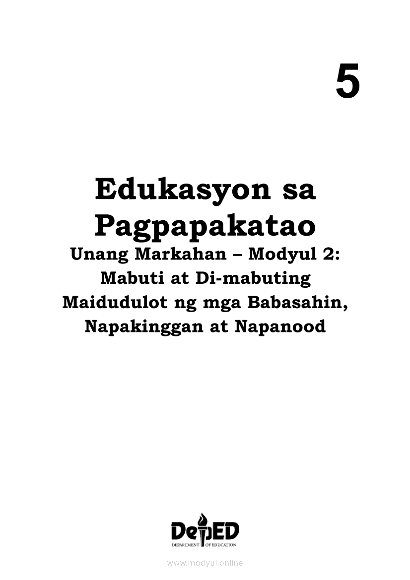 Edukasyon sa Pagpapakatao 5 Modyul 2: Mabuti at Di-mabuting Maidudulot ng mga Babasahin, Napakinggan at NapanoodApr 22, 2021 Grade 5Kiumo M901 Tablet for Kids — comprehensive protection in learning, safety, and entertainment for as low as **₱2,399!. Edukasyon sa Pagpapakatao 5RelatedEdukasyon sa Pagpapakatao Ikaapat na Markahan – Modyul 2: Nananalig Ako sa Diyos (Linggo: Ikalawa)Edukasyon sa Pagpapakatao Ikaapat na Markahan – Modyul 1: Isinasaalang-alang Ko Ang Kapwa Ko (Linggo: Una)Edukasyon sa Pagpapakatao 5 Modyul 5: Pagkakaisa sa Pagtatapos ng GawainEdukasyon sa Pagpapakatao 5 Modyul 4: Matapat na Paggawa sa Proyektong PampaaralanEdukasyon sa Pagpapakatao 5 Modyul 1: Kawilihan sa Pagsusuri ng Katotohanan