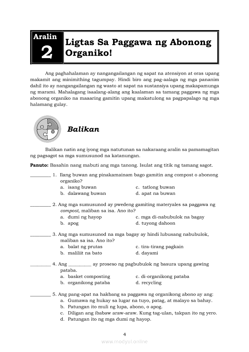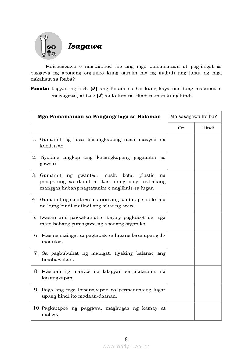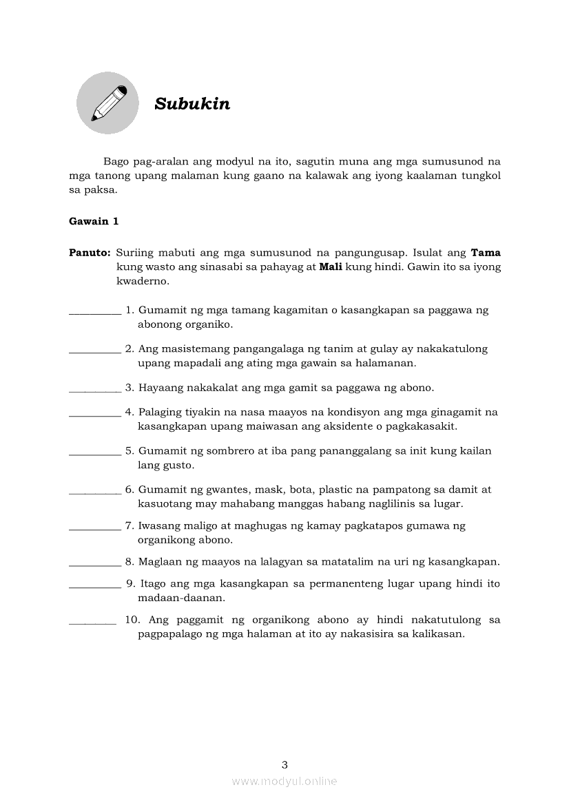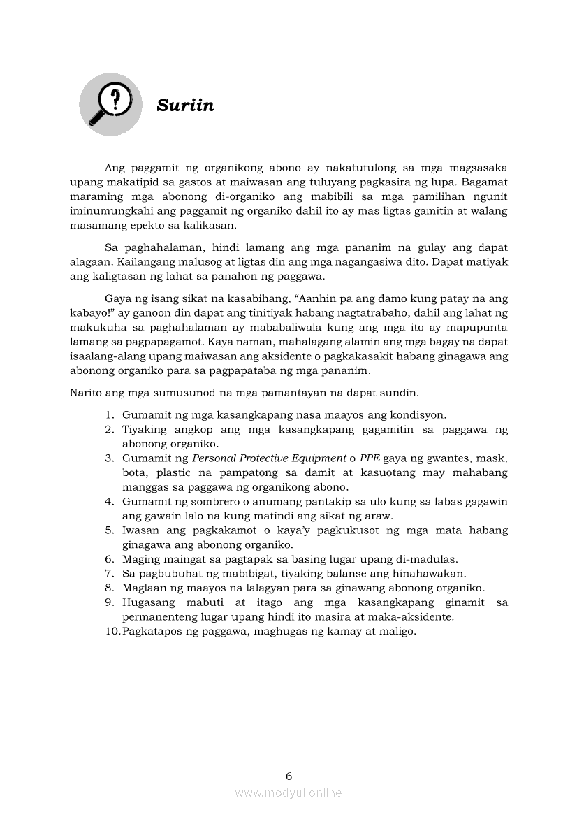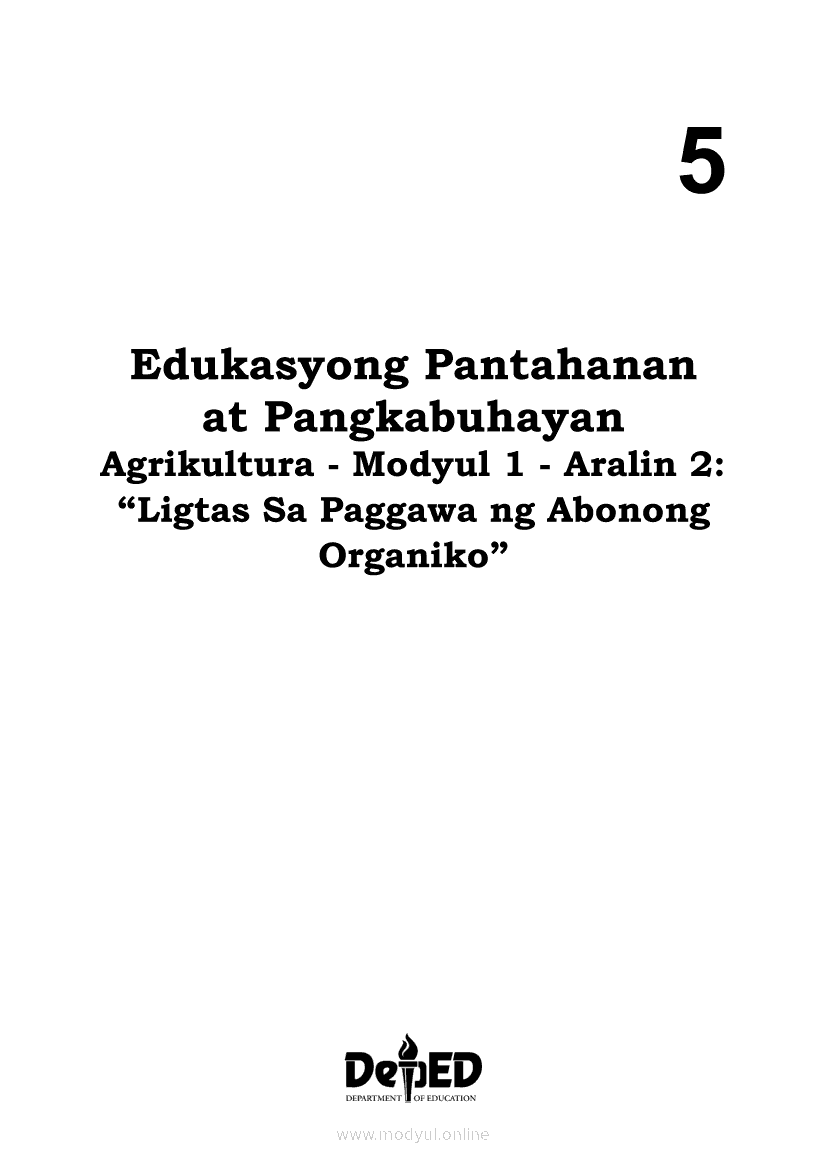 Edukasyong Pantahanan at Pangkabuhayan 5 Agrikultura - Modyul 1- Aralin 2: “Ligtas Sa Paggawa ng Abonong Organiko”Apr 22, 2021 Grade 5Kiumo M901 Tablet for Kids — comprehensive protection in learning, safety, and entertainment for as low as **₱2,399!. Edukasyong Pantahanan at Pangkabuhayan 5RelatedEPP - ICT Markahan 4 - Modyul 7: Pagsali sa Discussion Forum at Chat sa Ligtas at Responsableng PamamaraanEPP - ICT Markahan 4 - Modyul 2: Kahulugan at Pagkakaiba ng Produkto at SerbisyoEPP - ICT Markahan 4 - Modyul 1: Oportunidad na Maaaring Pagkakitaan (Produkto at Serbisyo) sa Tahanan at PamayananEPP - ICT Markahan 4 - Modyul 5: Pagbebenta ng Natatanging PanindaEPP - ICT Markahan 4 - Modyul 8: Pangangalap at Pagsusuri ng Impormasyon Gamit ang ICT