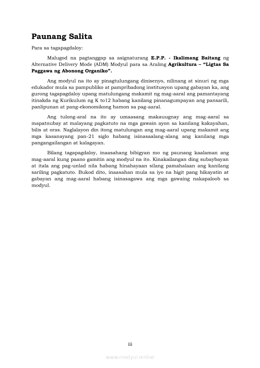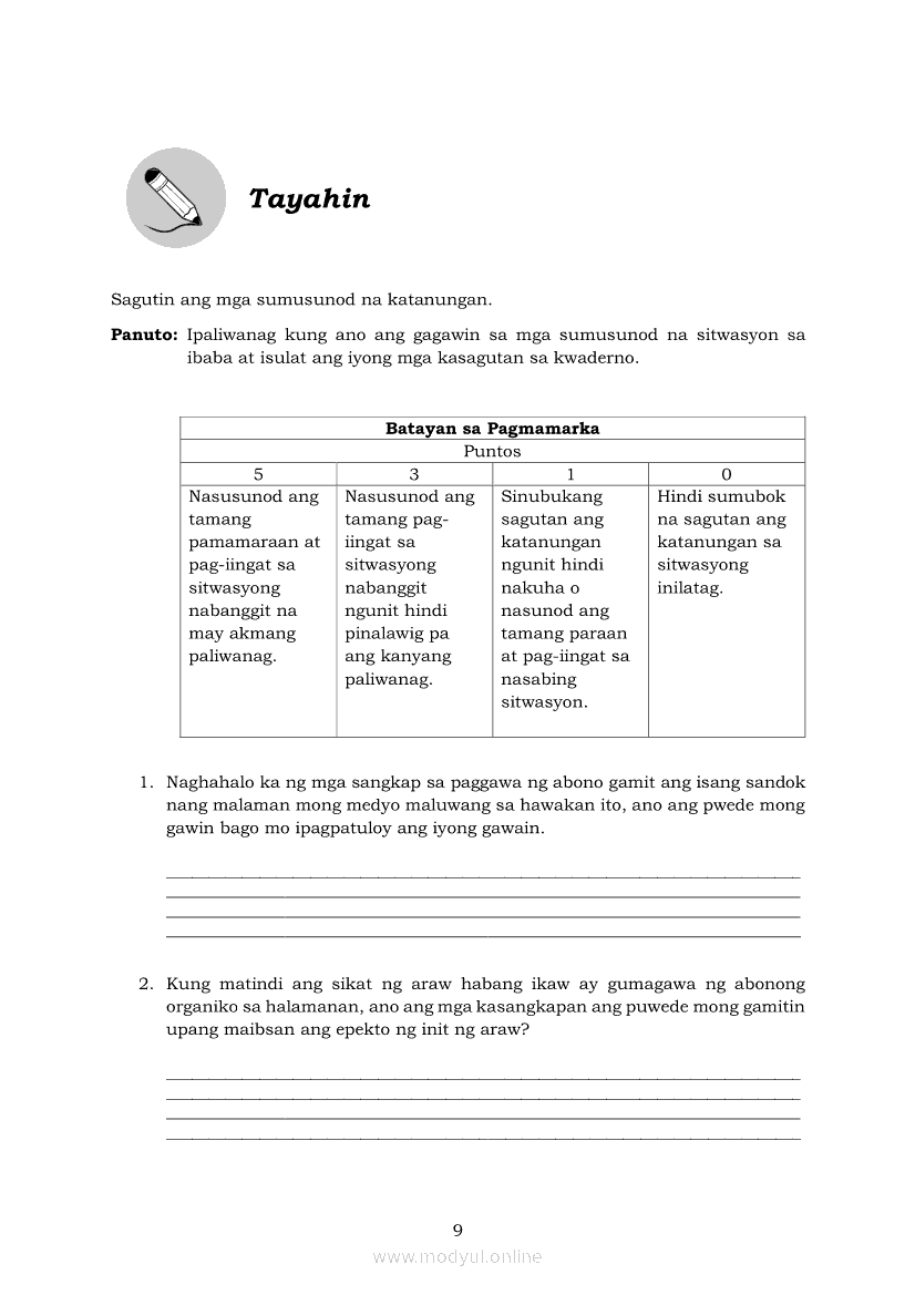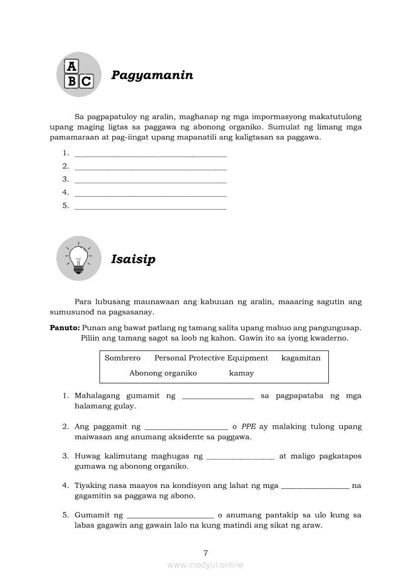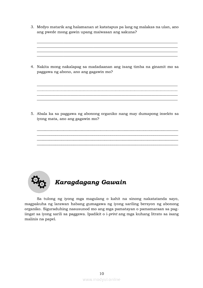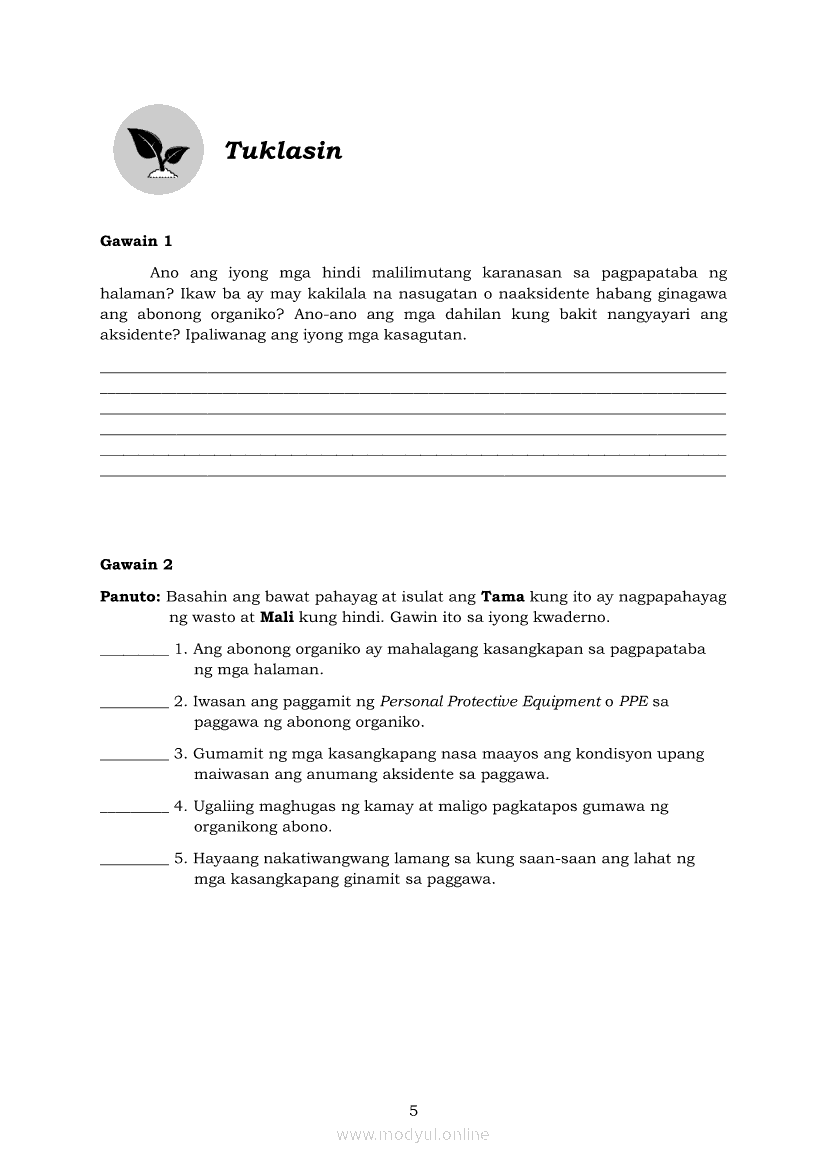 Edukasyong Pantahanan at Pangkabuhayan 5 Agrikultura - Modyul 1- Aralin 2: “Ligtas Sa Paggawa ng Abonong Organiko”Apr 22, 2021 Grade 5Kiumo M901 Tablet for Kids — comprehensive protection in learning, safety, and entertainment for as low as **₱2,399!. Edukasyong Pantahanan at Pangkabuhayan 5RelatedEPP - ICT Markahan 4 - Modyul 7: Pagsali sa Discussion Forum at Chat sa Ligtas at Responsableng PamamaraanEPP - ICT Markahan 4 - Modyul 2: Kahulugan at Pagkakaiba ng Produkto at SerbisyoEPP - ICT Markahan 4 - Modyul 1: Oportunidad na Maaaring Pagkakitaan (Produkto at Serbisyo) sa Tahanan at PamayananEPP - ICT Markahan 4 - Modyul 5: Pagbebenta ng Natatanging PanindaEPP - ICT Markahan 4 - Modyul 8: Pangangalap at Pagsusuri ng Impormasyon Gamit ang ICT
