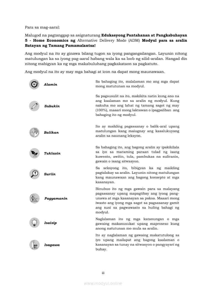 Edukasyong Pantahanan at Pangkabuhayan 5 Home Economics – Modyul 4: Mga Bahagi ng Makinang De-PadyakApr 22, 2021 Grade 5Kiumo M901 Tablet for Kids — comprehensive protection in learning, safety, and entertainment for as low as **₱2,399!. Edukasyong Pantahanan at Pangkabuhayan 5RelatedEPP - ICT Markahan 4 - Modyul 3: Mga Taong Nangangailangan ng Angkop na Produkto at SerbisyoEPP - ICT Markahan 4 - Modyul 1: Oportunidad na Maaaring Pagkakitaan (Produkto at Serbisyo) sa Tahanan at PamayananEPP - ICT Markahan 4 - Modyul 7: Pagsali sa Discussion Forum at Chat sa Ligtas at Responsableng PamamaraanEPP - ICT Markahan 4 - Modyul 5: Pagbebenta ng Natatanging PanindaEPP - ICT Markahan 4 - Modyul 2: Kahulugan at Pagkakaiba ng Produkto at Serbisyo