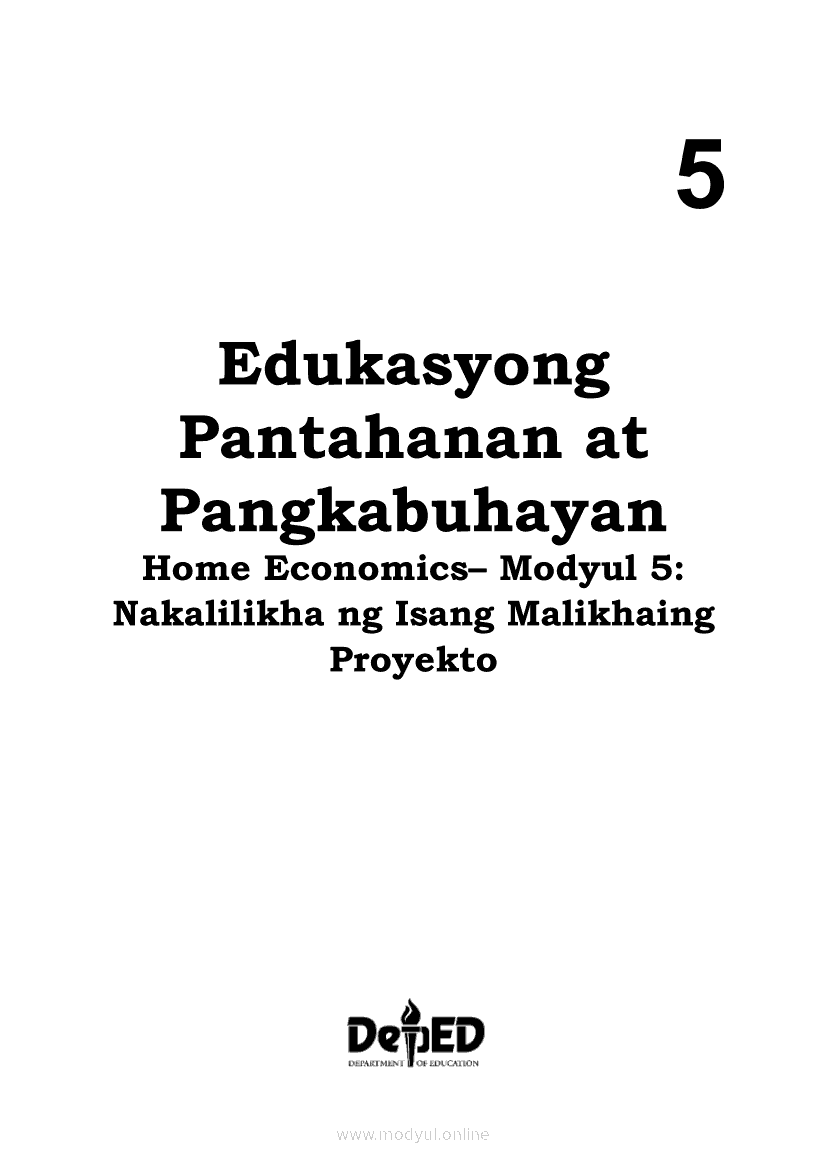 Edukasyong Pantahanan at Pangkabuhayan 5 Home Economics – Modyul 5: Nakalilikha ng Isang Malikhaing ProyektoApr 22, 2021 Grade 5Kiumo M901 Tablet for Kids — comprehensive protection in learning, safety, and entertainment for as low as **₱2,399!. Edukasyong Pantahanan at Pangkabuhayan 5RelatedEPP - ICT Markahan 4 - Modyul 7: Pagsali sa Discussion Forum at Chat sa Ligtas at Responsableng PamamaraanEPP - ICT Markahan 4 - Modyul 6: Mga Panuntunan sa Pagsali sa Discussion Forum at ChatEPP - ICT Markahan 4 - Modyul 1: Oportunidad na Maaaring Pagkakitaan (Produkto at Serbisyo) sa Tahanan at PamayananEPP - ICT Markahan 4 - Modyul 2: Kahulugan at Pagkakaiba ng Produkto at SerbisyoEPP - ICT Markahan 4 - Modyul 3: Mga Taong Nangangailangan ng Angkop na Produkto at Serbisyo