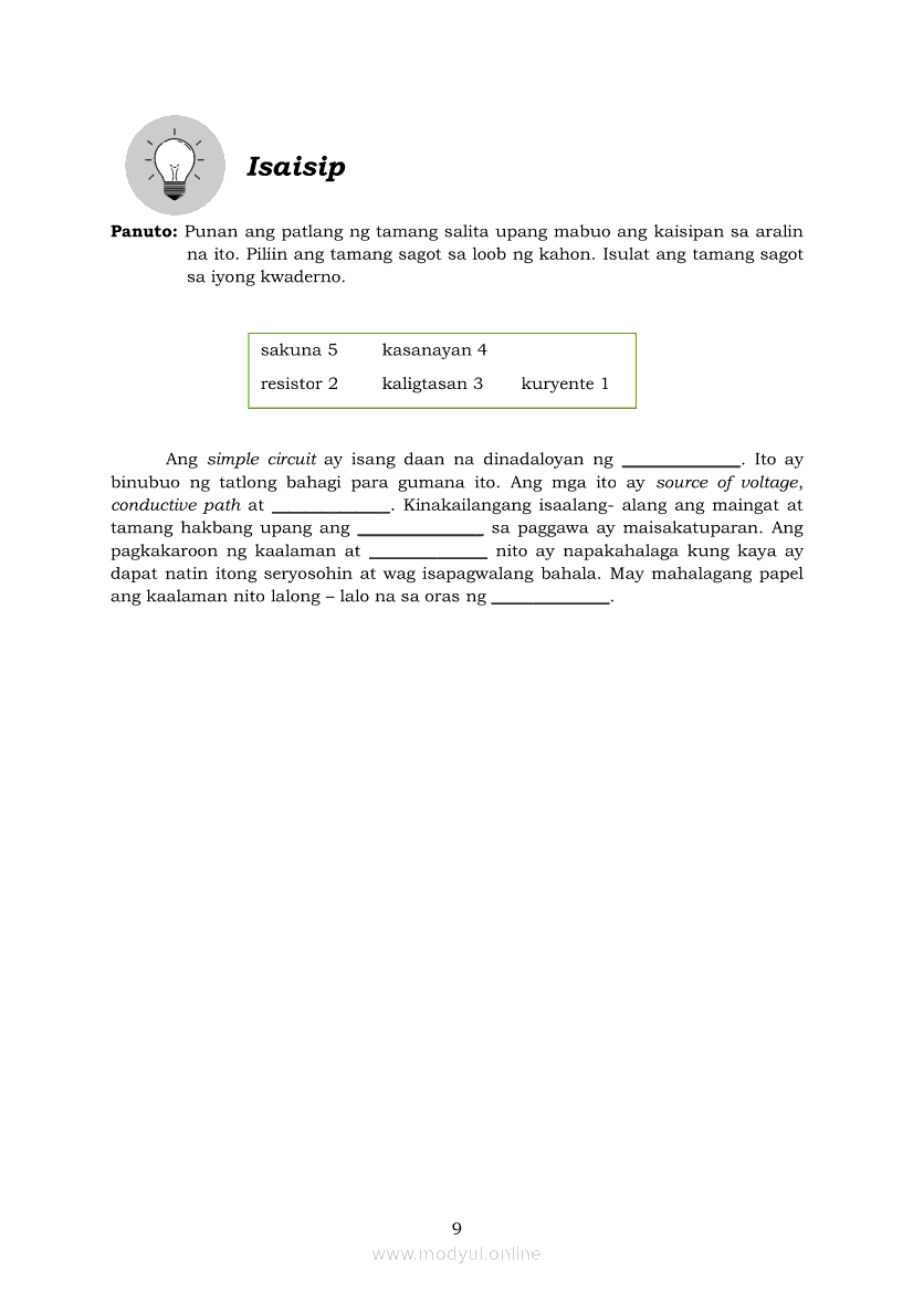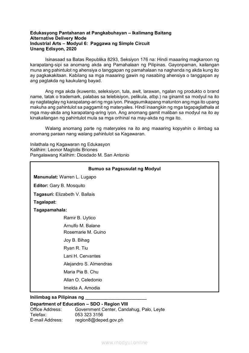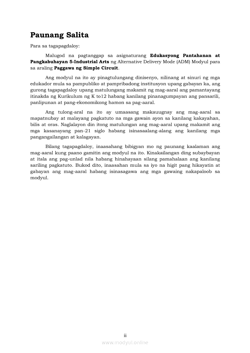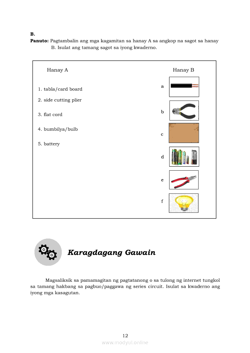 Edukasyong Pantahanan at Pangkabuhayan 5 Industrial Arts – Modyul 6: Paggawa ng Simple CircuitApr 22, 2021 Grade 5Kiumo M901 Tablet for Kids — comprehensive protection in learning, safety, and entertainment for as low as **₱2,399!. Edukasyong Pantahanan at Pangkabuhayan 5RelatedEPP - ICT Markahan 4 - Modyul 5: Pagbebenta ng Natatanging PanindaEPP - ICT Markahan 4 - Modyul 2: Kahulugan at Pagkakaiba ng Produkto at SerbisyoEPP - ICT Markahan 4 - Modyul 7: Pagsali sa Discussion Forum at Chat sa Ligtas at Responsableng PamamaraanEPP - ICT Markahan 4 - Modyul 1: Oportunidad na Maaaring Pagkakitaan (Produkto at Serbisyo) sa Tahanan at PamayananEPP - ICT Markahan 4 - Modyul 8: Pangangalap at Pagsusuri ng Impormasyon Gamit ang ICT