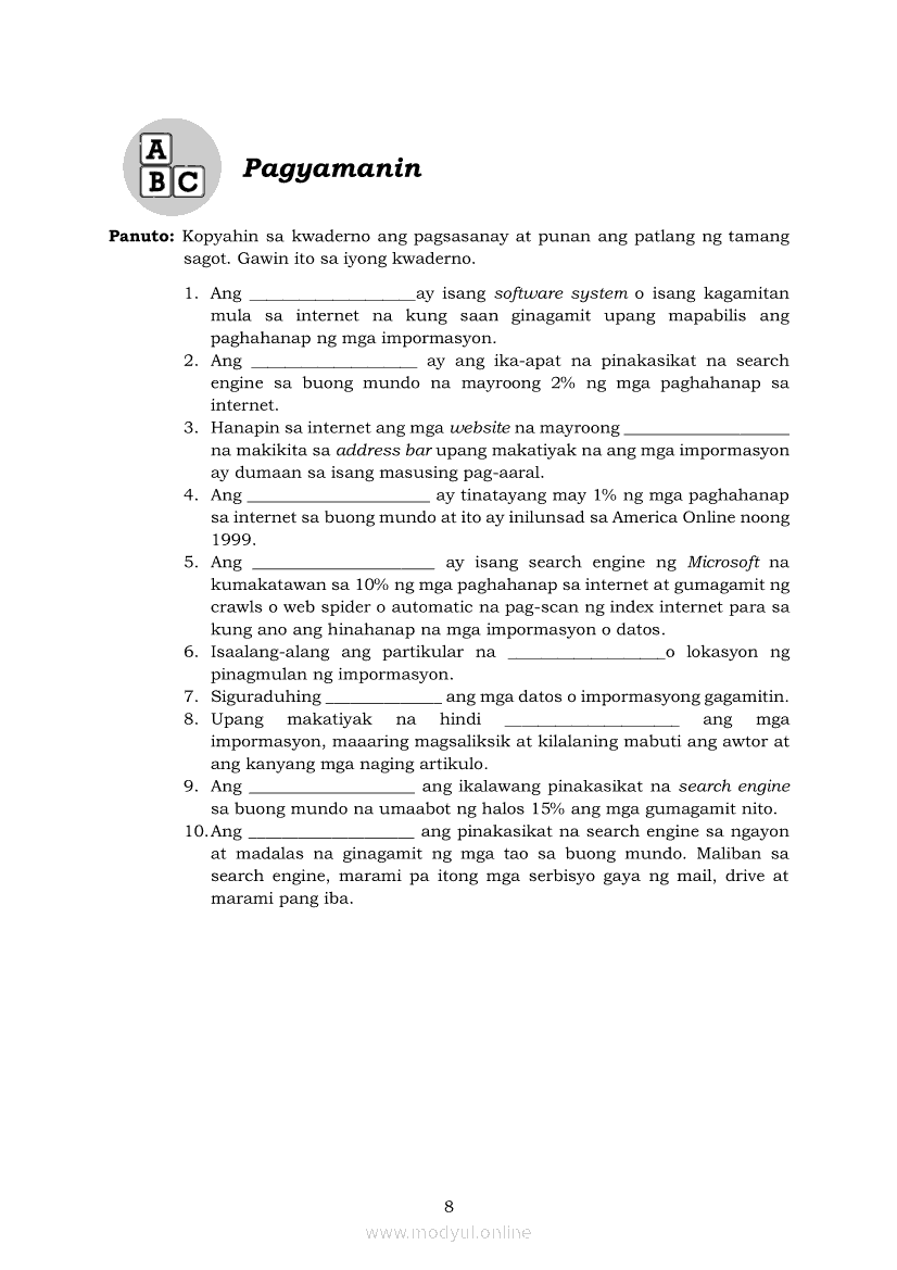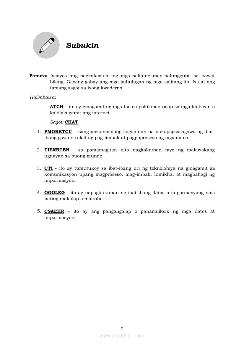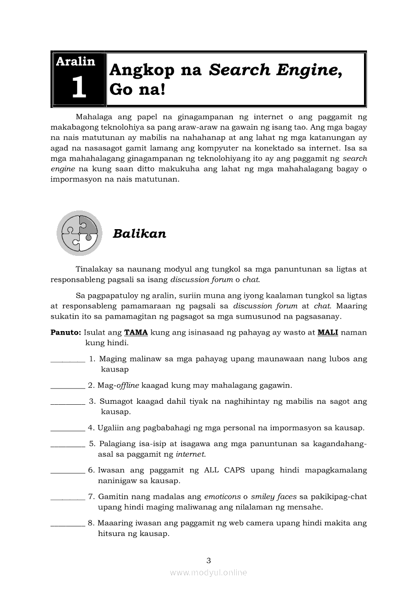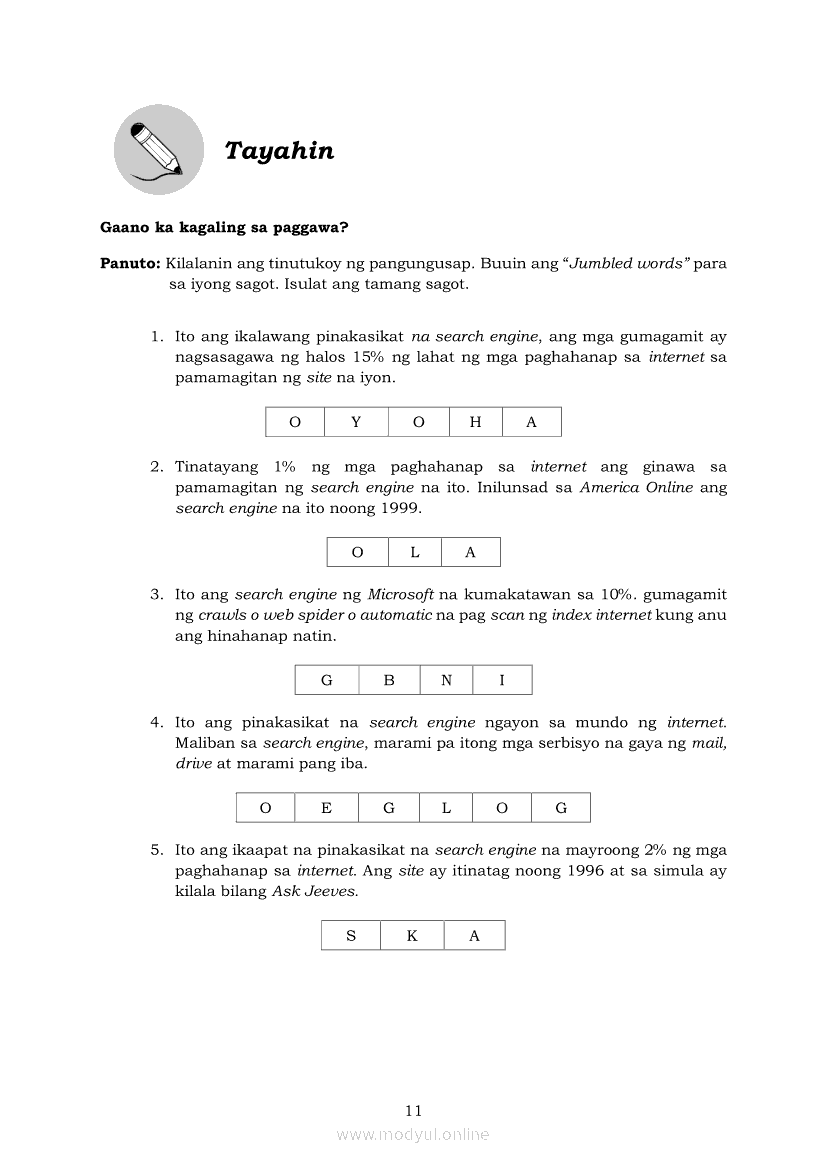 Edukasyong Pantahanan at Pangkabuhayan 5 Modyul 6: “Angkop na Search Engine, Go na!”Apr 22, 2021 Grade 5Kiumo M901 Tablet for Kids — comprehensive protection in learning, safety, and entertainment for as low as **₱2,399!. Edukasyong Pantahanan at Pangkabuhayan 5RelatedEPP - ICT Markahan 4 - Modyul 2: Kahulugan at Pagkakaiba ng Produkto at SerbisyoEPP - ICT Markahan 4 - Modyul 4: Mga Negosyong Maaaring Pagkakitaan sa Tahanan at PamayananEPP - ICT Markahan 4 - Modyul 7: Pagsali sa Discussion Forum at Chat sa Ligtas at Responsableng PamamaraanEPP - ICT Markahan 4 - Modyul 5: Pagbebenta ng Natatanging PanindaEPP - ICT Markahan 4 - Modyul 8: Pangangalap at Pagsusuri ng Impormasyon Gamit ang ICT