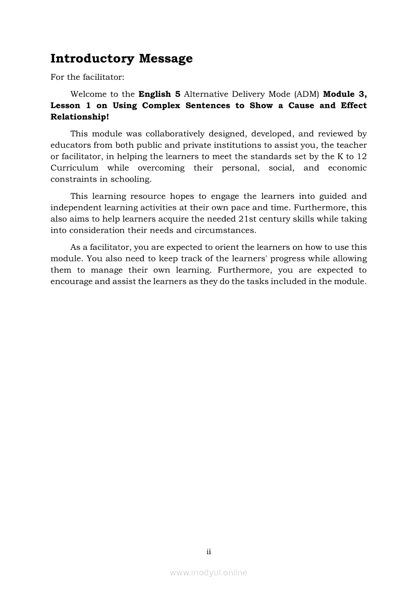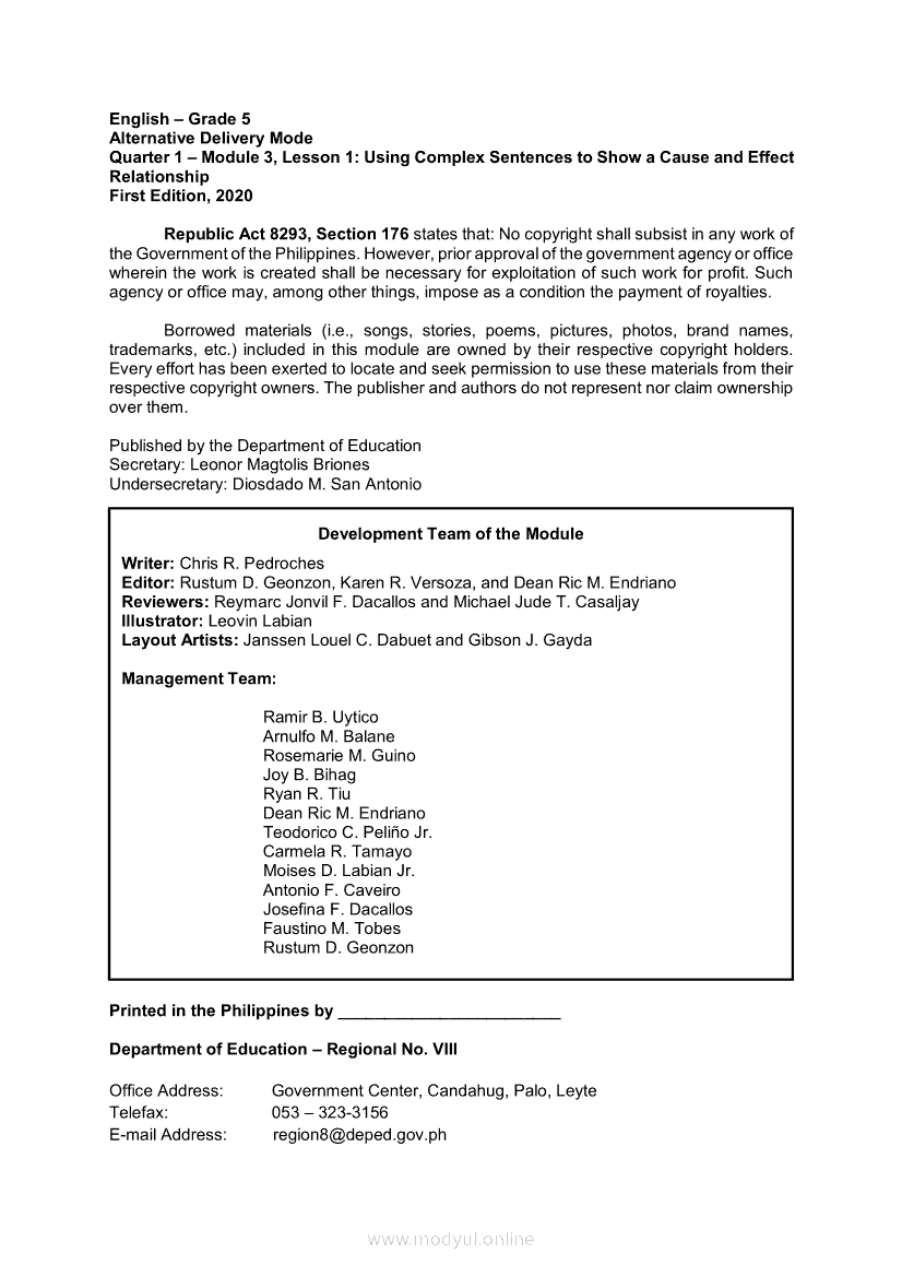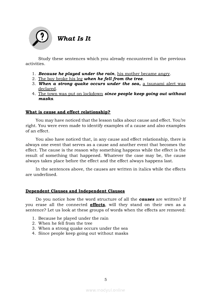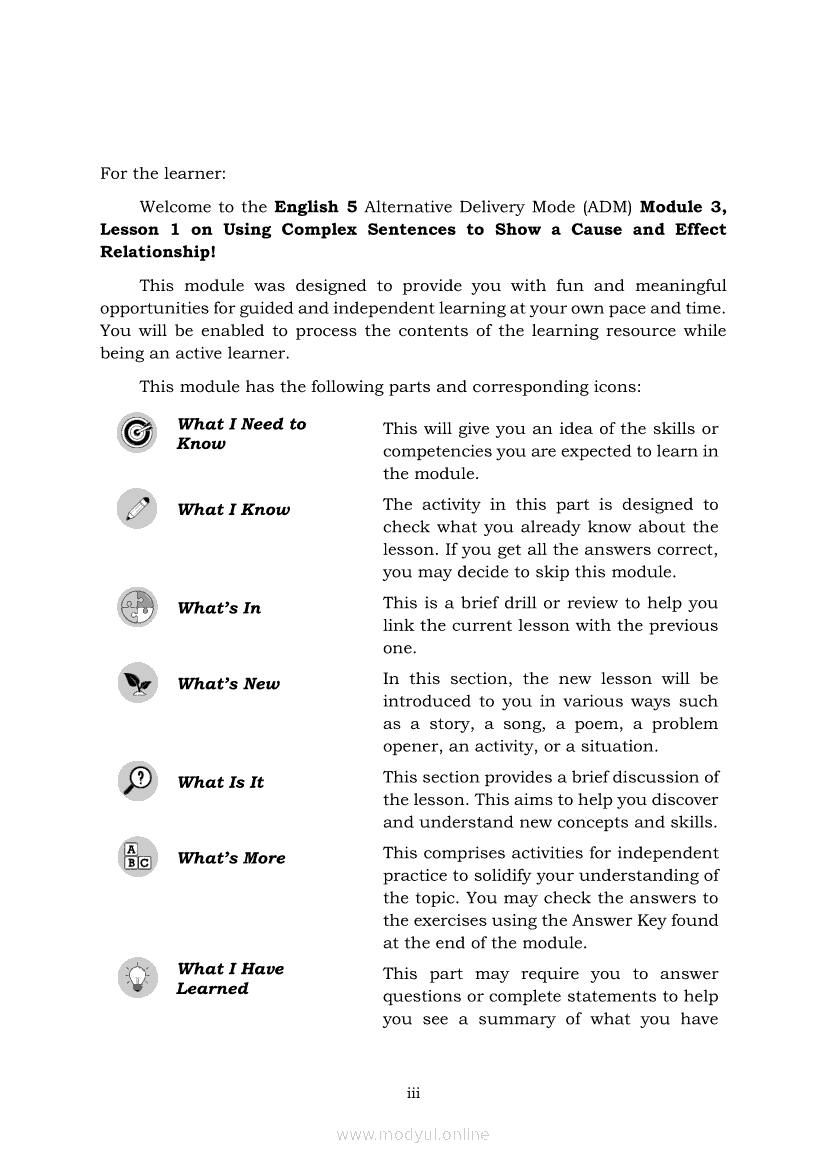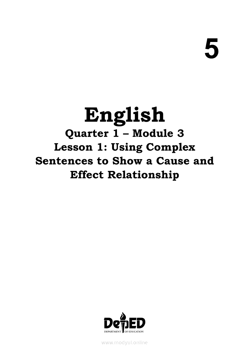 English 5 Module 3 Lesson 1: Using Complex Sentences to Show a Cause and Effect RelationshipApr 22, 2021 Grade 5Kiumo M901 Tablet for Kids — comprehensive protection in learning, safety, and entertainment for as low as **₱2,399!. English 5RelatedEnglish Quarter 4 – Module 3: Writing a Paragraph Showing Problem-Solution RelationshipEnglish 5 Module 3 Lesson 2: Using Compound Sentences to Show a ProblemSolution RelationshipEnglish 5 Module 4 Lesson 1: Composing Inverted Sentences with Correct Subject and Verb AgreementEnglish 5 Module 2 Lesson 4: Inferring the Meaning of Clipped Words Using Context CluesEnglish 5 Module 2 Lesson 2: Inferring the Meaning of Words with Affixes Using Context Clues