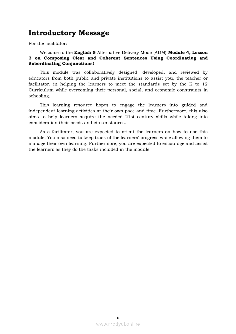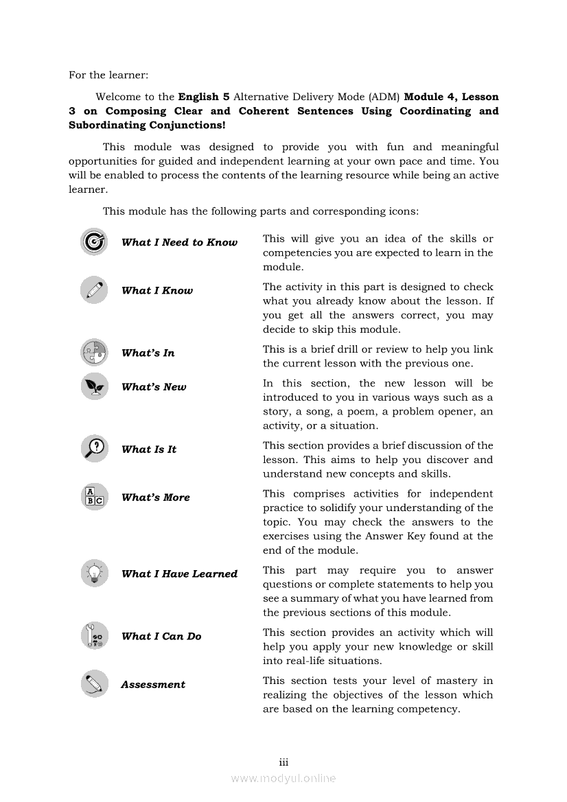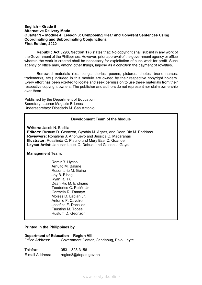 English 5 Module 4 Lesson 3: Composing Clear and Coherent Sentences Using Coordinating and Subordinating ConjunctionsApr 22, 2021 Grade 5Kiumo M901 Tablet for Kids — comprehensive protection in learning, safety, and entertainment for as low as **₱2,399!. English 5RelatedEnglish Quarter 4 – Module 3: Writing a Paragraph Showing Problem-Solution RelationshipEnglish 5 Module 2 Lesson 1: Inferring the Meaning of Compound Words Using Context CluesEnglish 5 Module 3 Lesson 2: Using Compound Sentences to Show a ProblemSolution RelationshipEnglish 5 Module 4 Lesson 1: Composing Inverted Sentences with Correct Subject and Verb AgreementEnglish 5 Module 2 Lesson 2: Inferring the Meaning of Words with Affixes Using Context Clues