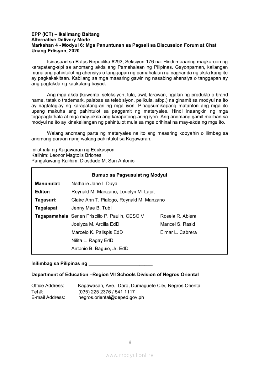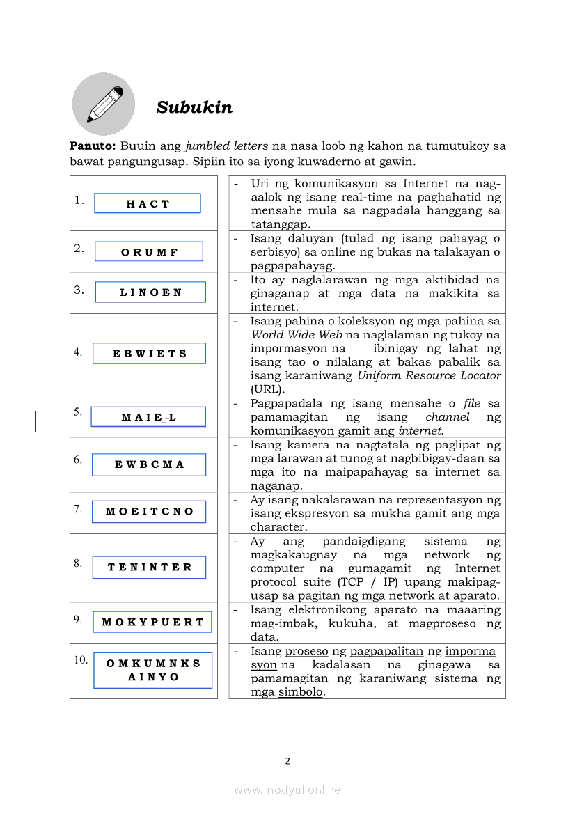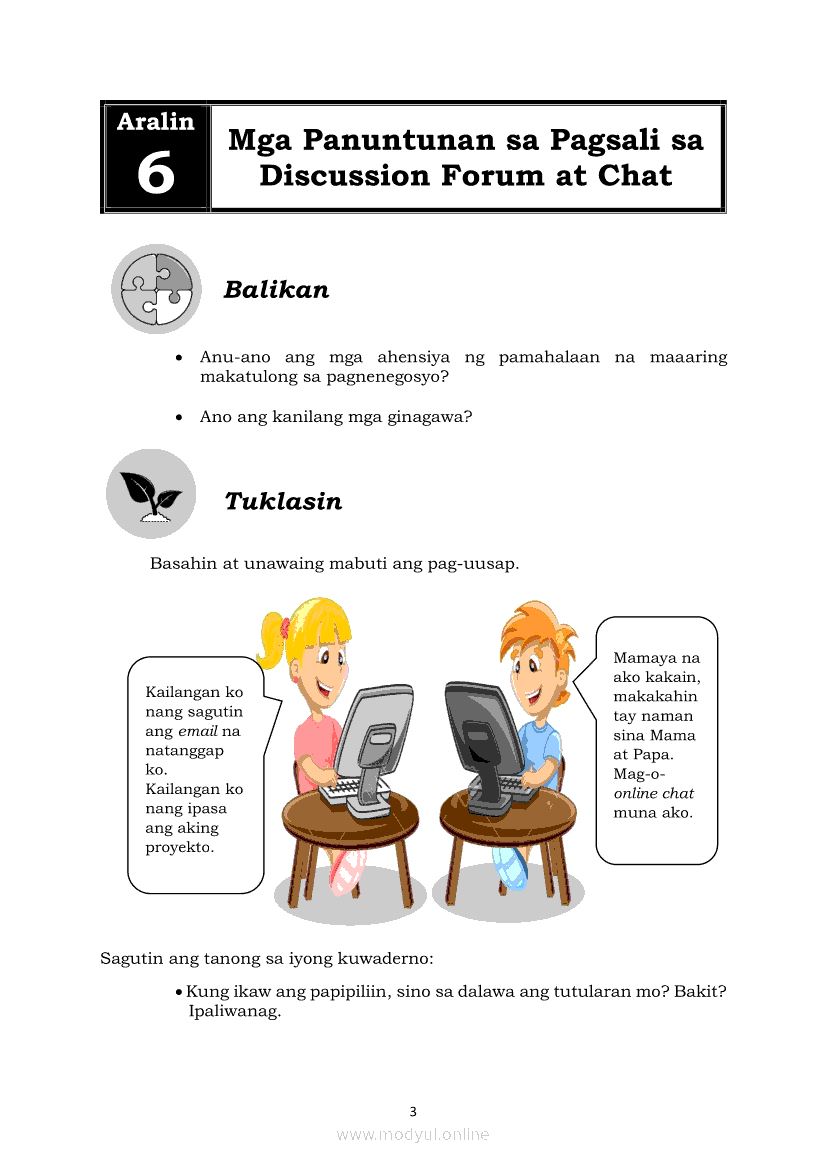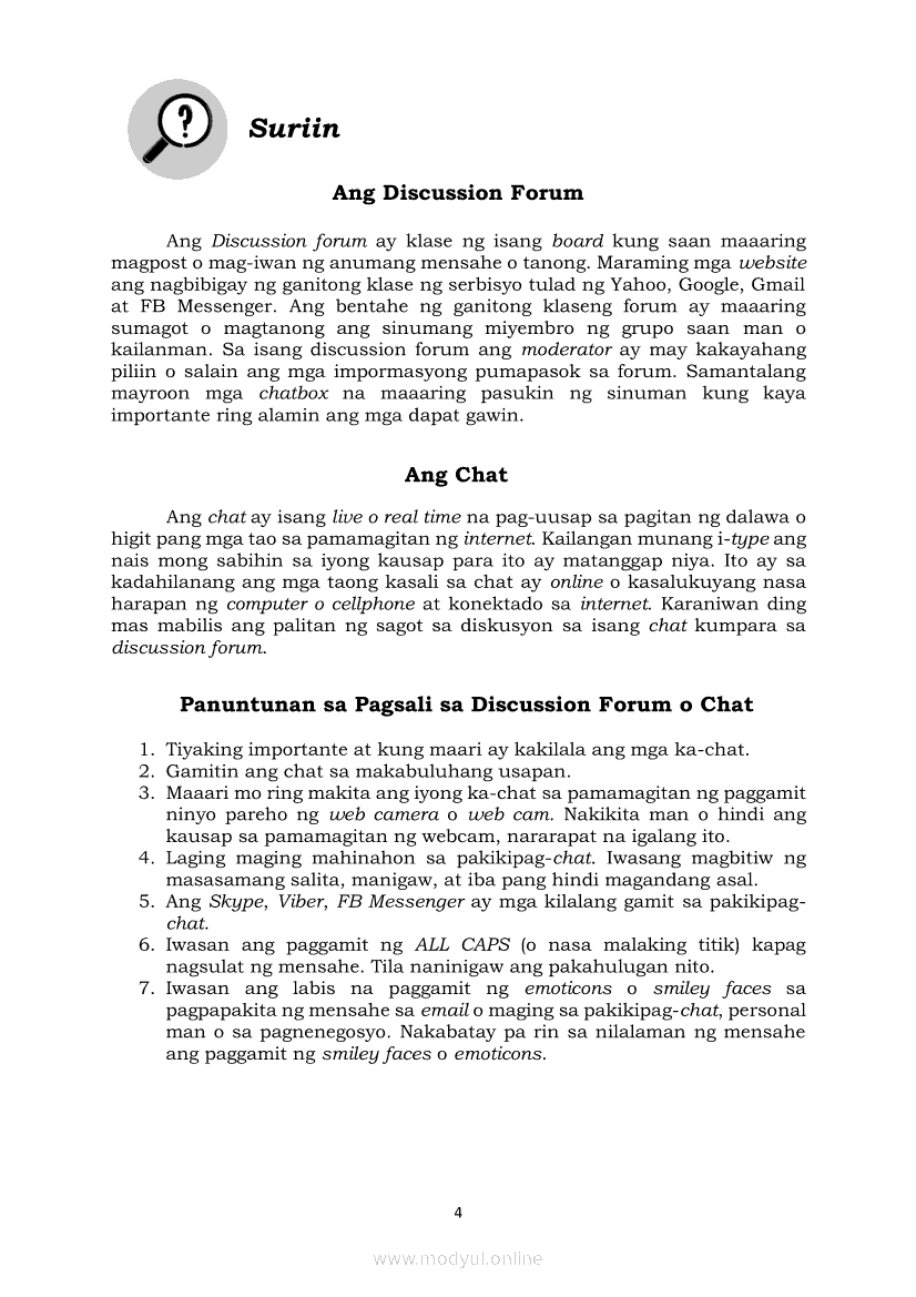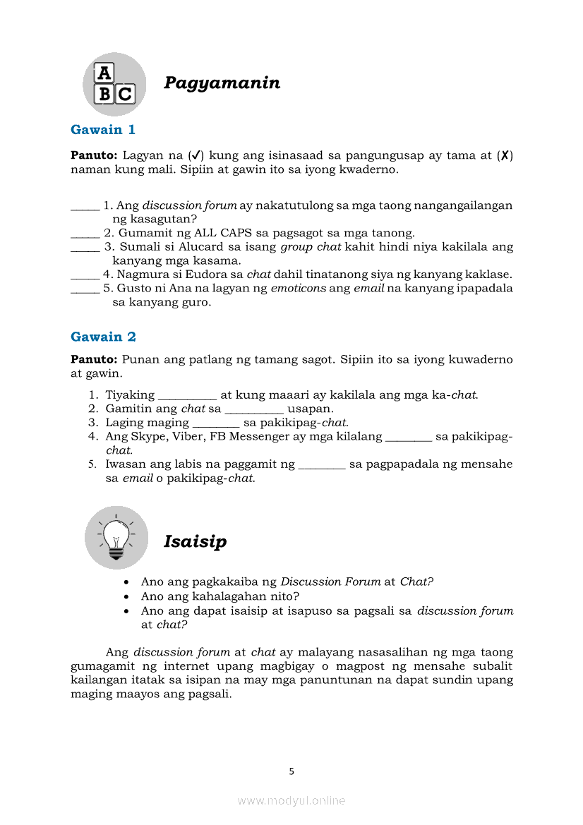 Filipino 5 Ikaapat na Markahan – Modyul 1 Paggawa ng Dayagram ng Ugnayang Sanhi at Bunga Mula sa Tekstong Napakinggan o NabasaMay 26, 2021 Grade 5Kiumo M901 Tablet for Kids — comprehensive protection in learning, safety, and entertainment for as low as **₱2,399!. Filipino 5 4th QuarterRelatedFilipino 5 Ikaapat na Markahan – Modyul 2 Paggamit ng Iba’t Ibang Uri ng Pangungusap sa Pagsasalaysay ng Napakinggang Balita at Pakikipagdebate Tungkol sa Isang IsyuEPP - ICT Markahan 4 - Modyul 1: Oportunidad na Maaaring Pagkakitaan (Produkto at Serbisyo) sa Tahanan at PamayananAraling Panlipunan Ikaapat na Markahan – Modyul 4: Pananaw at Paniniwala ng mga Sultanato sa Pagpapanatili ng Kanilang Kalayaan (Ikalawang Bahagi)EPP - ICT Markahan 4 - Modyul 7: Pagsali sa Discussion Forum at Chat sa Ligtas at Responsableng PamamaraanHEALTH Ikaapat na Markahan – Modyul 4b: Pangunang Lunas para sa mga Karaniwang Pinsala at Kondisyon