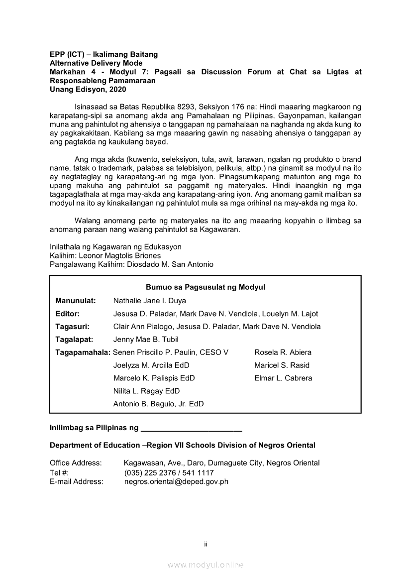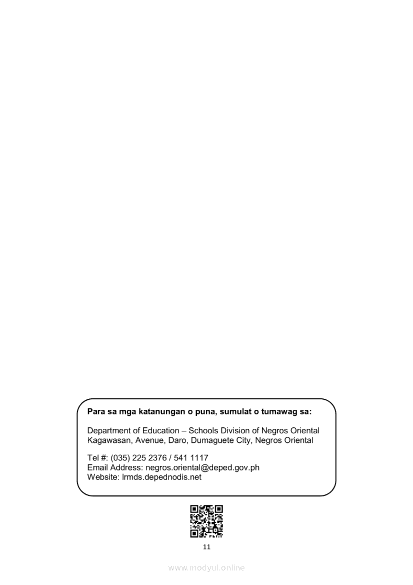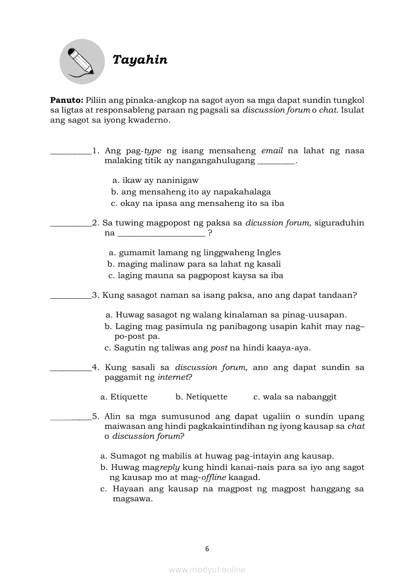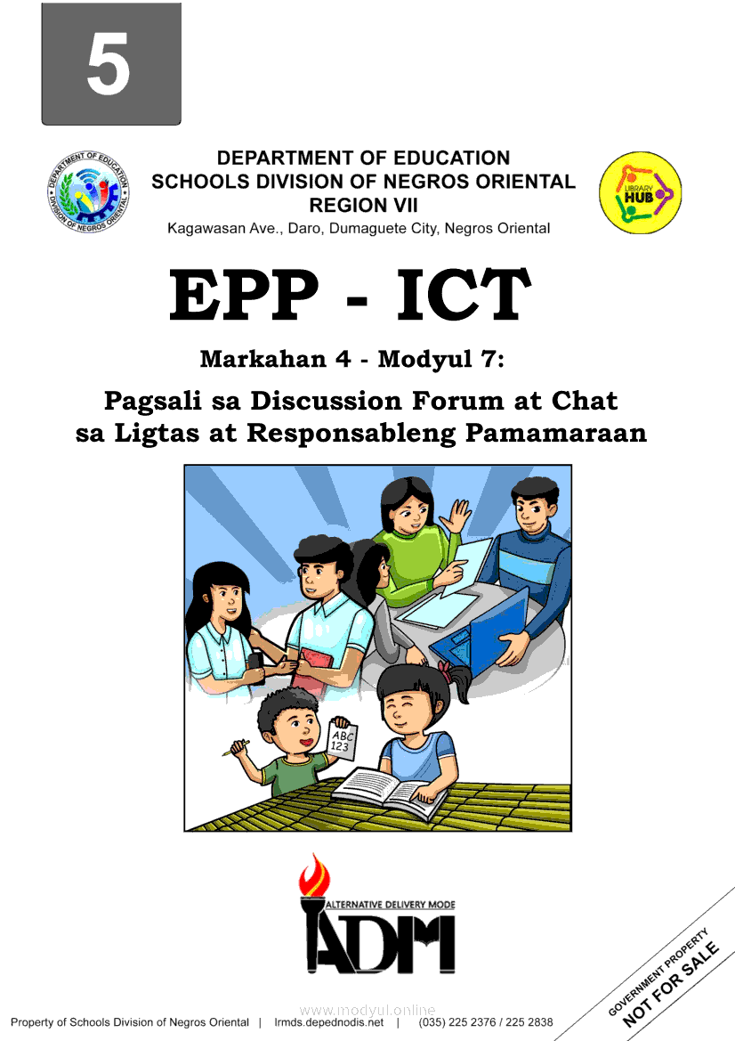 Filipino 5 Ikaapat na Markahan – Modyul 2 Paggamit ng Iba’t Ibang Uri ng Pangungusap sa Pagsasalaysay ng Napakinggang Balita at Pakikipagdebate Tungkol sa Isang IsyuMay 26, 2021 Grade 5Kiumo M901 Tablet for Kids — comprehensive protection in learning, safety, and entertainment for as low as **₱2,399!. Filipino 5 4th QuarterRelatedFilipino 5 Ikaapat na Markahan – Modyul 1 Paggawa ng Dayagram ng Ugnayang Sanhi at Bunga Mula sa Tekstong Napakinggan o NabasaAraling Panlipunan Ikaapat na Markahan – Modyul 5: Mga Naunang Pag-aalsa Laban sa mga EspanyolMATHEMATICS Quarter 4 - Module 6 Solving Routine, Non-Routine Problems and Drawing Inferences Based on the Data Presented in a Line GraphAraling Panlipunan Ikaapat na Markahan – Modyul 4: Pananaw at Paniniwala ng mga Sultanato sa Pagpapanatili ng Kanilang Kalayaan (Ikalawang Bahagi)EPP - ICT Markahan 4 - Modyul 4: Mga Negosyong Maaaring Pagkakitaan sa Tahanan at Pamayanan