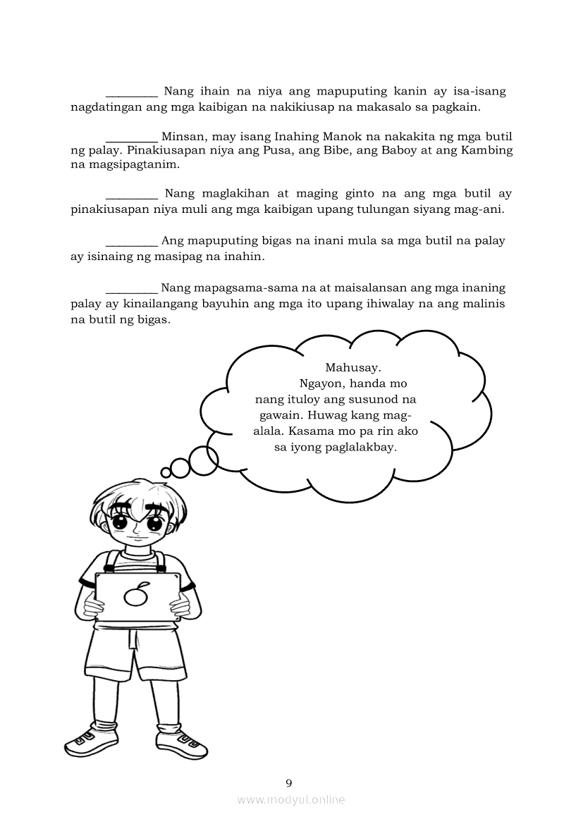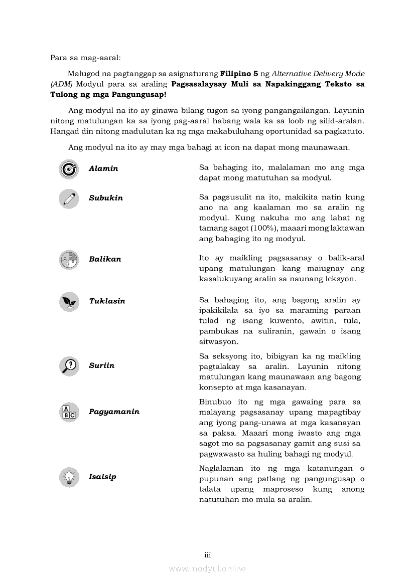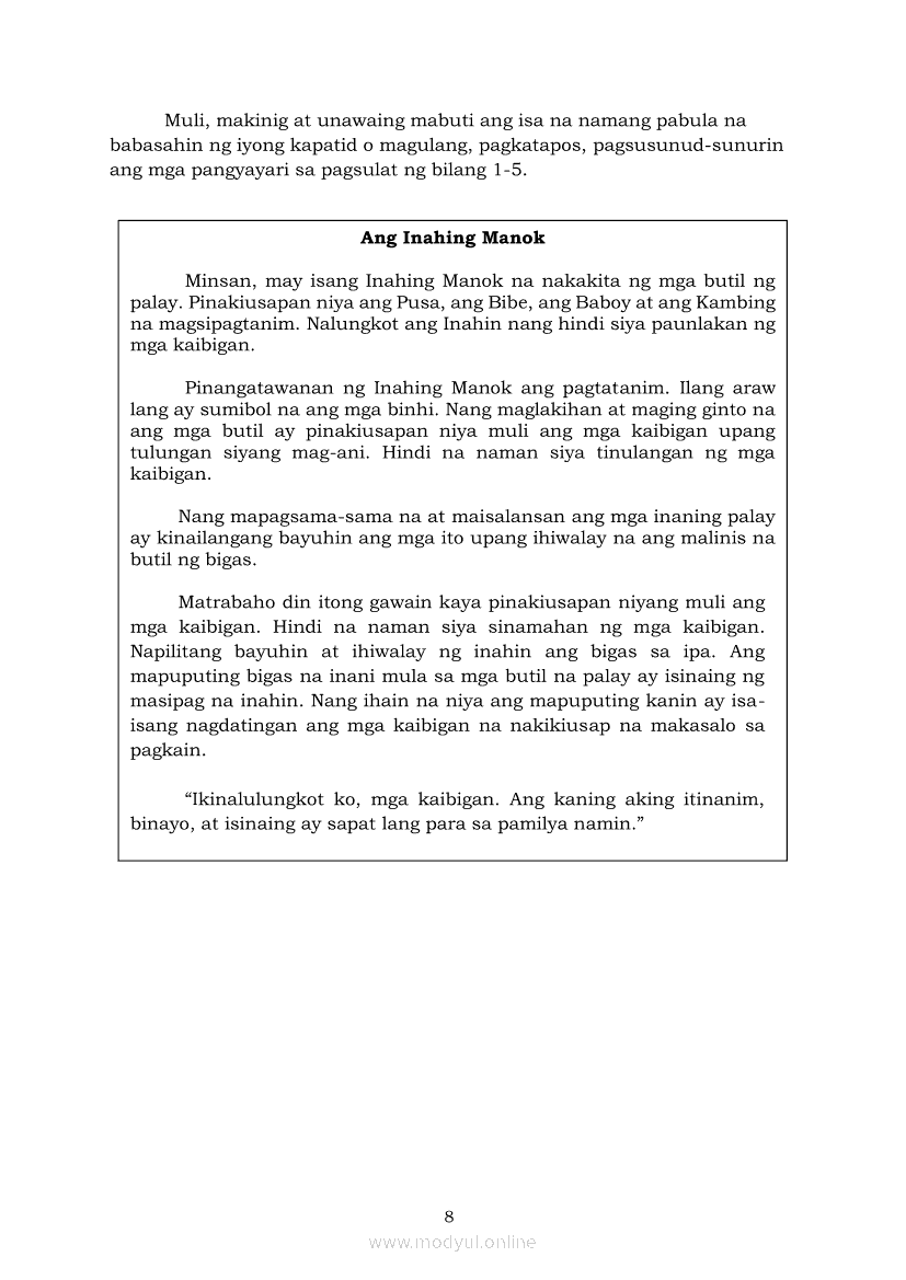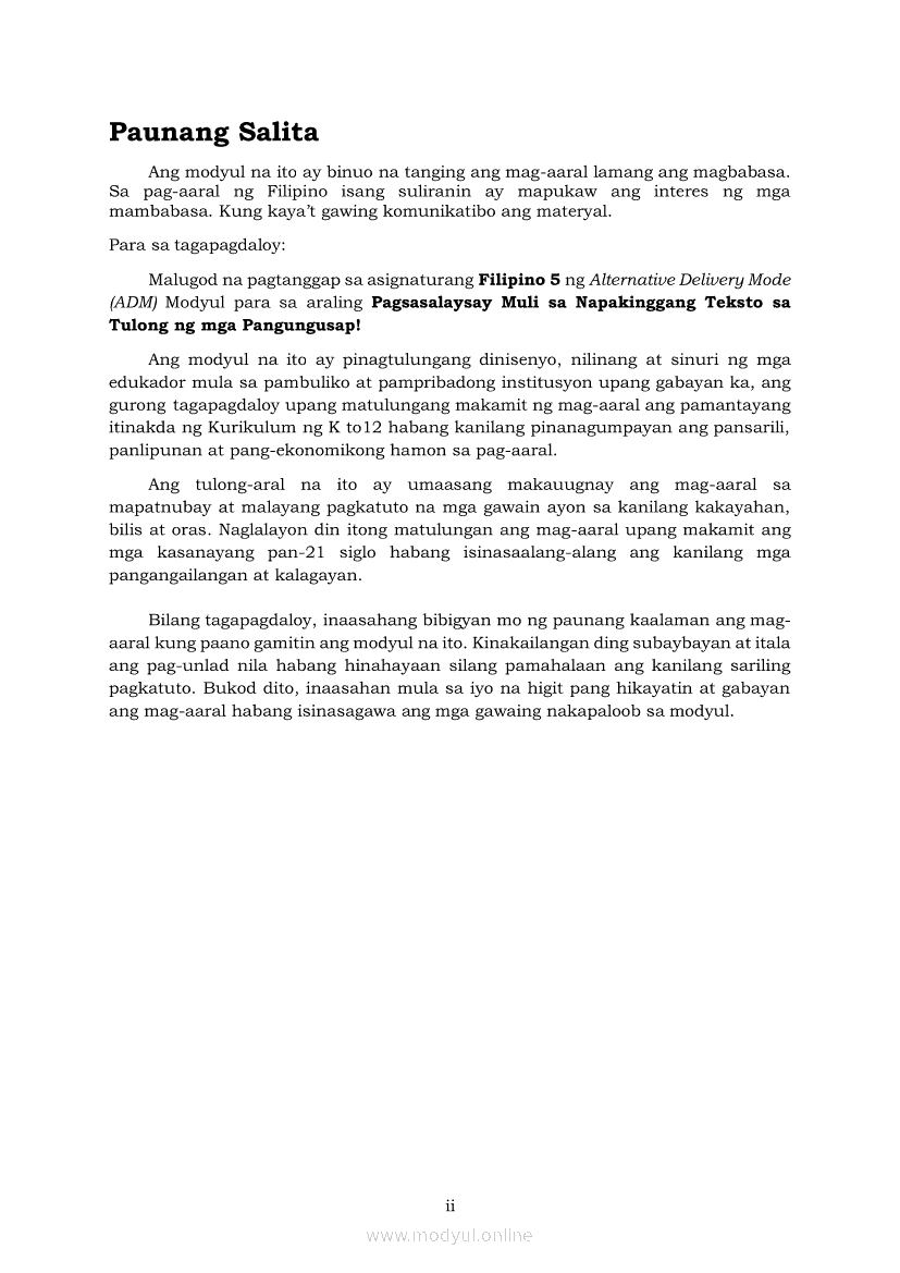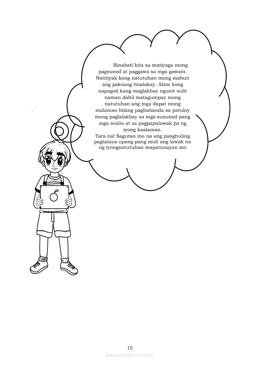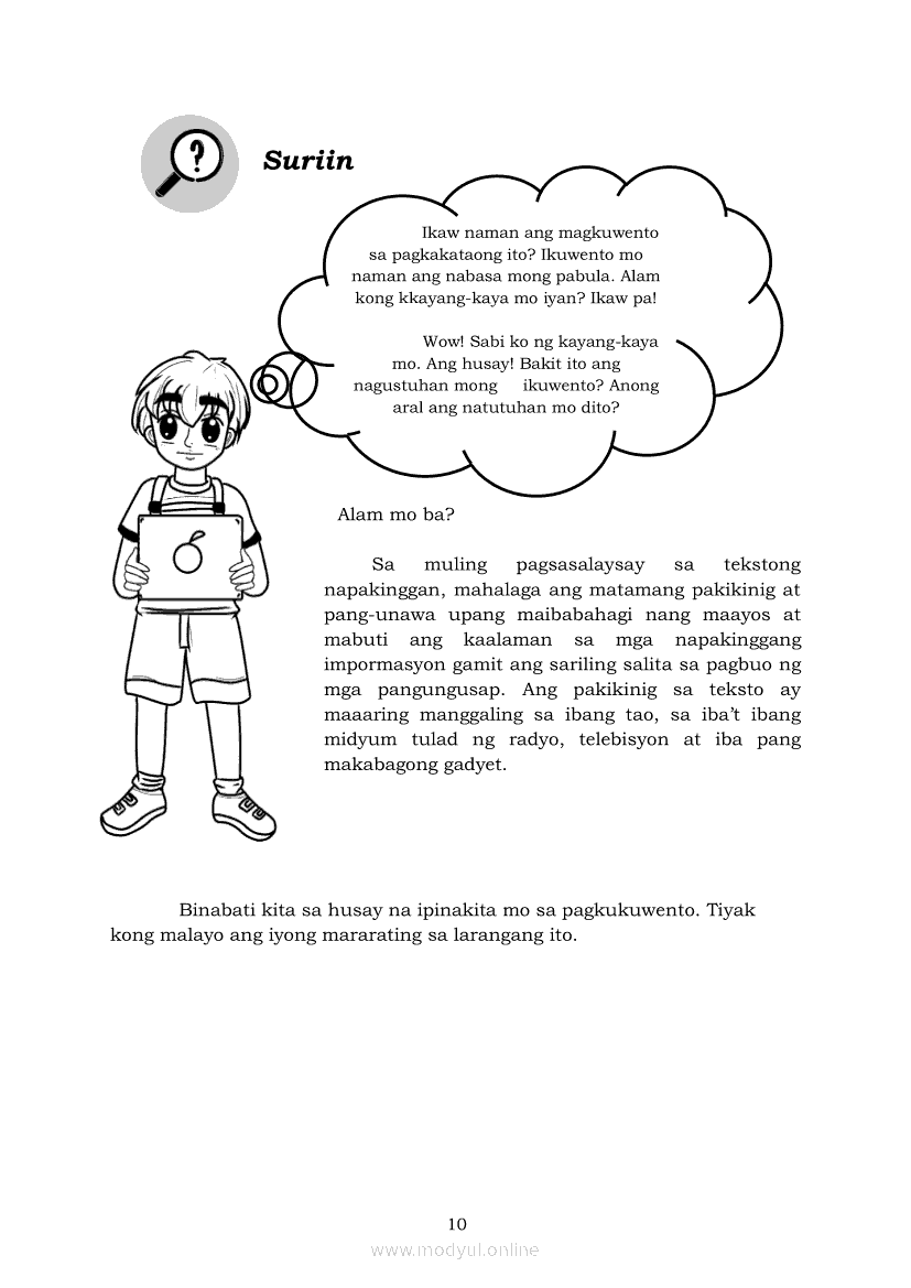 Filipino 5 Modyul 7: Pagsasalaysay Muli sa Napakinggang Teksto sa Tulong ng mga PangungusapApr 22, 2021 Grade 5Kiumo M901 Tablet for Kids — comprehensive protection in learning, safety, and entertainment for as low as **₱2,399!. Filipino 5RelatedFilipino 5 Ikaapat na Markahan – Modyul 2 Paggamit ng Iba’t Ibang Uri ng Pangungusap sa Pagsasalaysay ng Napakinggang Balita at Pakikipagdebate Tungkol sa Isang IsyuFilipino 5 Ikaapat na Markahan – Modyul 1 Paggawa ng Dayagram ng Ugnayang Sanhi at Bunga Mula sa Tekstong Napakinggan o NabasaFilipino 5 Ikalawang Markahan-Modyul 4 Pagbigkas nang may Wastong Tono, Diin, Antala at Damdamin sa Napakinggang TulaFilipino 5 Ikalawang Markahan-Modyul 3 Pagbibigay ng Paksa, Layunin o Angkop na Pamagat sa Napakinggang Kuwento, Usapan o Talata at sa Napanood na DokumentaryoFilipino 5 Modyul 10: Pagbibigay-kahulugan sa Bar Graph, Pie Graph, Talahanayan at Iba pa