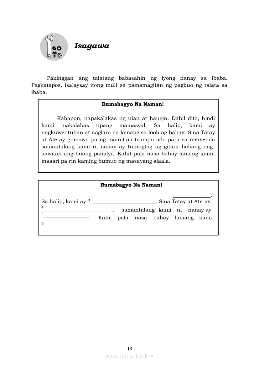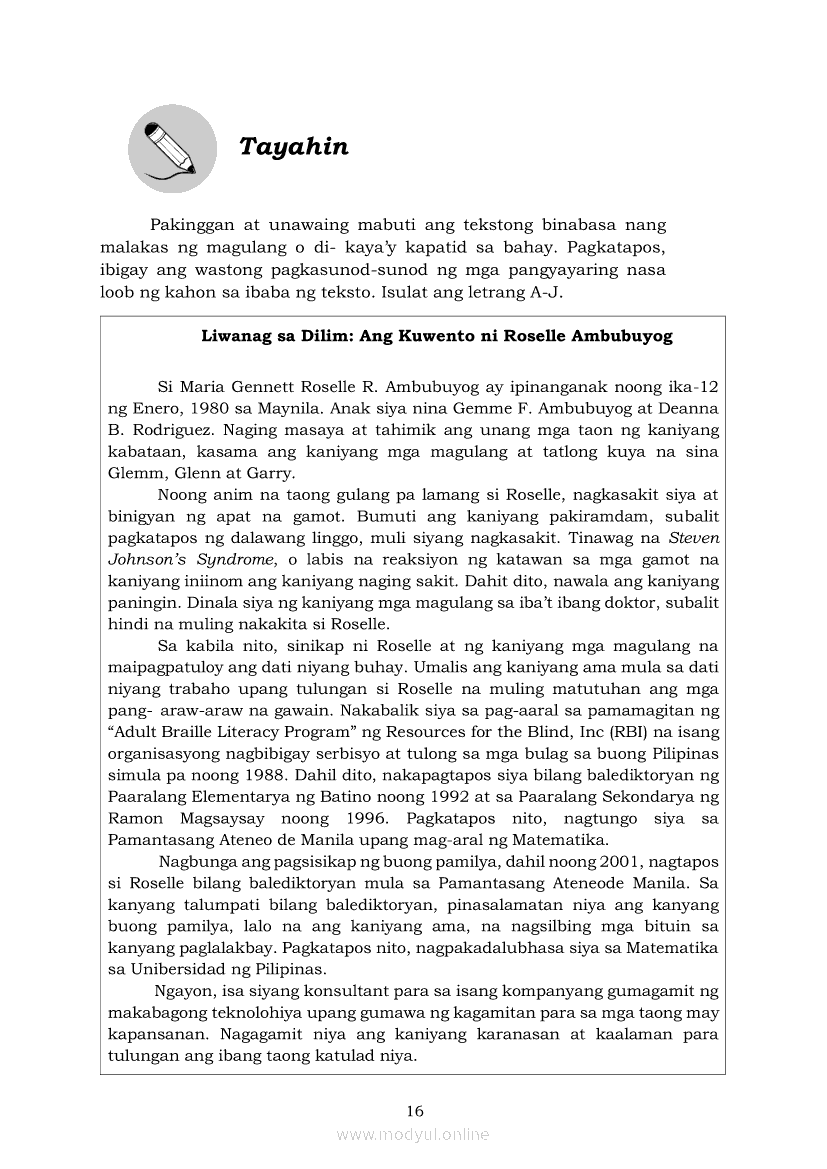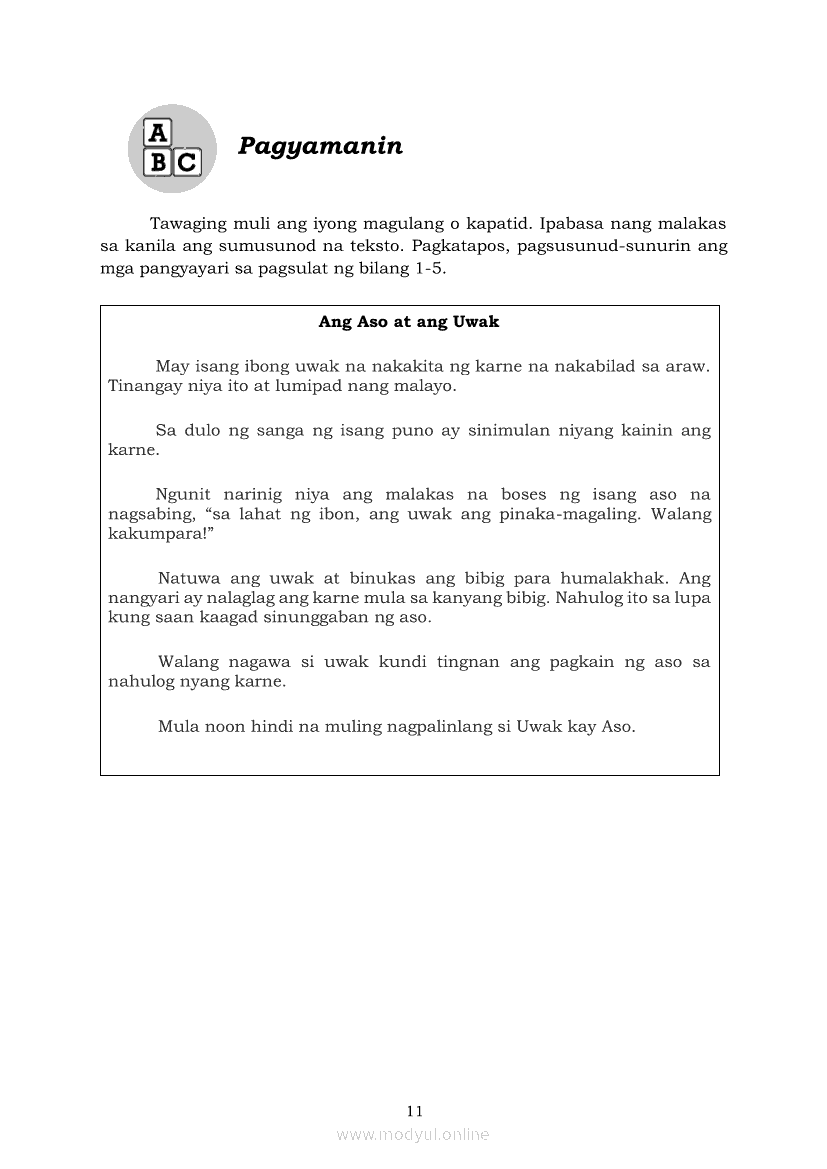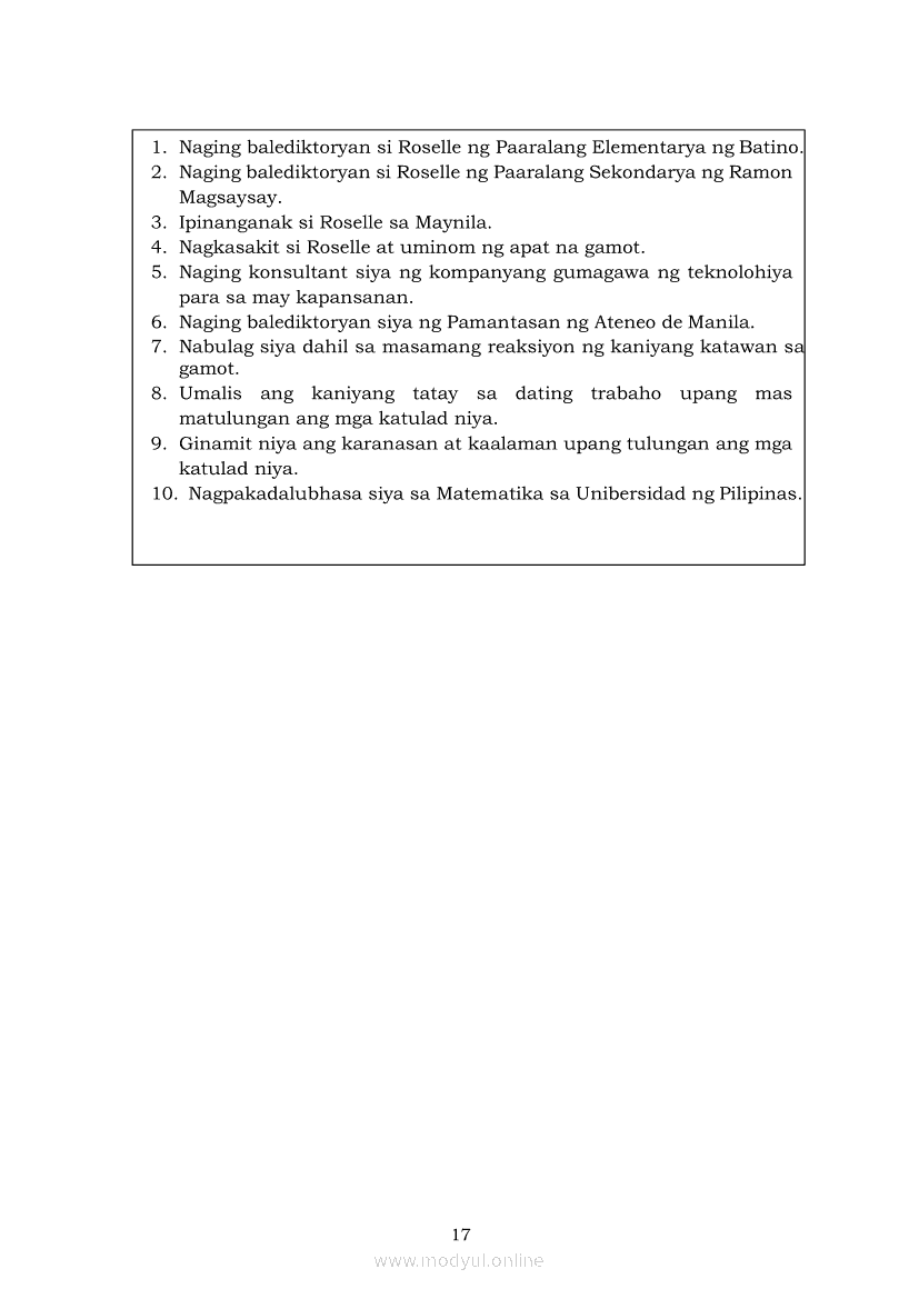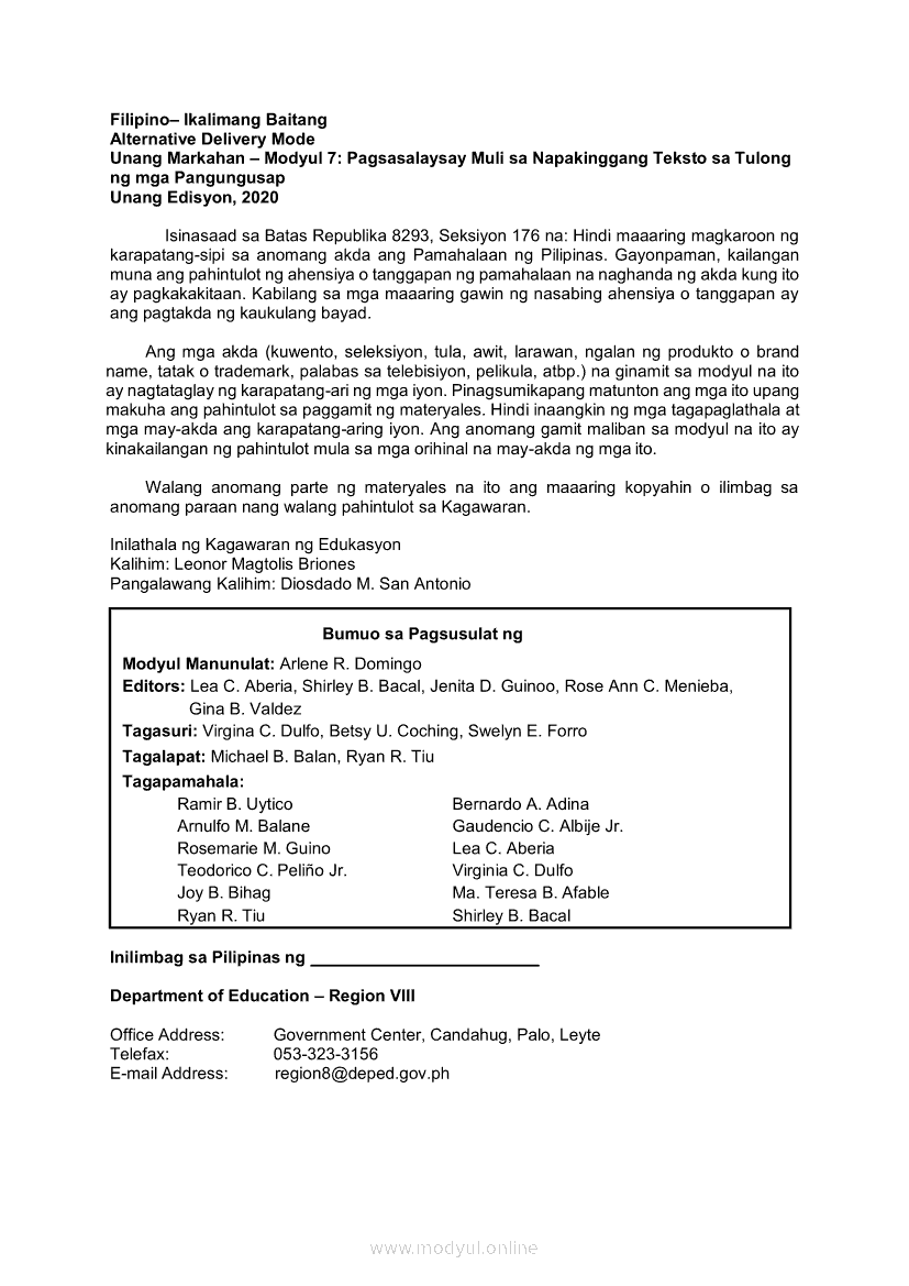 Filipino 5 Modyul 7: Pagsasalaysay Muli sa Napakinggang Teksto sa Tulong ng mga PangungusapApr 22, 2021 Grade 5Kiumo M901 Tablet for Kids — comprehensive protection in learning, safety, and entertainment for as low as **₱2,399!. Filipino 5RelatedFilipino 5 Ikaapat na Markahan – Modyul 2 Paggamit ng Iba’t Ibang Uri ng Pangungusap sa Pagsasalaysay ng Napakinggang Balita at Pakikipagdebate Tungkol sa Isang IsyuFilipino 5 Ikaapat na Markahan – Modyul 1 Paggawa ng Dayagram ng Ugnayang Sanhi at Bunga Mula sa Tekstong Napakinggan o NabasaFilipino 5 Ikalawang Markahan-Modyul 4 Pagbigkas nang may Wastong Tono, Diin, Antala at Damdamin sa Napakinggang TulaFilipino 5 Ikalawang Markahan-Modyul 3 Pagbibigay ng Paksa, Layunin o Angkop na Pamagat sa Napakinggang Kuwento, Usapan o Talata at sa Napanood na DokumentaryoFilipino 5 Modyul 10: Pagbibigay-kahulugan sa Bar Graph, Pie Graph, Talahanayan at Iba pa