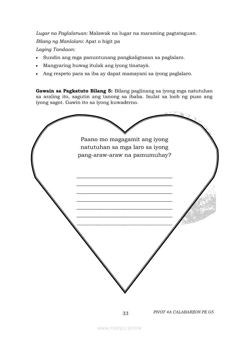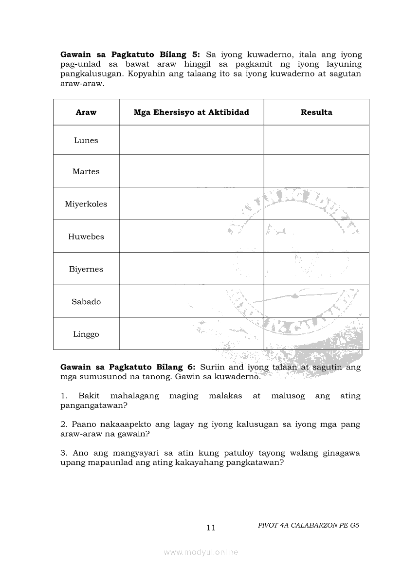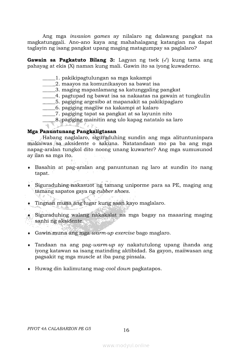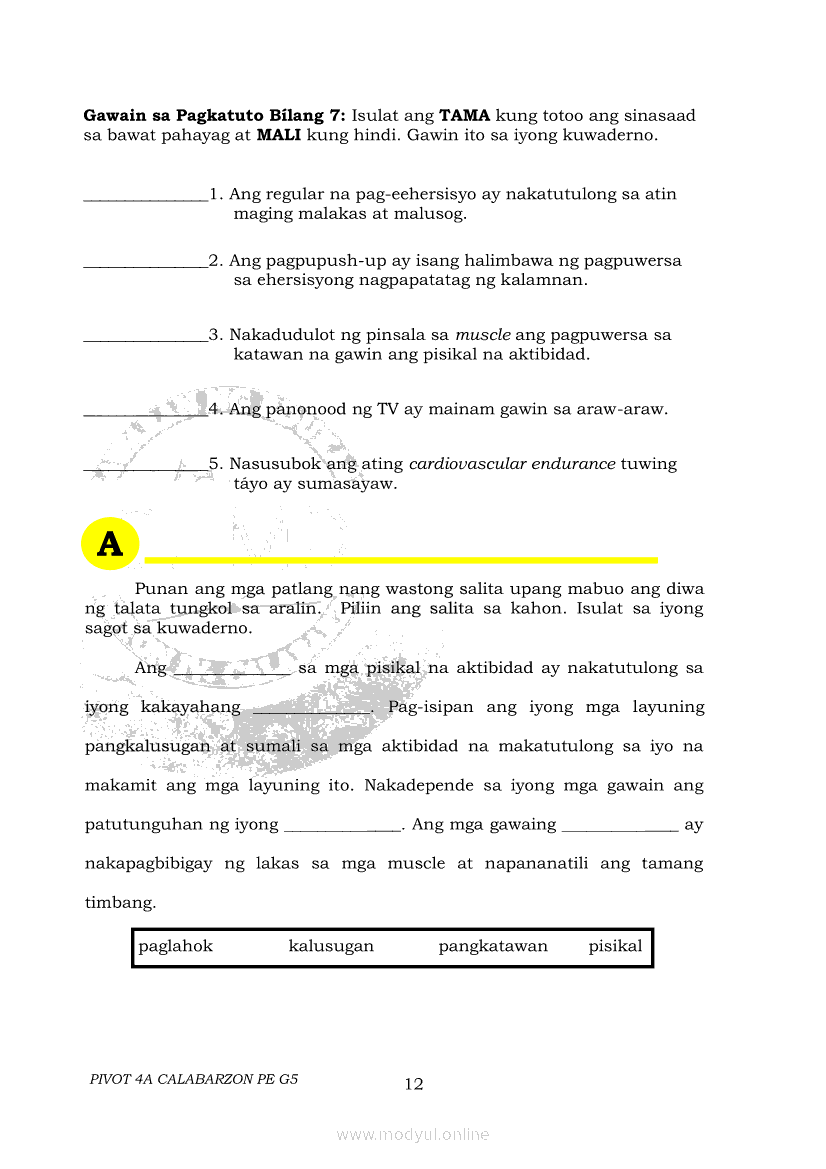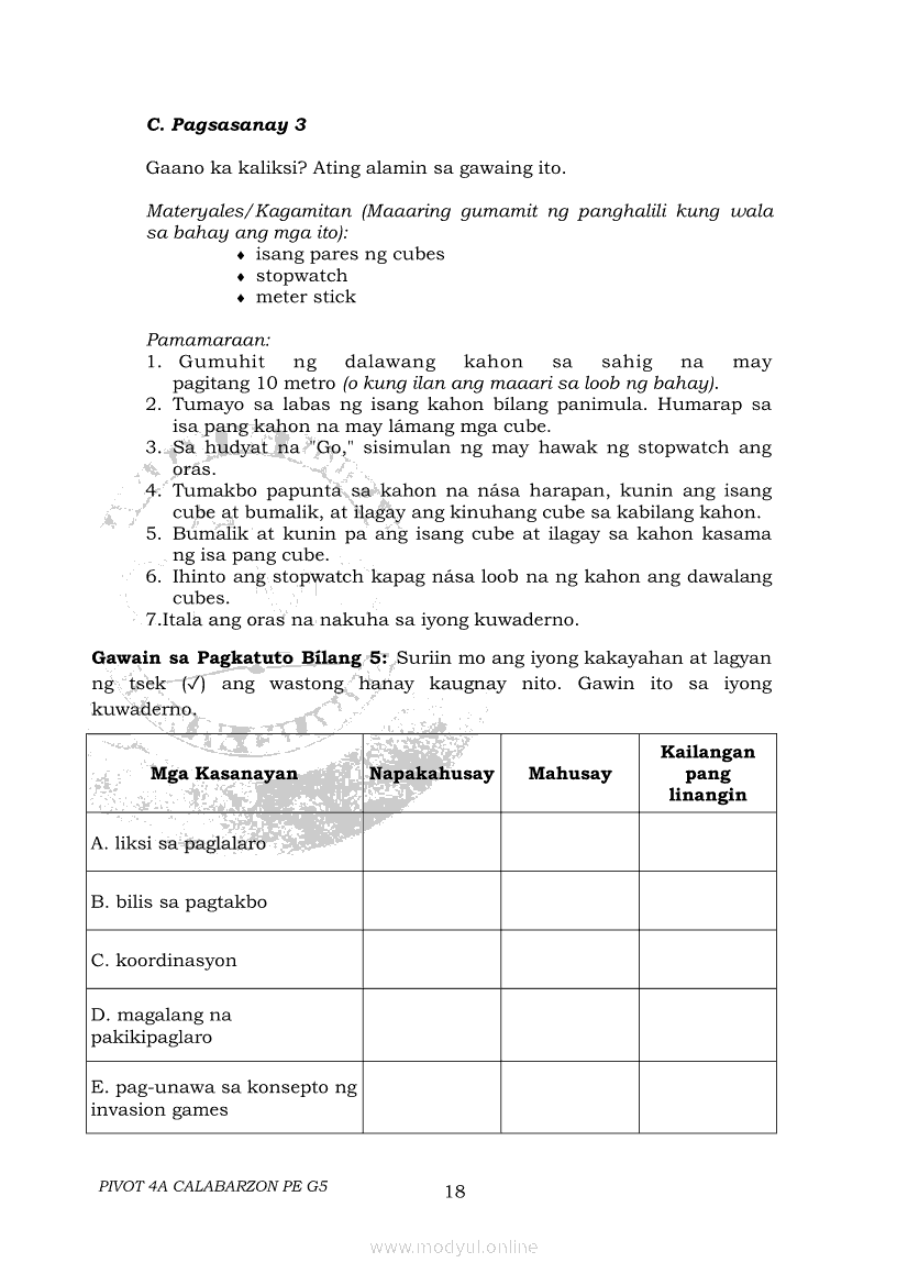Health 5 Modyul 7: Epekto ng Pambu-bully sa Sosyal, Mental, at Emosyonal na Kalusugan ng TaoApr 22, 2021 Grade 5Kiumo M901 Tablet for Kids — comprehensive protection in learning, safety, and entertainment for as low as **₱2,399!. Health 5RelatedHEALTH Ikaapat na Markahan – Modyul 4a: Mga Katangian, Layunin, at Panuntunan ng Pangunang LunasHEALTH Ikaapat na Markahan – Modyul 4b: Pangunang Lunas para sa mga Karaniwang Pinsala at KondisyonHealth 5 Modyul 4: Positibong Naidudulot ng Mabuting Samahan sa KalusuganHealth 5 Modyul 1: Aspeto ng KalusuganHealth 5 Ikalawang Markahan – Modyul 2: Mga Maling Kaisipan sa Pagbibinata at Pagdadalaga