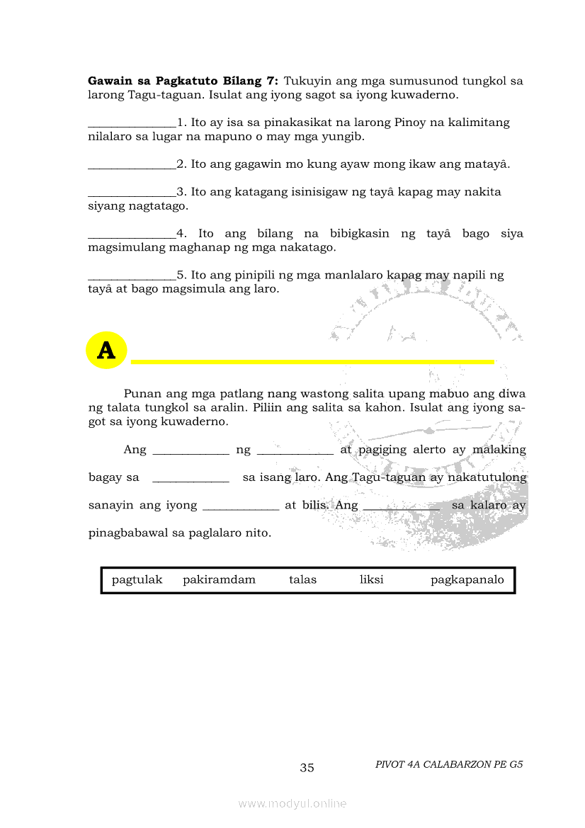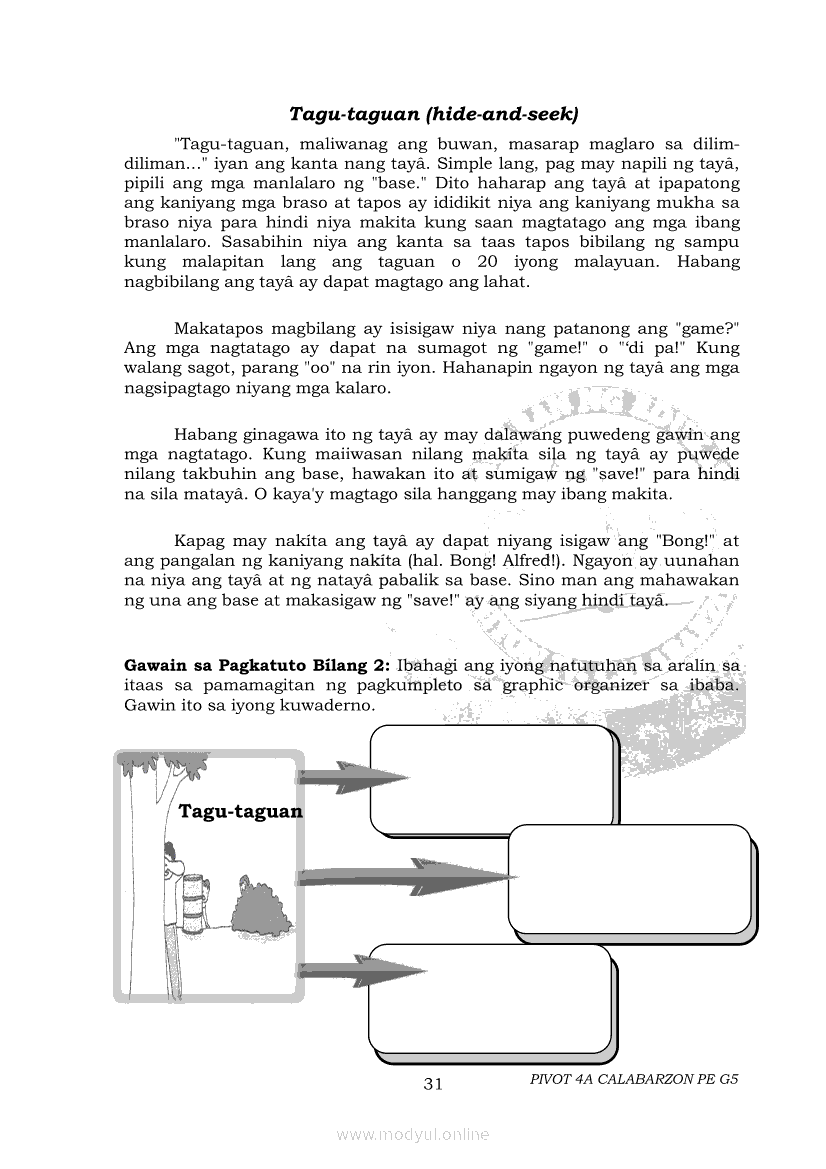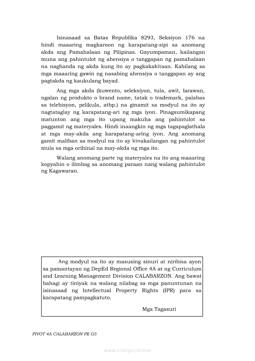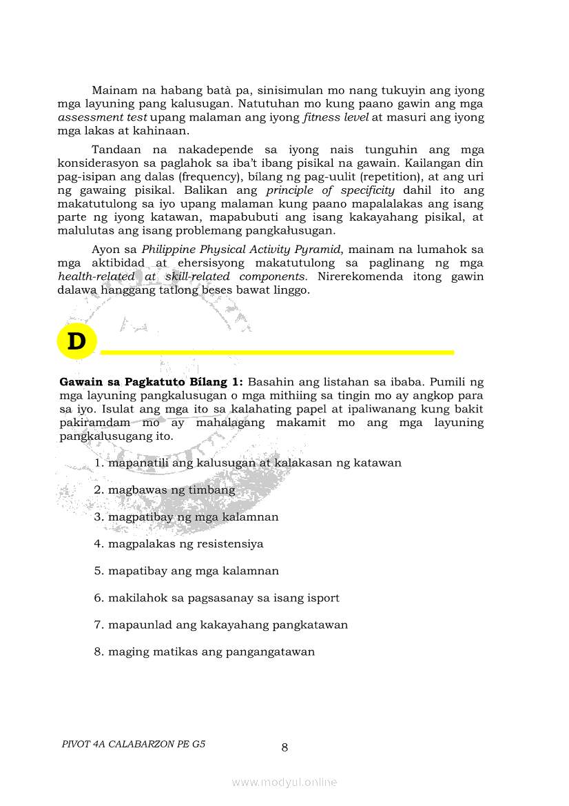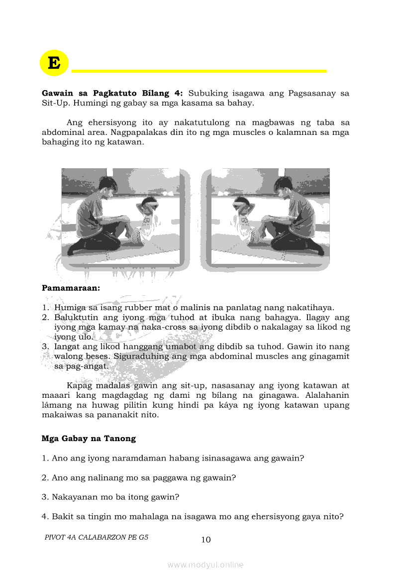 Health 5 Modyul 7: Epekto ng Pambu-bully sa Sosyal, Mental, at Emosyonal na Kalusugan ng TaoApr 22, 2021 Grade 5Kiumo M901 Tablet for Kids — comprehensive protection in learning, safety, and entertainment for as low as **₱2,399!. Health 5RelatedHEALTH Ikaapat na Markahan – Modyul 4a: Mga Katangian, Layunin, at Panuntunan ng Pangunang LunasHEALTH Ikaapat na Markahan – Modyul 4b: Pangunang Lunas para sa mga Karaniwang Pinsala at KondisyonHealth 5 Modyul 4: Positibong Naidudulot ng Mabuting Samahan sa KalusuganHealth 5 Modyul 1: Aspeto ng KalusuganHealth 5 Ikalawang Markahan – Modyul 2: Mga Maling Kaisipan sa Pagbibinata at Pagdadalaga