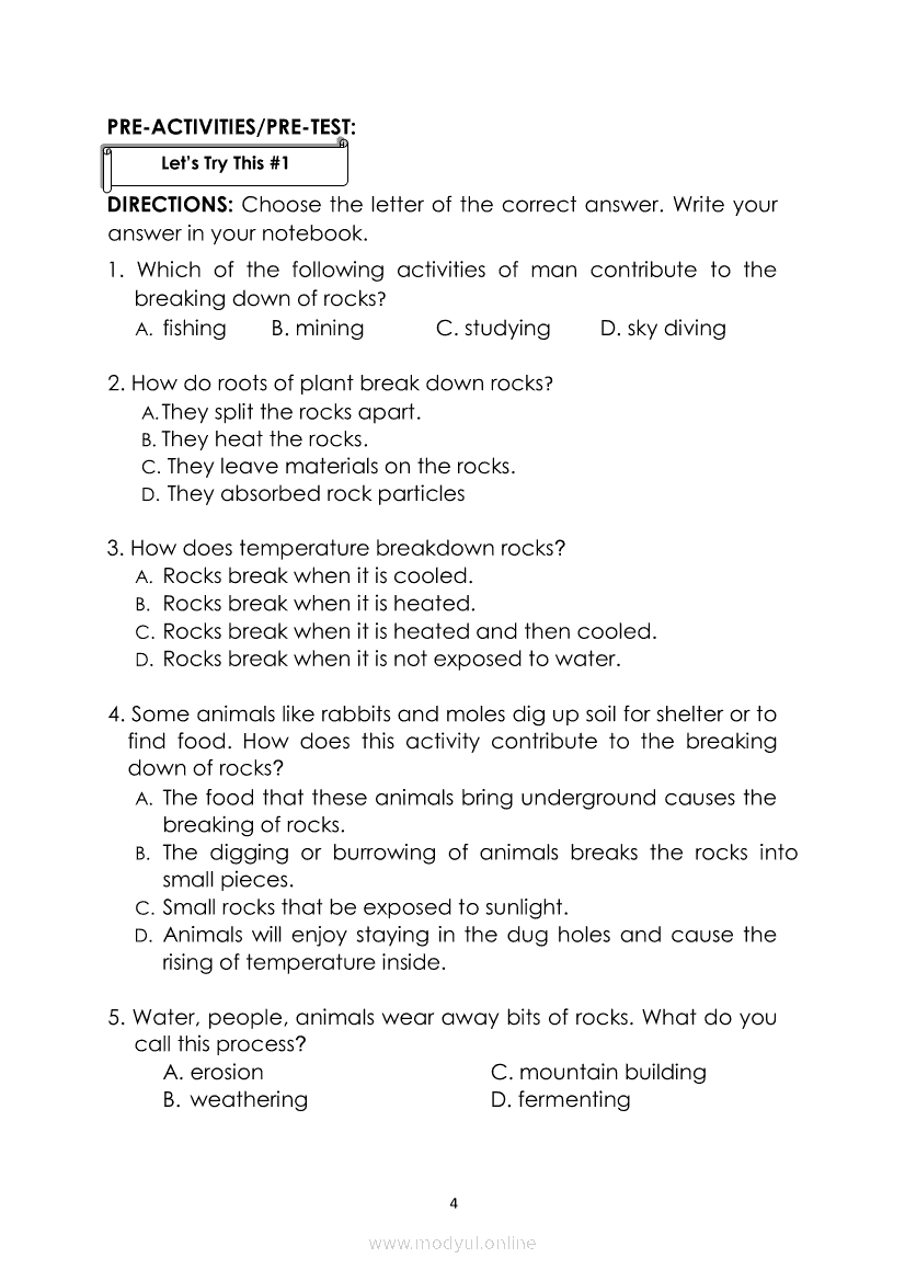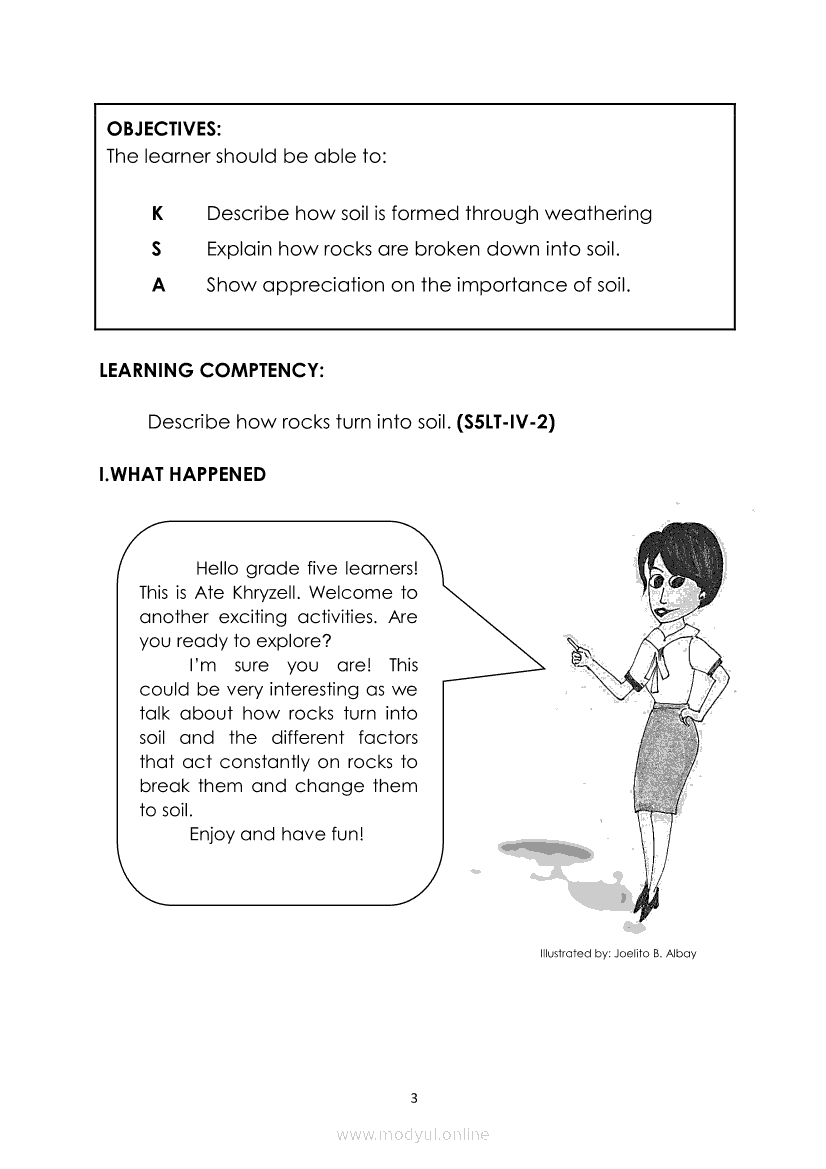 HOW ROCKS TURN INTO SOIL for Science Grade 5 Quarter 4 / Week 1May 26, 2021 Grade 5Kiumo M901 Tablet for Kids — comprehensive protection in learning, safety, and entertainment for as low as **₱2,399!. Science 5 4th QuarterRelatedPHASES OF THE MOON for Science Grade 5 Quarter 4/Week 4THE EFFECTS OF SOIL EROSION ON LIVING THINGS AND THE ENVIRONMENT for Science Grade 5 Quarter 4 / Week 2WEATHER DISTURBANCES IN THE PHILIPPINES AND THEIR EFFECTS TO DAILY LIFE for Science Grade 5 Quarter 4 / Week 3CONSTELLATIONS for Science 5 Quarter 4 / Week 5MUSIC Ikaapat na Markahan – Modyul 4a: Mga Antas ng Dynamics at Tempo