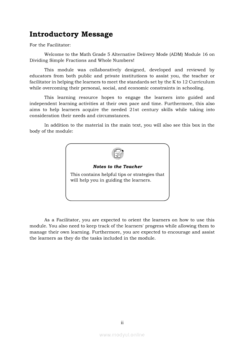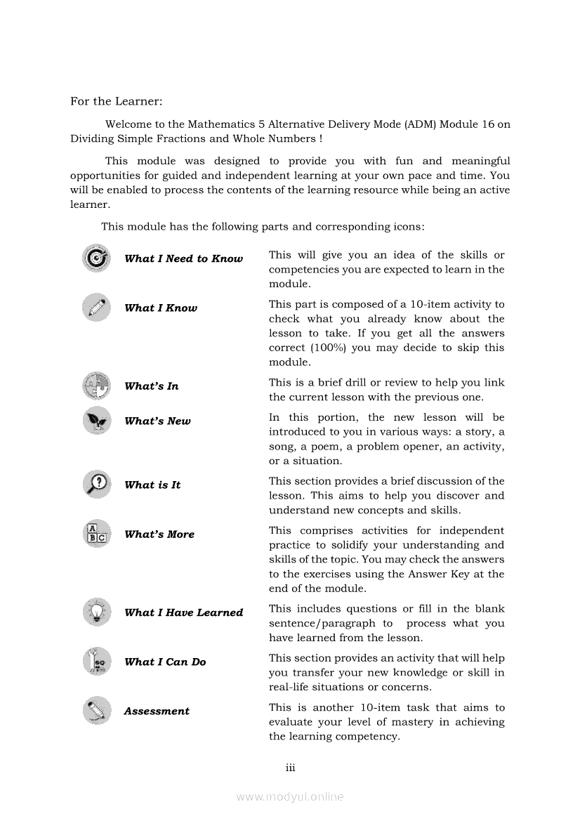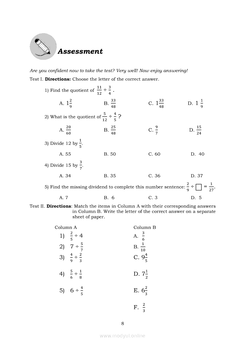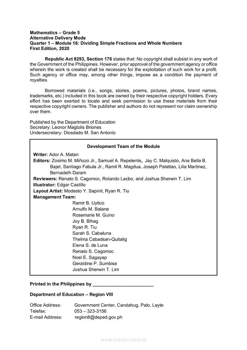 Math 5 Module 16: Dividing Simple Fractions and Whole NumbersApr 22, 2021 Grade 5Kiumo M901 Tablet for Kids — comprehensive protection in learning, safety, and entertainment for as low as **₱2,399!. Math 5RelatedMATHEMATICS Quarter 4 - Module 7 Describing, Performing and Recording Result of an Experimental ProbabilityMATHEMATICS Quarter 4 – Module 8 Analyzing and Solving Routine and Non-Routine Problems Involving Experimental ProbabilityMATHEMATICS Quarter 4: Module 1 Finding and Solving Routine and Non-Routine Problems Involving Area of a Given CircleMATHEMATICS Quarter 4: Module 3 Finding and Solving Problems Involving Volume of a Cube and Rectangular PrismMATHEMATICS Quarter 4: Module 2 Visualizing Volume of a Cube and Rectangular Prism