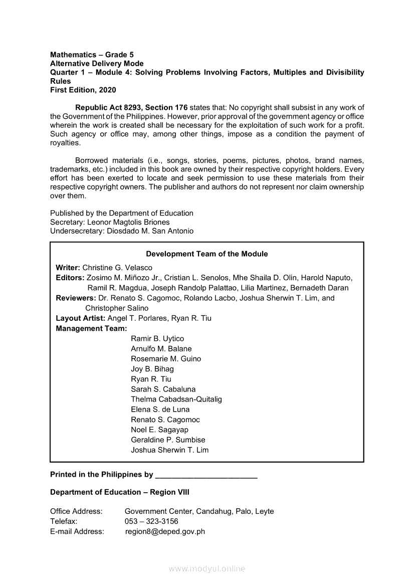 Math 5 Module 4: Solving Problems Involving Factors, Multiples and Divisibility RulesApr 22, 2021 Grade 5Kiumo M901 Tablet for Kids — comprehensive protection in learning, safety, and entertainment for as low as **₱2,399!. Math 5RelatedMATHEMATICS Quarter 4: Module 4 Reading, Measuring and Solving Routine and Non-Routine Problems Involving Temperature in Real-Life SituationsMATHEMATICS Quarter 4 - Module 7 Describing, Performing and Recording Result of an Experimental ProbabilityMATHEMATICS Quarter 4: Module 5 Organizing, Presenting and Interpreting Data in a Line GraphMATHEMATICS Quarter 4 – Module 8 Analyzing and Solving Routine and Non-Routine Problems Involving Experimental ProbabilityMATHEMATICS Quarter 4: Module 3 Finding and Solving Problems Involving Volume of a Cube and Rectangular Prism