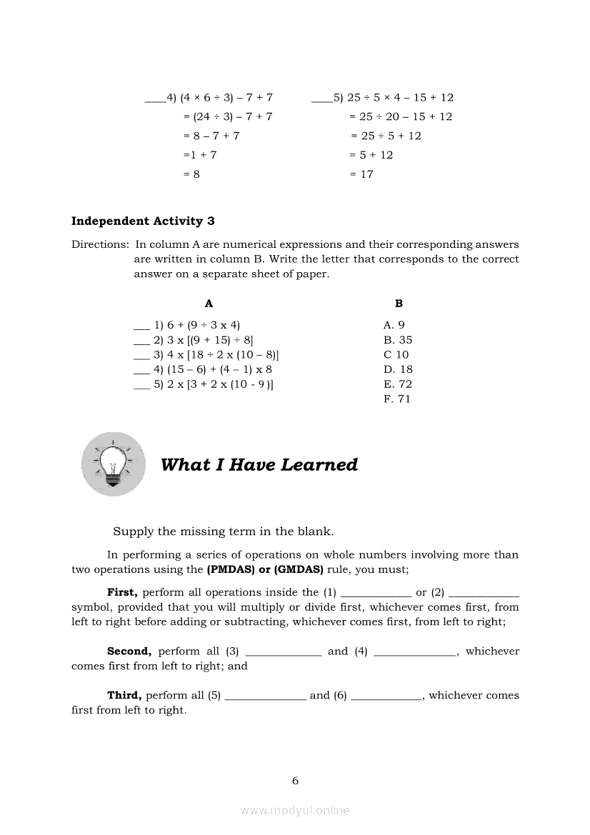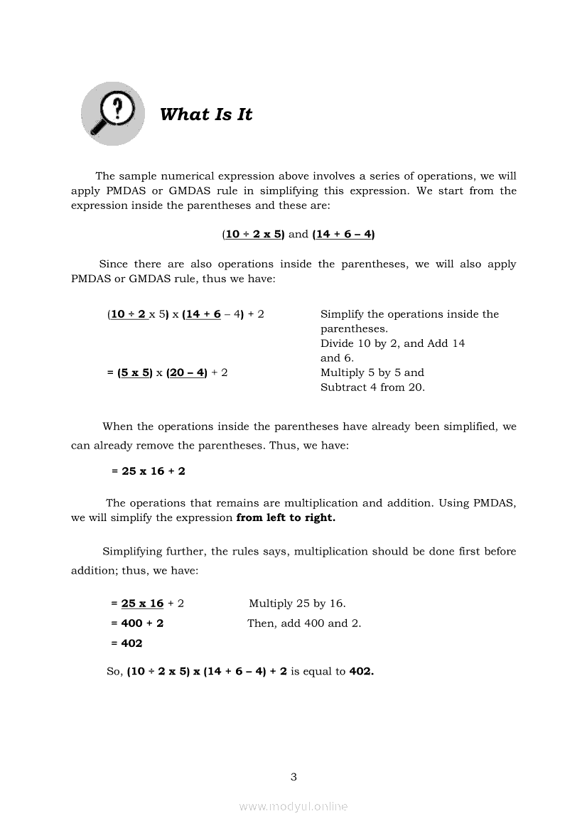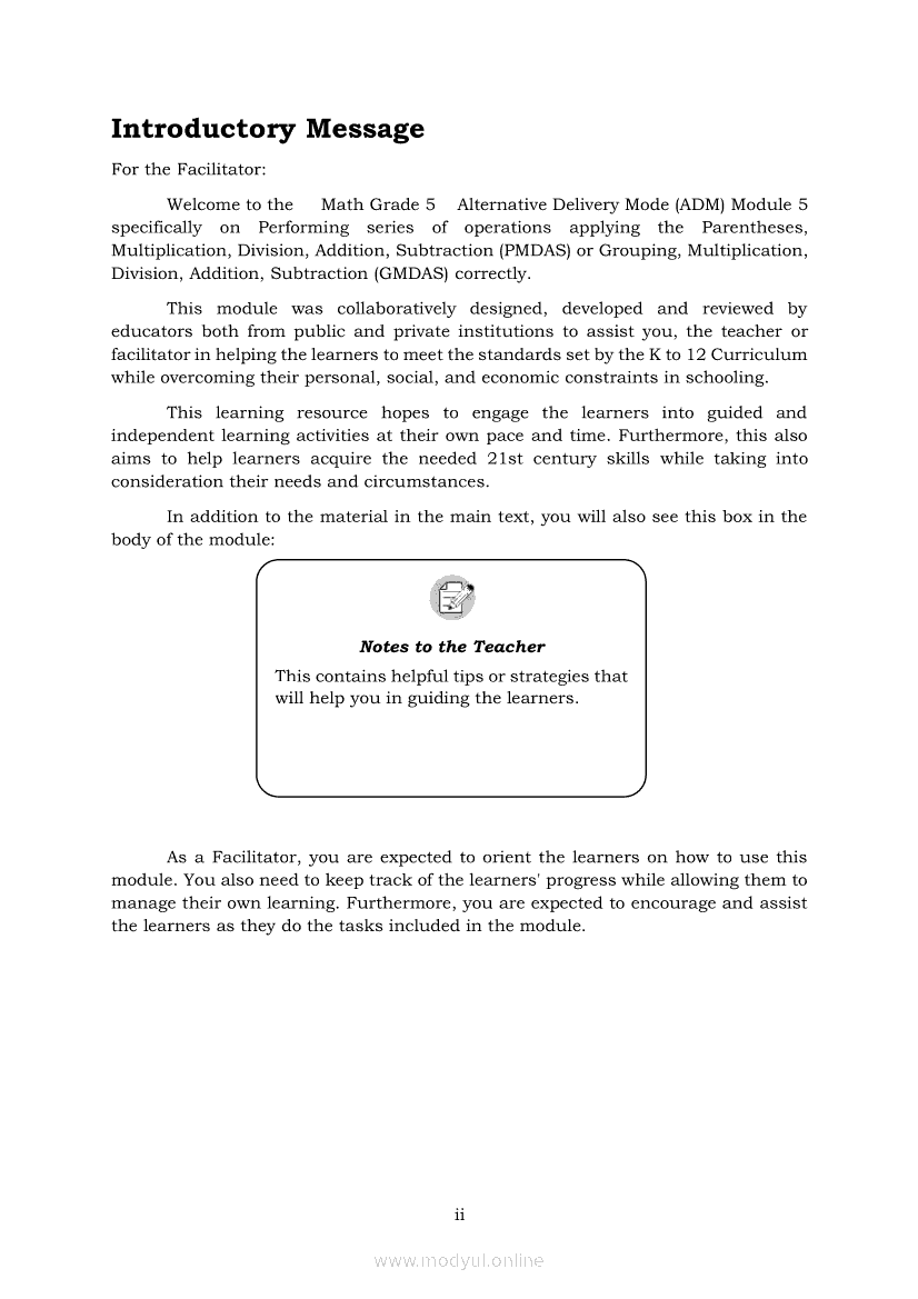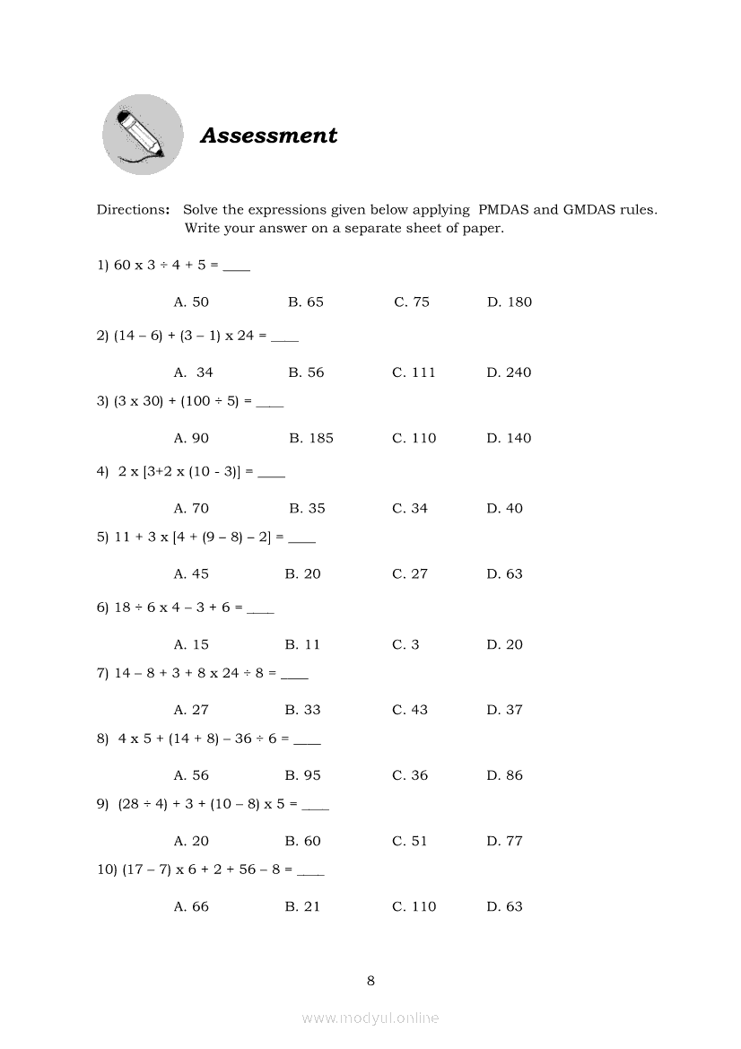 Math 5 Module 5: Performing a Series of Operations Using PMDAS or GMDASApr 22, 2021 Grade 5Kiumo M901 Tablet for Kids — comprehensive protection in learning, safety, and entertainment for as low as **₱2,399!. Math 5RelatedMATHEMATICS Quarter 4: Module 4 Reading, Measuring and Solving Routine and Non-Routine Problems Involving Temperature in Real-Life SituationsMATHEMATICS Quarter 4: Module 1 Finding and Solving Routine and Non-Routine Problems Involving Area of a Given CircleMATHEMATICS Quarter 4 – Module 8 Analyzing and Solving Routine and Non-Routine Problems Involving Experimental ProbabilityMATHEMATICS Quarter 4: Module 2 Visualizing Volume of a Cube and Rectangular PrismMATHEMATICS Quarter 4: Module 5 Organizing, Presenting and Interpreting Data in a Line Graph