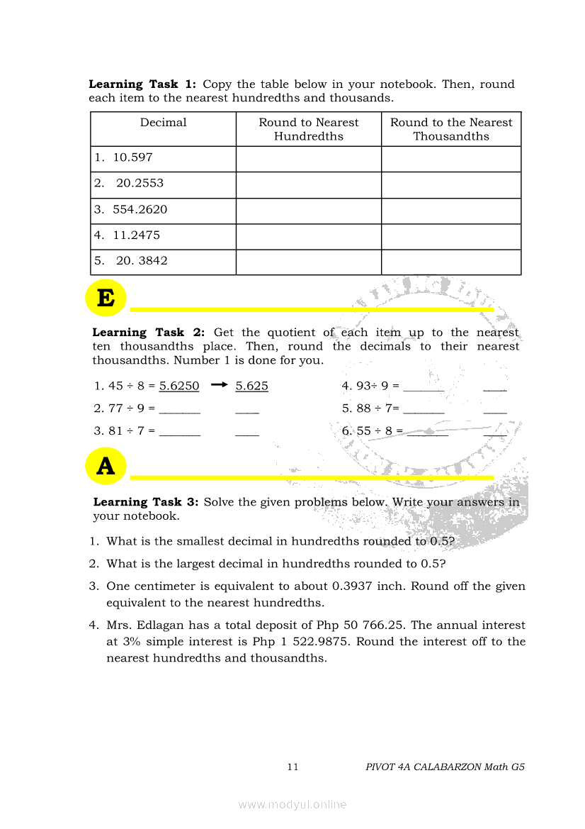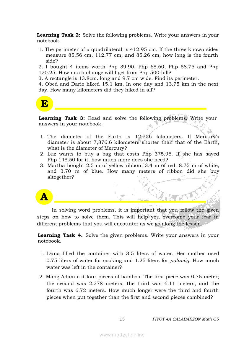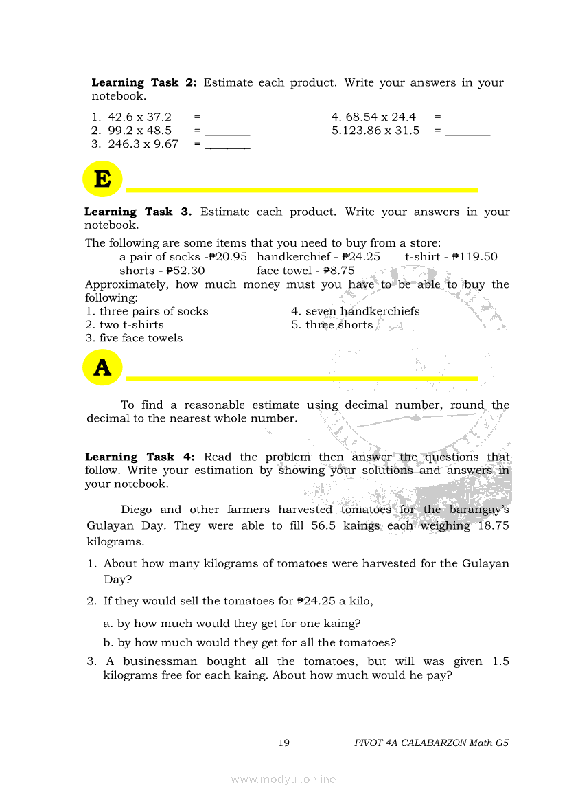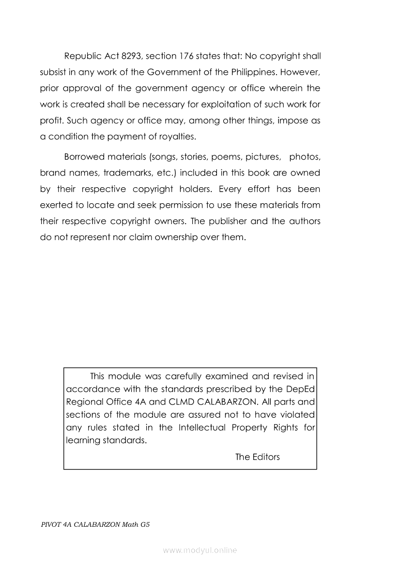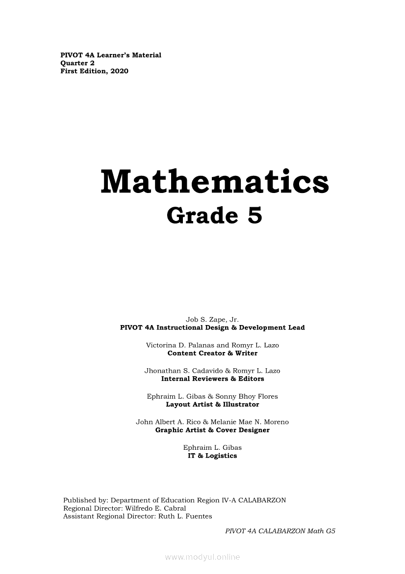 Math 5 Second Quarter Module (PIVOT)Apr 22, 2021 Grade 5Kiumo M901 Tablet for Kids — comprehensive protection in learning, safety, and entertainment for as low as **₱2,399!. Math 5RelatedMATHEMATICS Quarter 4: Module 2 Visualizing Volume of a Cube and Rectangular PrismMATHEMATICS Quarter 4: Module 5 Organizing, Presenting and Interpreting Data in a Line GraphMATHEMATICS Quarter 4 - Module 7 Describing, Performing and Recording Result of an Experimental ProbabilityMATHEMATICS Quarter 4 - Module 6 Solving Routine, Non-Routine Problems and Drawing Inferences Based on the Data Presented in a Line GraphMATHEMATICS Quarter 4: Module 1 Finding and Solving Routine and Non-Routine Problems Involving Area of a Given Circle