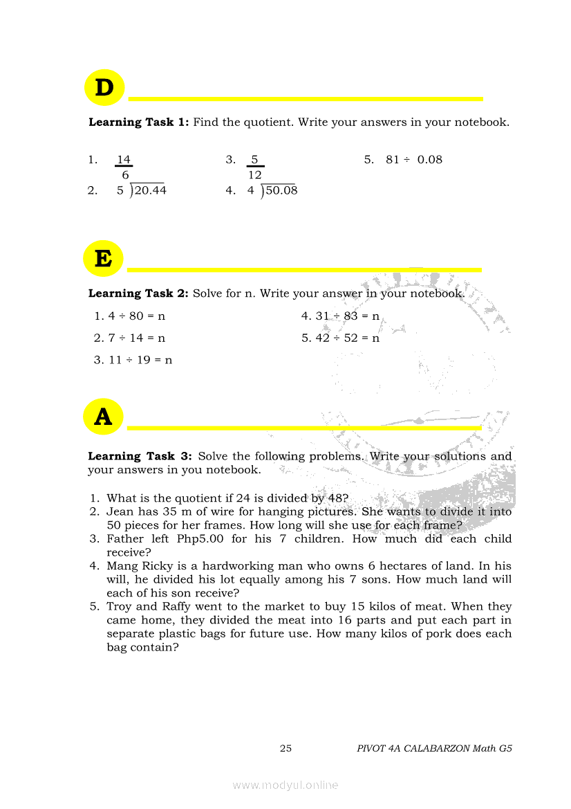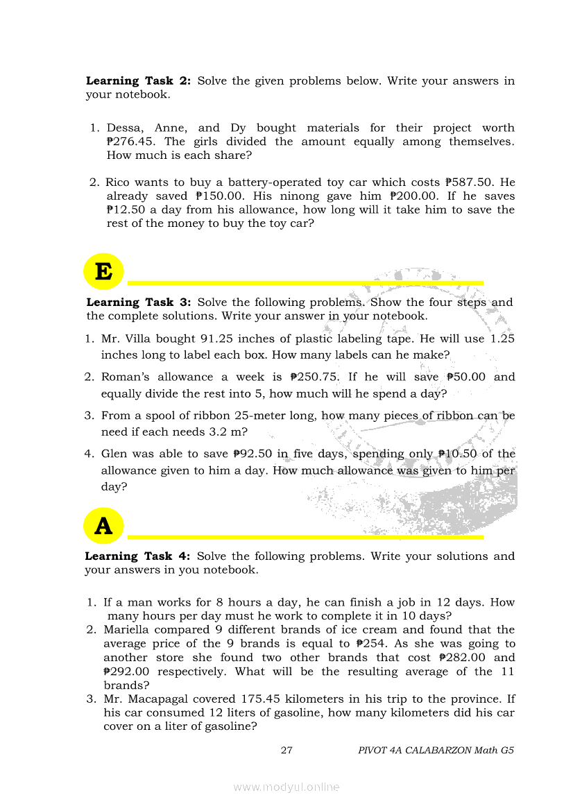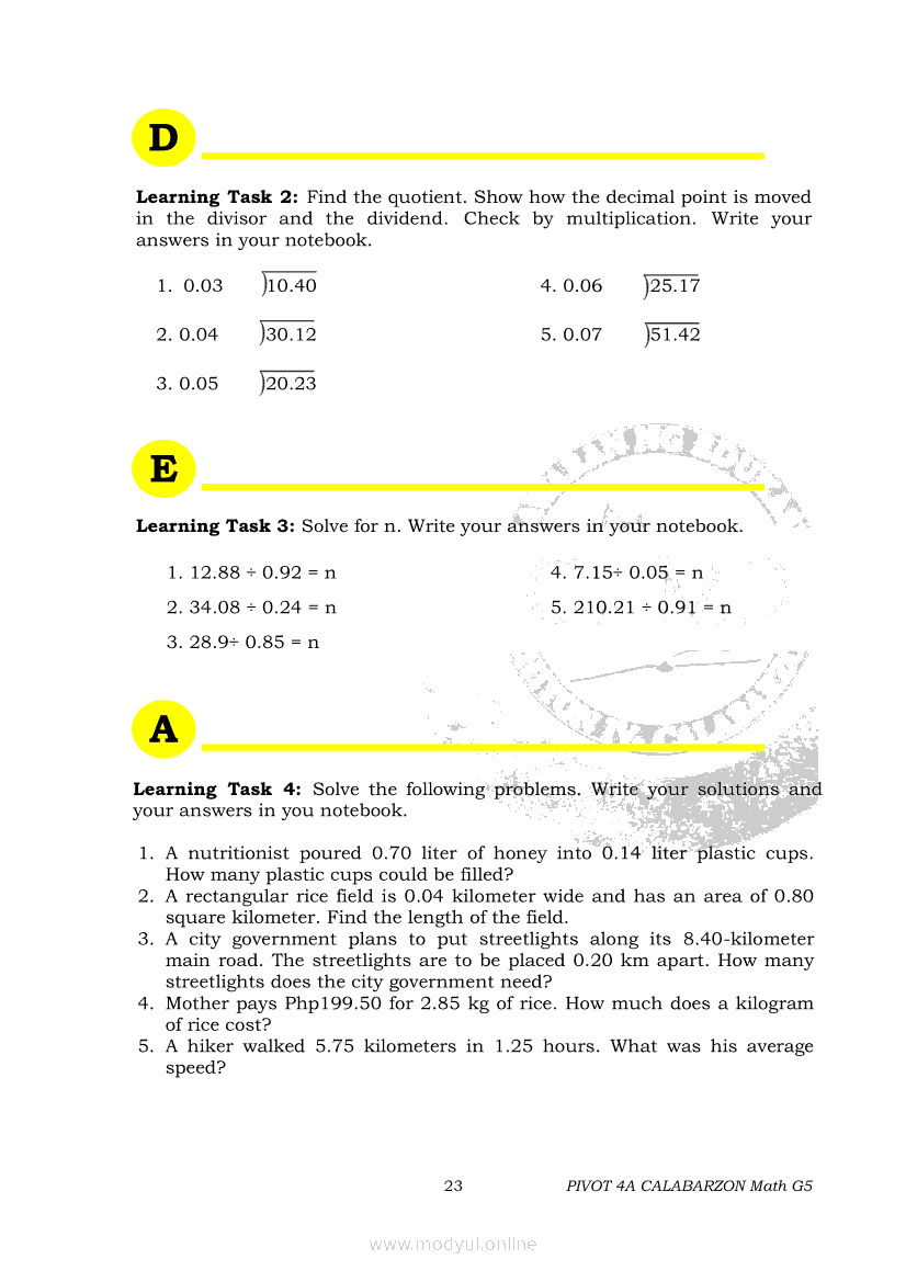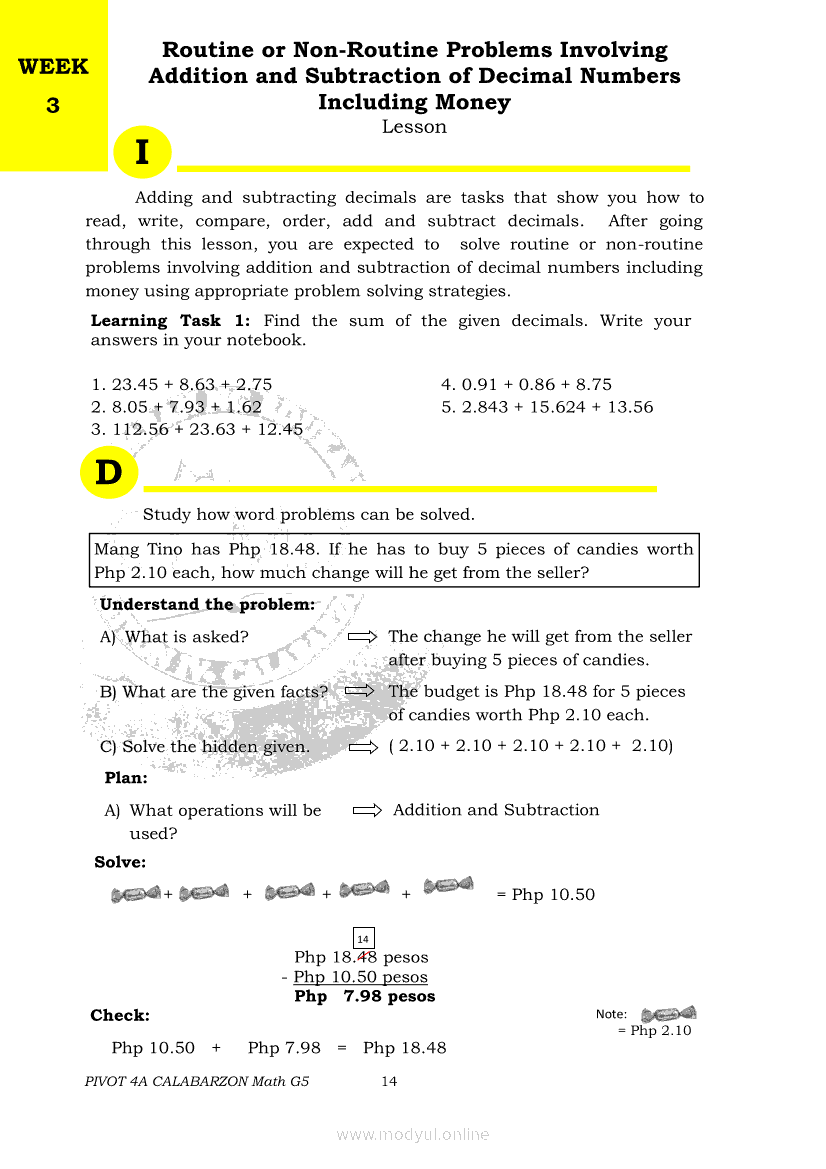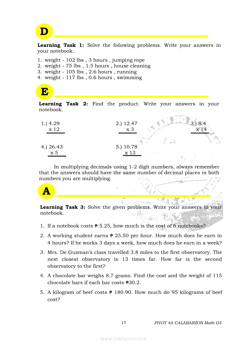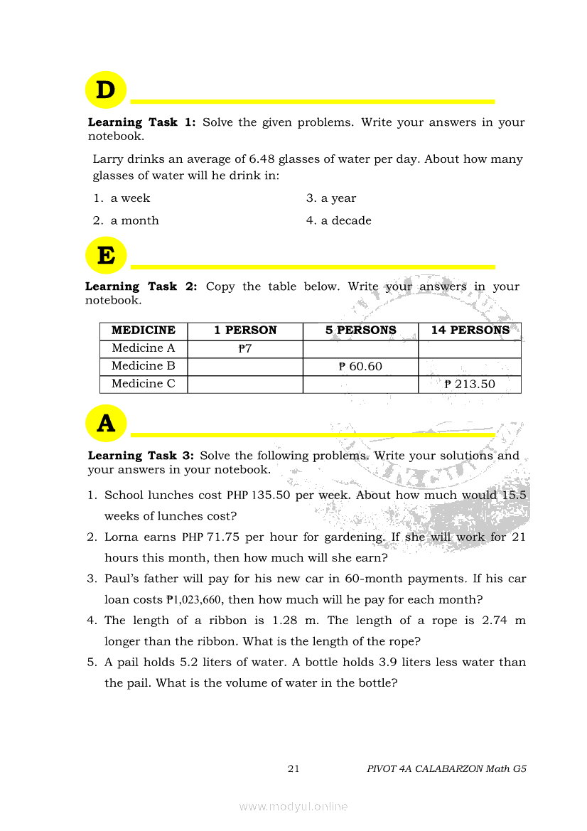 Math 5 Second Quarter Module (PIVOT)Apr 22, 2021 Grade 5Kiumo M901 Tablet for Kids — comprehensive protection in learning, safety, and entertainment for as low as **₱2,399!. Math 5RelatedMATHEMATICS Quarter 4: Module 2 Visualizing Volume of a Cube and Rectangular PrismMATHEMATICS Quarter 4: Module 5 Organizing, Presenting and Interpreting Data in a Line GraphMATHEMATICS Quarter 4 - Module 7 Describing, Performing and Recording Result of an Experimental ProbabilityMATHEMATICS Quarter 4 - Module 6 Solving Routine, Non-Routine Problems and Drawing Inferences Based on the Data Presented in a Line GraphMATHEMATICS Quarter 4: Module 1 Finding and Solving Routine and Non-Routine Problems Involving Area of a Given Circle