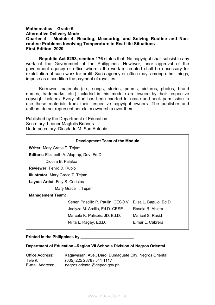 MATHEMATICS Quarter 4 - Module 7 Describing, Performing and Recording Result of an Experimental ProbabilityMay 26, 2021 Grade 5Kiumo M901 Tablet for Kids — comprehensive protection in learning, safety, and entertainment for as low as **₱2,399!. Math 5 4th QuarterRelatedMATHEMATICS Quarter 4: Module 3 Finding and Solving Problems Involving Volume of a Cube and Rectangular PrismMATHEMATICS Quarter 4: Module 4 Reading, Measuring and Solving Routine and Non-Routine Problems Involving Temperature in Real-Life SituationsMATHEMATICS Quarter 4: Module 5 Organizing, Presenting and Interpreting Data in a Line GraphMATHEMATICS Quarter 4 – Module 8 Analyzing and Solving Routine and Non-Routine Problems Involving Experimental ProbabilityMATHEMATICS Quarter 4: Module 2 Visualizing Volume of a Cube and Rectangular Prism
