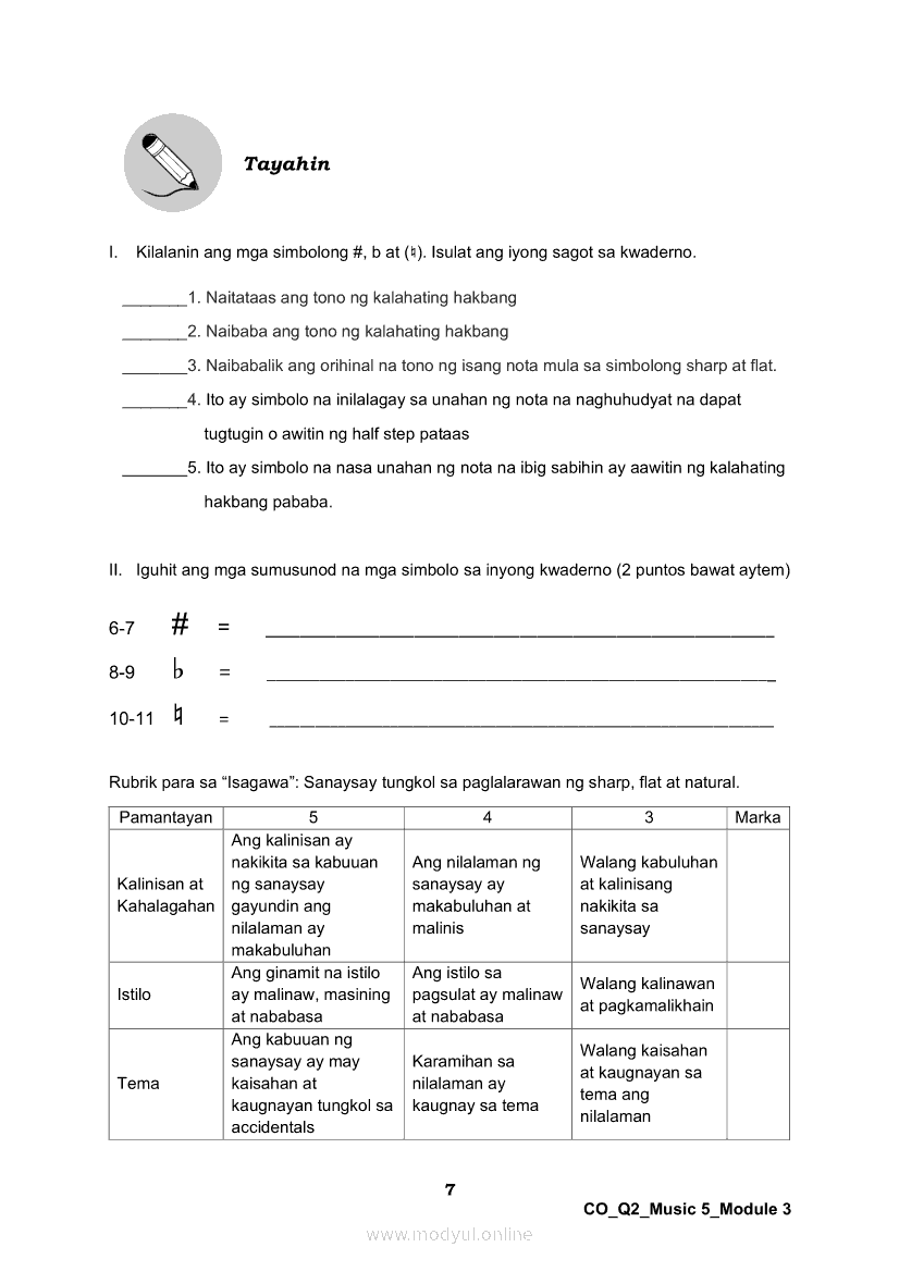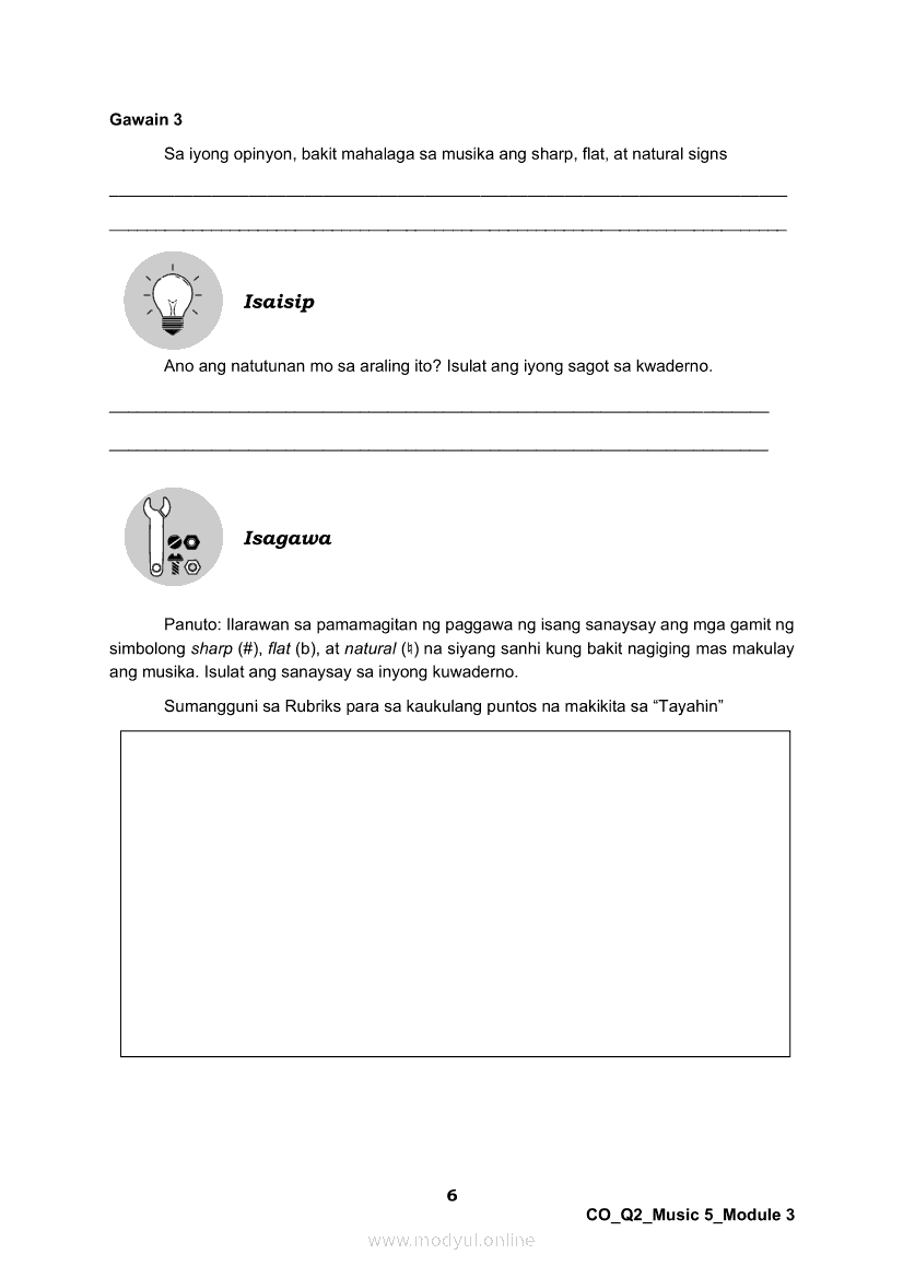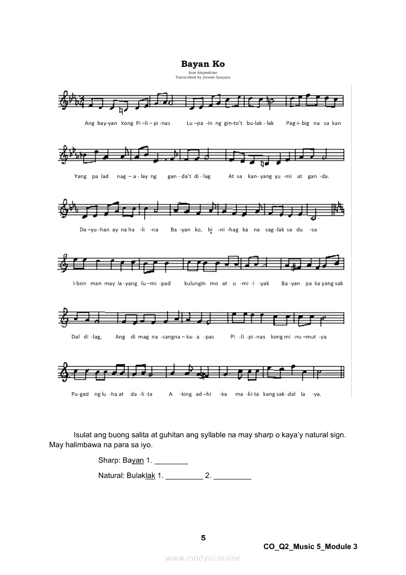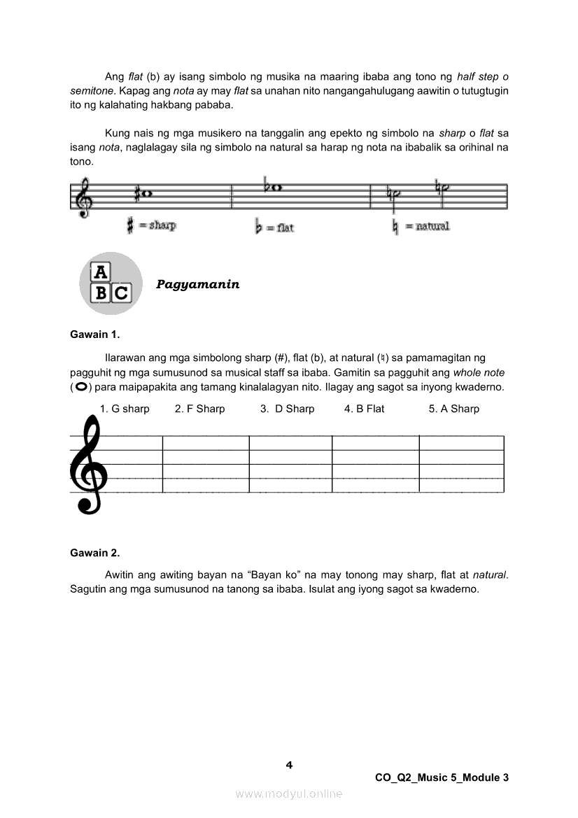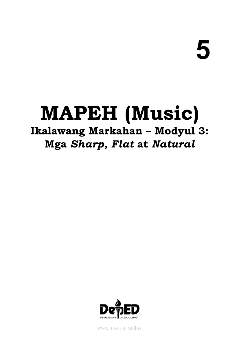 Music 5 Ikalawang Markahan – Modyul 3: Mga Sharp, Flat at NaturalApr 22, 2021 Grade 5Kiumo M901 Tablet for Kids — comprehensive protection in learning, safety, and entertainment for as low as **₱2,399!. Music 5RelatedMUSIC Ikaapat Na Markahan – Modyul: 4b Texture at HarmonyMUSIC Ikaapat na Markahan – Modyul 4a: Mga Antas ng Dynamics at TempoMusic 5 Modyul 4: Ang mga Rhythmic PatternsMusic 5 Modyul 1: Notes at Rests: KilalaninMusic 5 Ikalawang Markahan – Modyul 1: Kahulugan at Gamit ng F-clef sa Staff