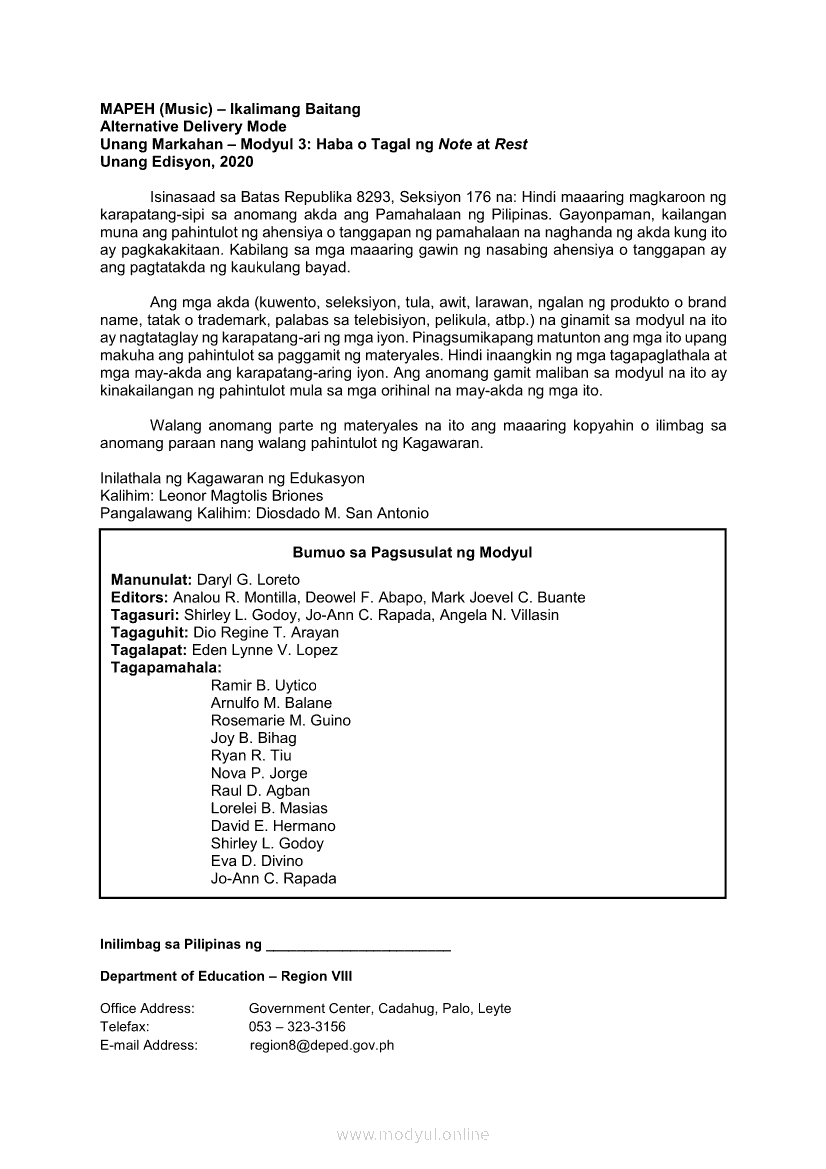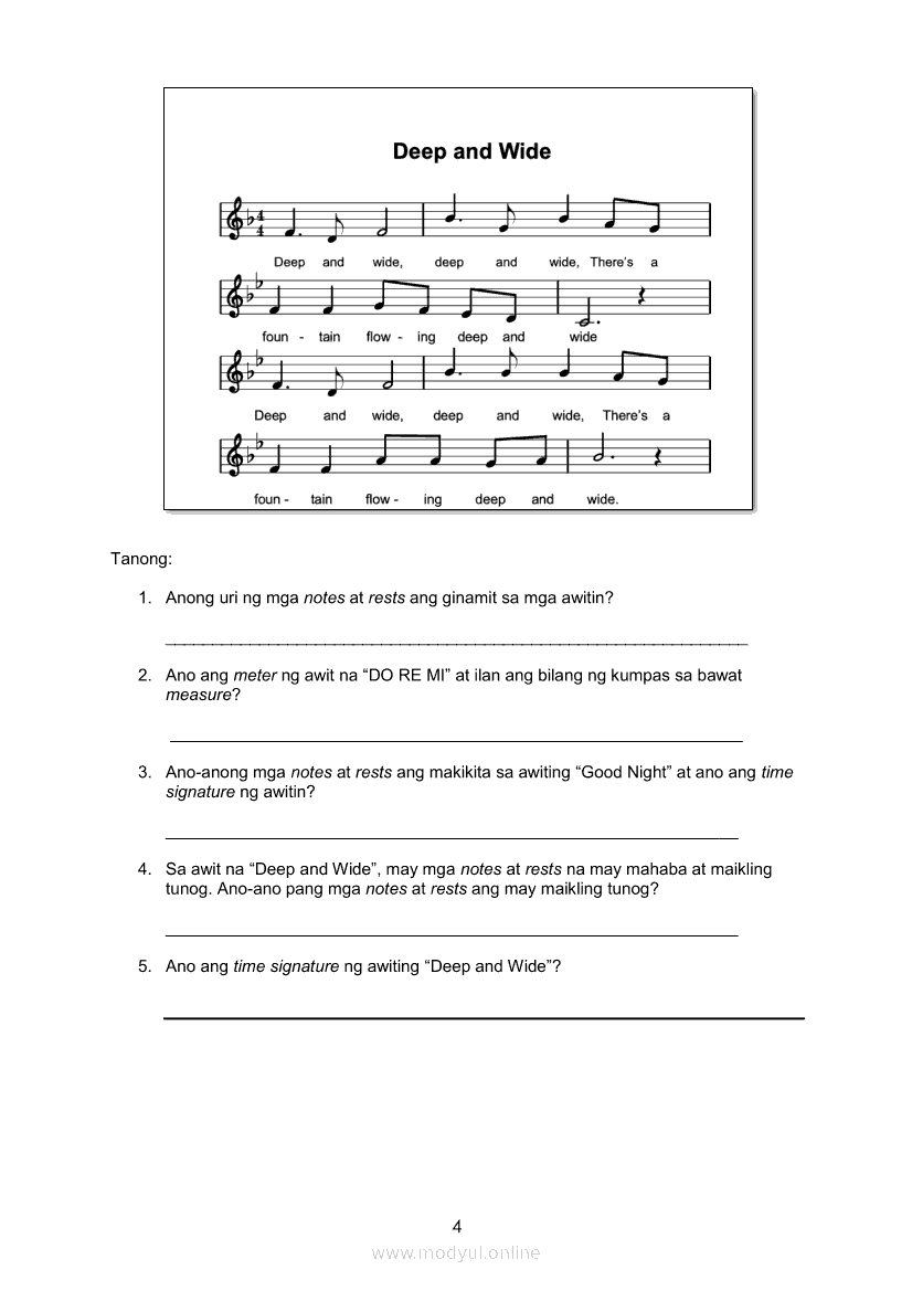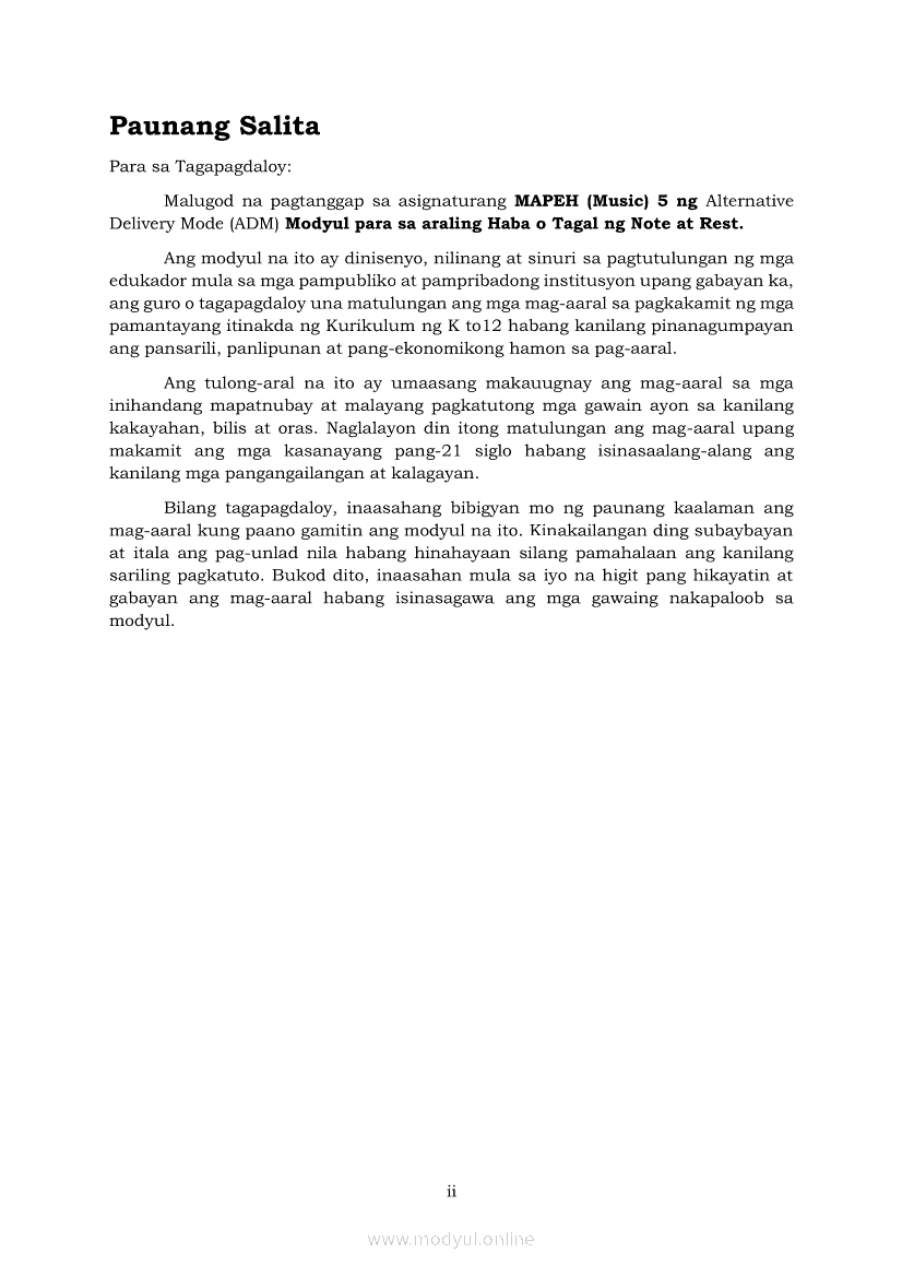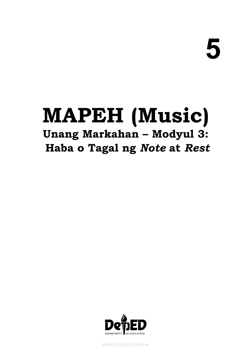 Music 5 Modyul 3: Haba o Tagal ng Note at RestApr 22, 2021 Grade 5Kiumo M901 Tablet for Kids — comprehensive protection in learning, safety, and entertainment for as low as **₱2,399!. Music 5RelatedMUSIC Ikaapat na Markahan – Modyul 4a: Mga Antas ng Dynamics at TempoMUSIC Ikaapat Na Markahan – Modyul: 4b Texture at HarmonyMusic 5 Modyul 4: Ang mga Rhythmic PatternsMusic 5 Ikalawang Markahan – Modyul 1: Kahulugan at Gamit ng F-clef sa StaffMusic 5 Modyul 1: Notes at Rests: Kilalanin