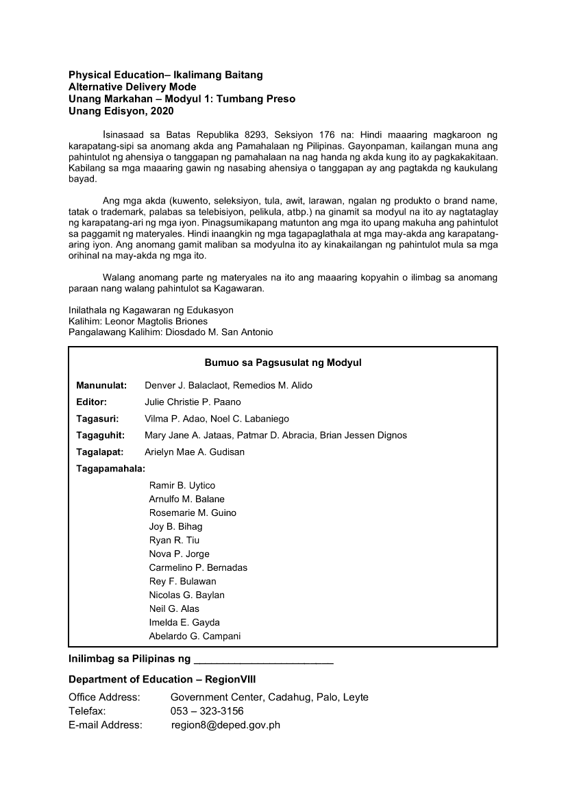 Physical Education 5 Modyul 1: Tumbang PresoApr 22, 2021 Grade 5Kiumo M901 Tablet for Kids — comprehensive protection in learning, safety, and entertainment for as low as **₱2,399!. Physical Education 5RelatedPHYSICAL EDUCATION Ikaapat na Markahan – Modyul 4a: Mga Katutubong SayawPhysical Education 5 Modyul 2: KickballPhysical Education 5 Modyul para sa Ikalawang Markahan (PIVOT)Kiumo M901 Tablet for Kids --- Android Tablet 6GB+128GB Study Tablet.