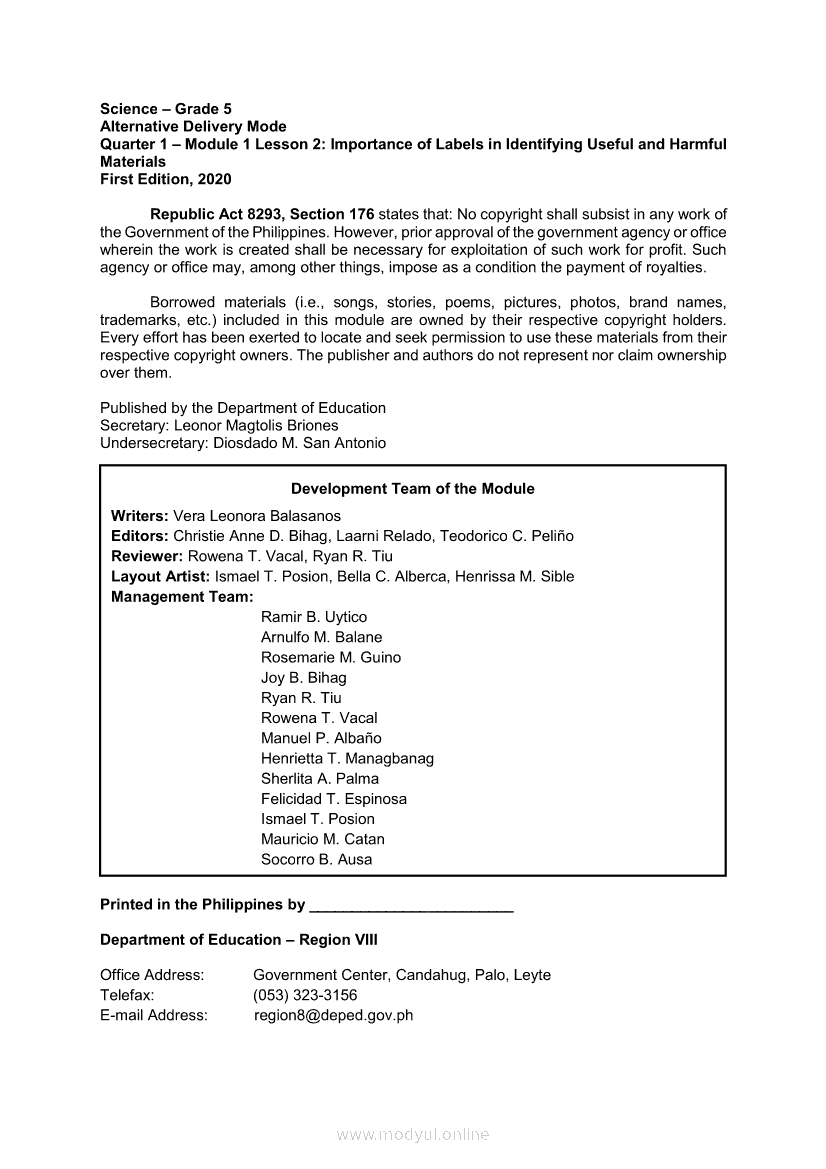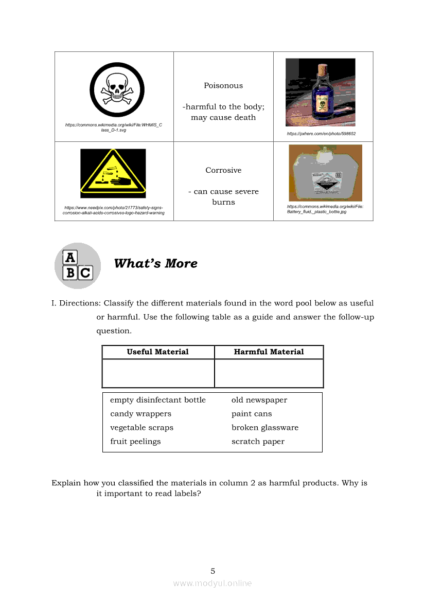 Science 5 Module 1 - Lesson 2: Importance of Labels in Identifying Useful and Harmful MaterialsApr 22, 2021 Grade 5Kiumo M901 Tablet for Kids — comprehensive protection in learning, safety, and entertainment for as low as **₱2,399!. Science 5RelatedTHE EFFECTS OF SOIL EROSION ON LIVING THINGS AND THE ENVIRONMENT for Science Grade 5 Quarter 4 / Week 2PHASES OF THE MOON for Science Grade 5 Quarter 4/Week 4CONSTELLATIONS for Science 5 Quarter 4 / Week 5WEATHER DISTURBANCES IN THE PHILIPPINES AND THEIR EFFECTS TO DAILY LIFE for Science Grade 5 Quarter 4 / Week 3HOW ROCKS TURN INTO SOIL for Science Grade 5 Quarter 4 / Week 1