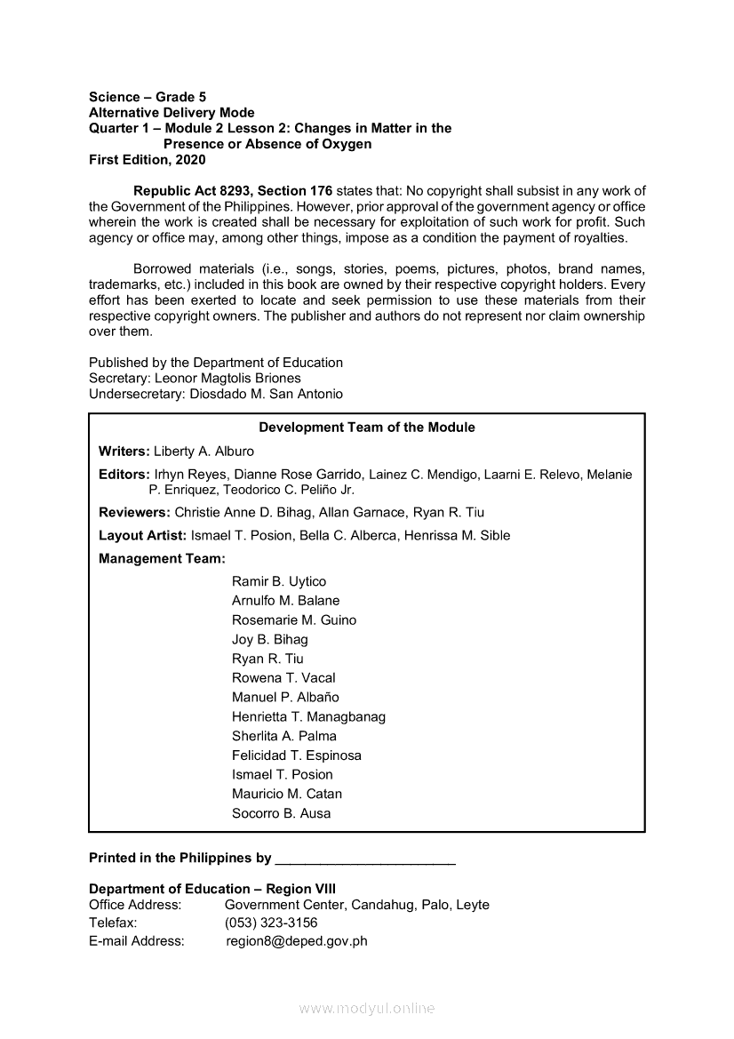 Science 5 Module 2 Lesson 2: Changes in Matter in the Presence or Absence of OxygenApr 22, 2021 Grade 5Kiumo M901 Tablet for Kids — comprehensive protection in learning, safety, and entertainment for as low as **₱2,399!. Science 5RelatedWEATHER DISTURBANCES IN THE PHILIPPINES AND THEIR EFFECTS TO DAILY LIFE for Science Grade 5 Quarter 4 / Week 3CONSTELLATIONS for Science 5 Quarter 4 / Week 5PHASES OF THE MOON for Science Grade 5 Quarter 4/Week 4THE EFFECTS OF SOIL EROSION ON LIVING THINGS AND THE ENVIRONMENT for Science Grade 5 Quarter 4 / Week 2HOW ROCKS TURN INTO SOIL for Science Grade 5 Quarter 4 / Week 1