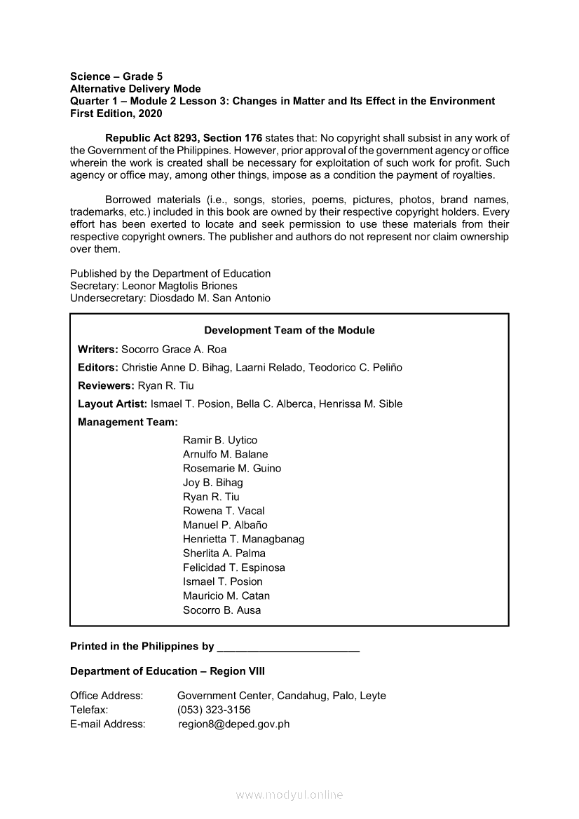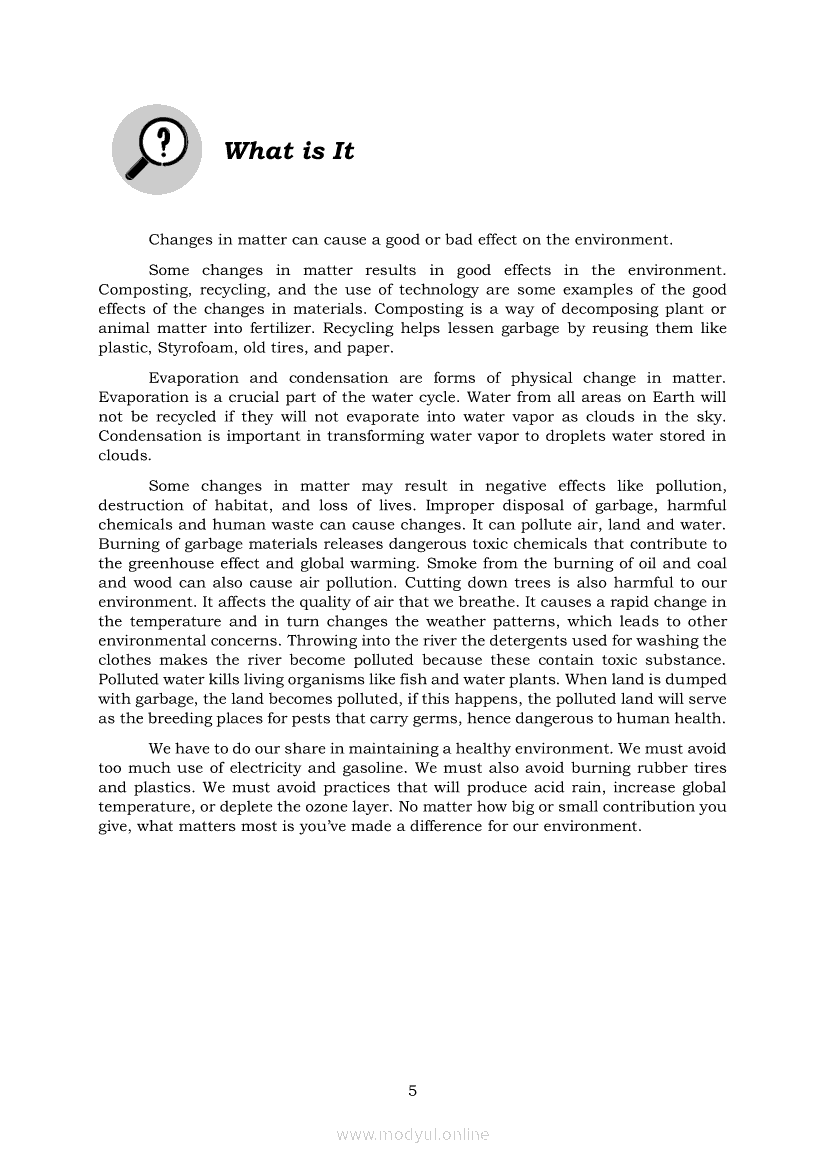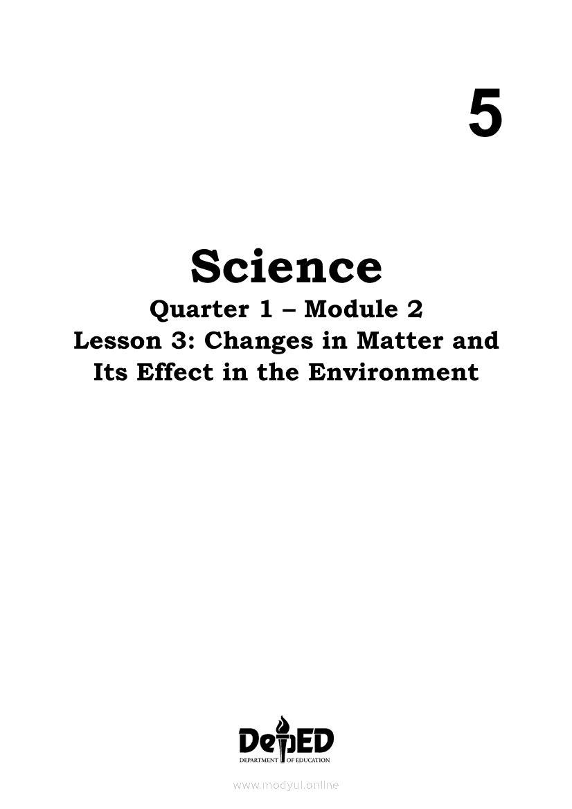 Science 5 Module 2 Lesson 3: Changes in Matter and Its Effect in the EnvironmentApr 22, 2021 Grade 5Kiumo M901 Tablet for Kids — comprehensive protection in learning, safety, and entertainment for as low as **₱2,399!. Science 5RelatedPHASES OF THE MOON for Science Grade 5 Quarter 4/Week 4CONSTELLATIONS for Science 5 Quarter 4 / Week 5THE EFFECTS OF SOIL EROSION ON LIVING THINGS AND THE ENVIRONMENT for Science Grade 5 Quarter 4 / Week 2HOW ROCKS TURN INTO SOIL for Science Grade 5 Quarter 4 / Week 1WEATHER DISTURBANCES IN THE PHILIPPINES AND THEIR EFFECTS TO DAILY LIFE for Science Grade 5 Quarter 4 / Week 3