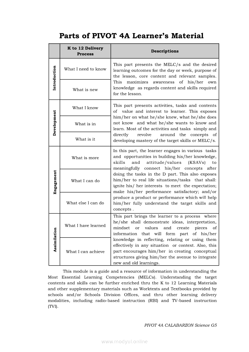 Science 5 Second Quarter Module (PIVOT)Apr 22, 2021 Grade 5Kiumo M901 Tablet for Kids — comprehensive protection in learning, safety, and entertainment for as low as **₱2,399!. Science 5RelatedWEATHER DISTURBANCES IN THE PHILIPPINES AND THEIR EFFECTS TO DAILY LIFE for Science Grade 5 Quarter 4 / Week 3CONSTELLATIONS for Science 5 Quarter 4 / Week 5PHASES OF THE MOON for Science Grade 5 Quarter 4/Week 4HOW ROCKS TURN INTO SOIL for Science Grade 5 Quarter 4 / Week 1THE EFFECTS OF SOIL EROSION ON LIVING THINGS AND THE ENVIRONMENT for Science Grade 5 Quarter 4 / Week 2
